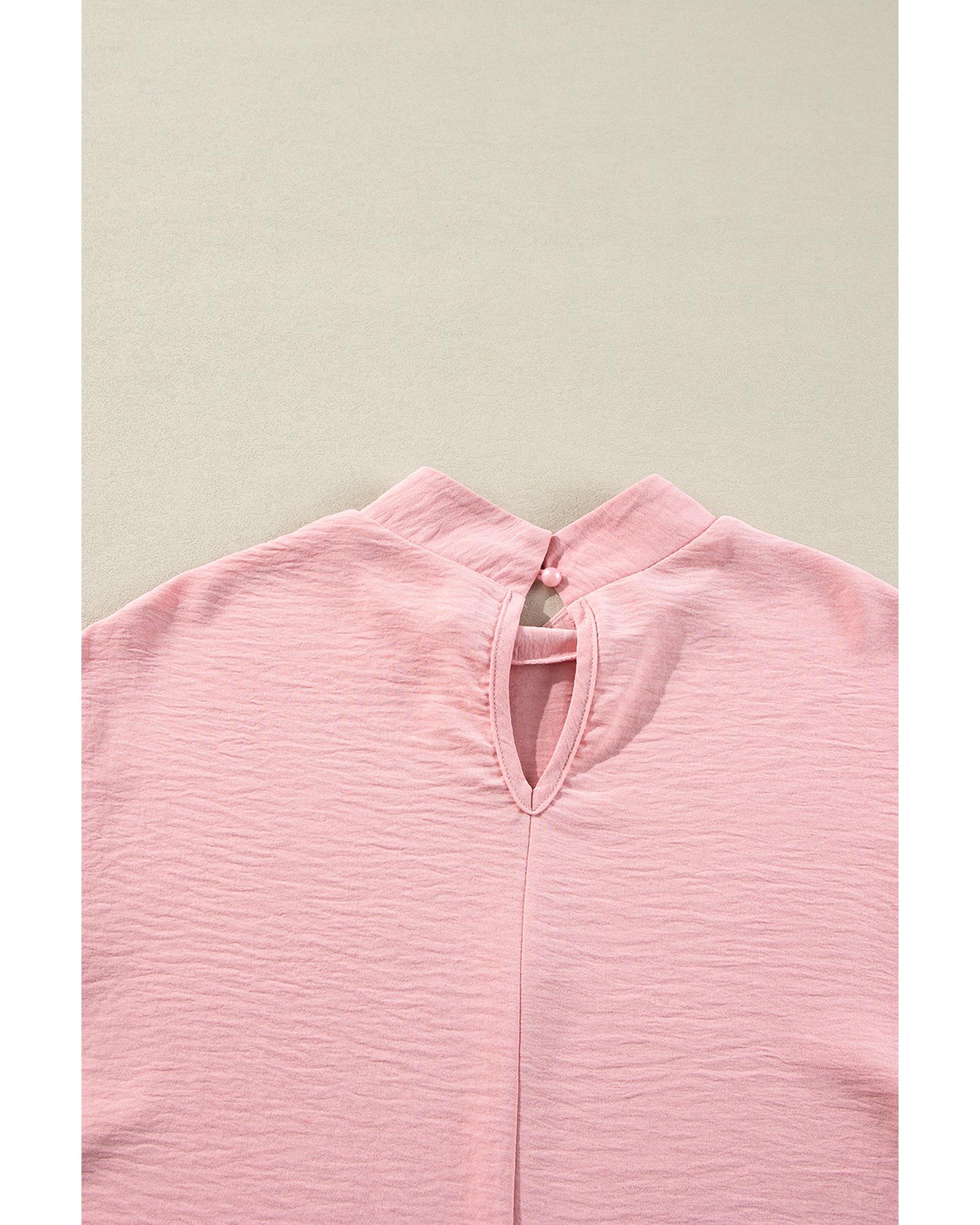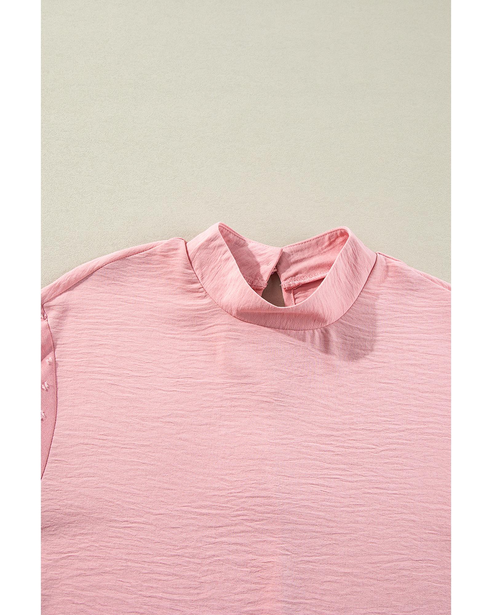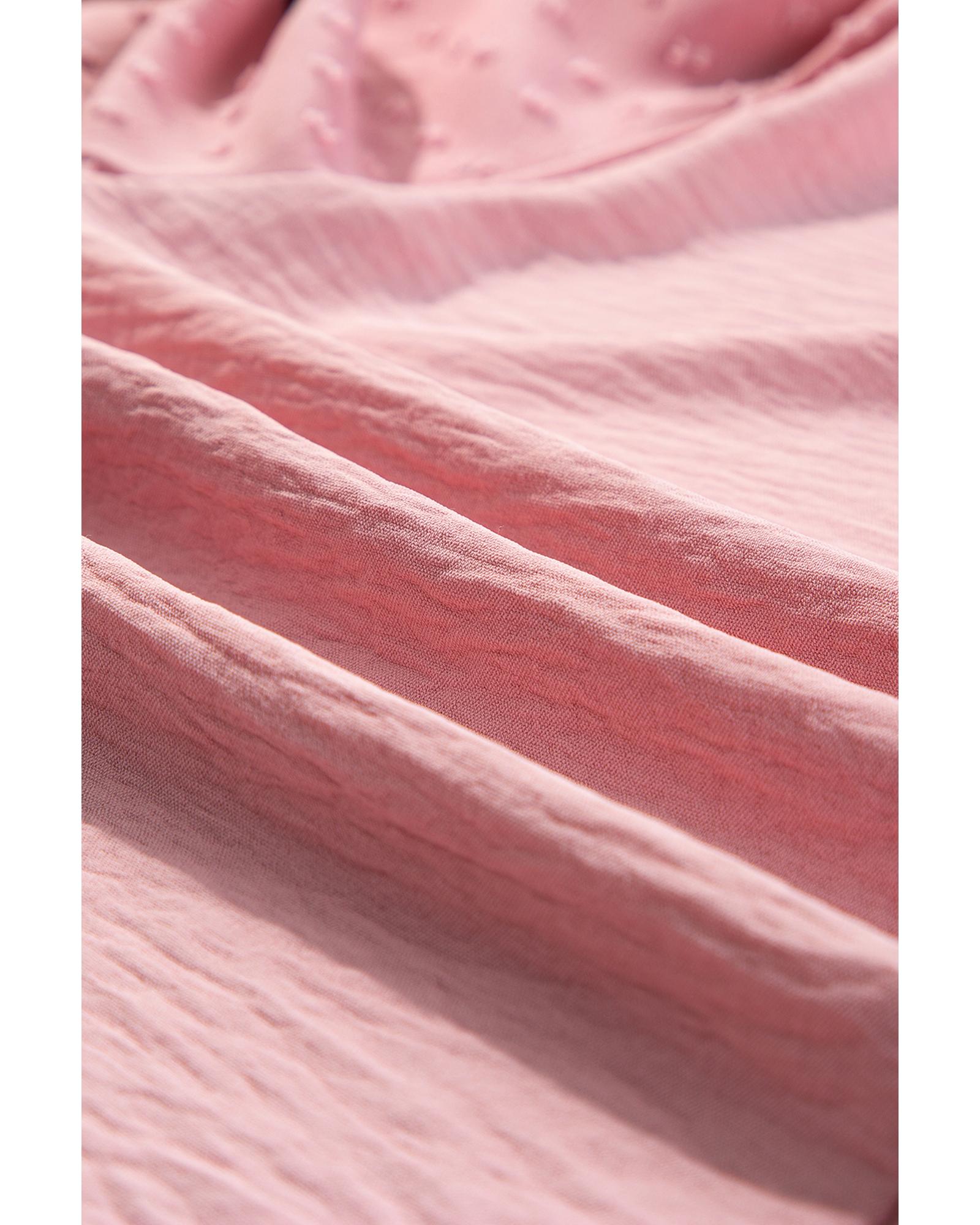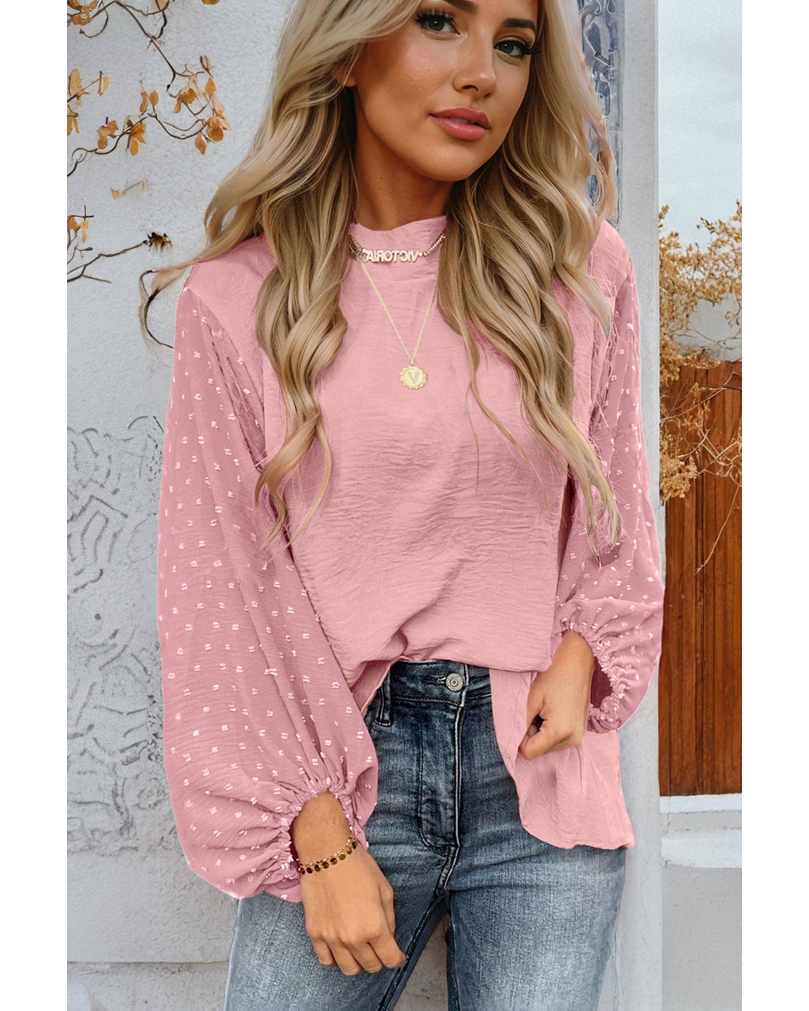 Gossamer Pink Swiss Dot Balloon Sleeve Loose Blouse – M
