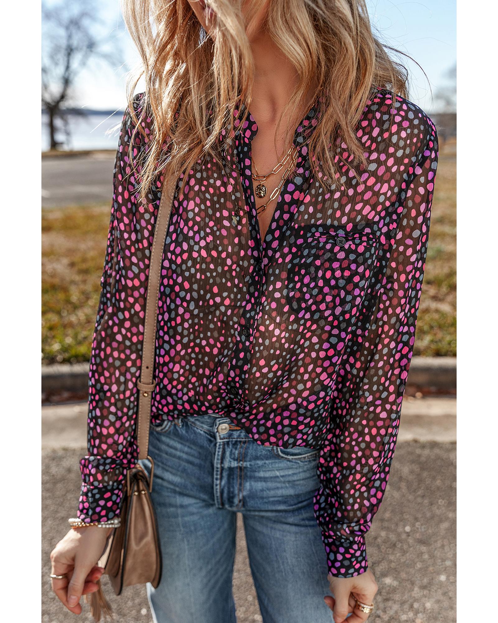 Grape Wine Polka Dot Printed Buttoned Casual Shirt – S