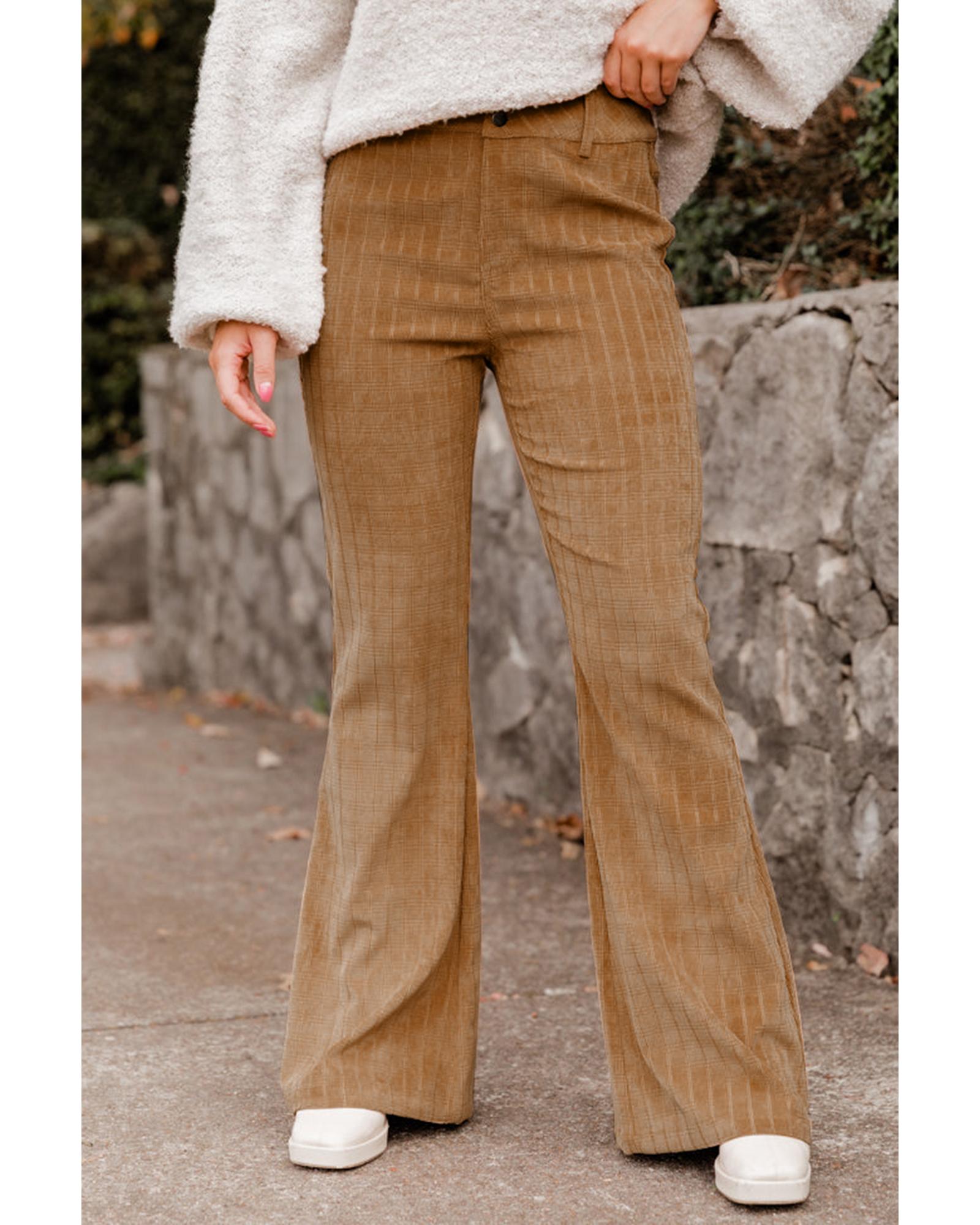 Grapefruit Orange Checkered Corduroy Flare High Waist Pants – XL