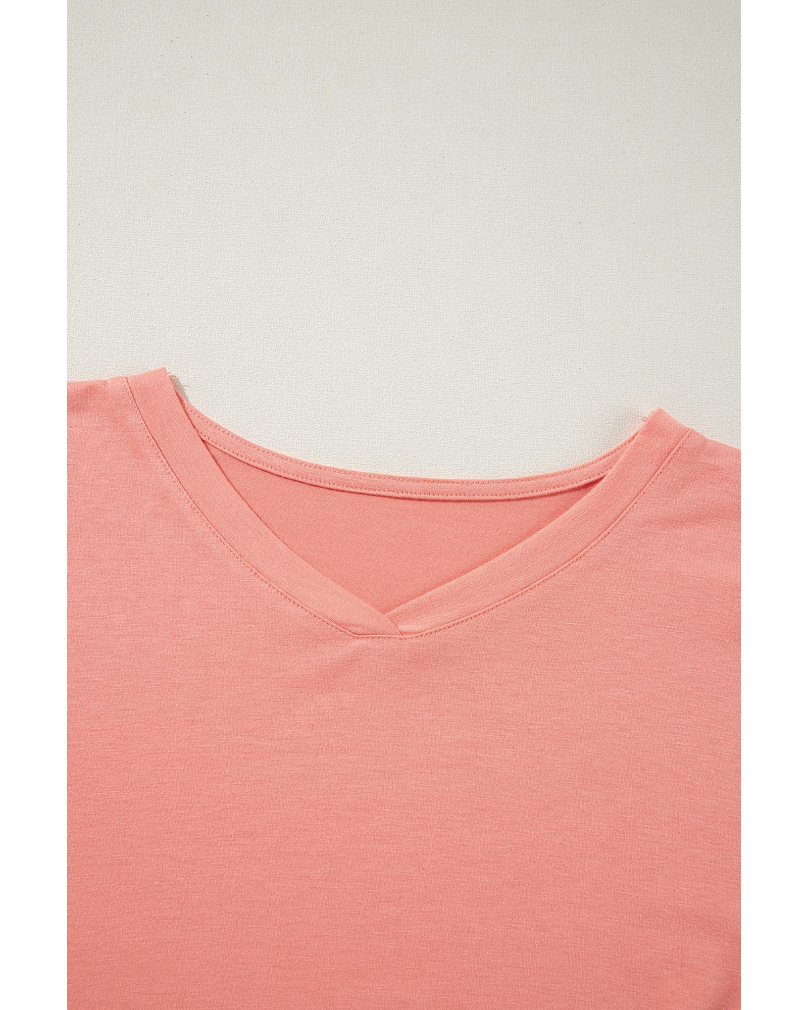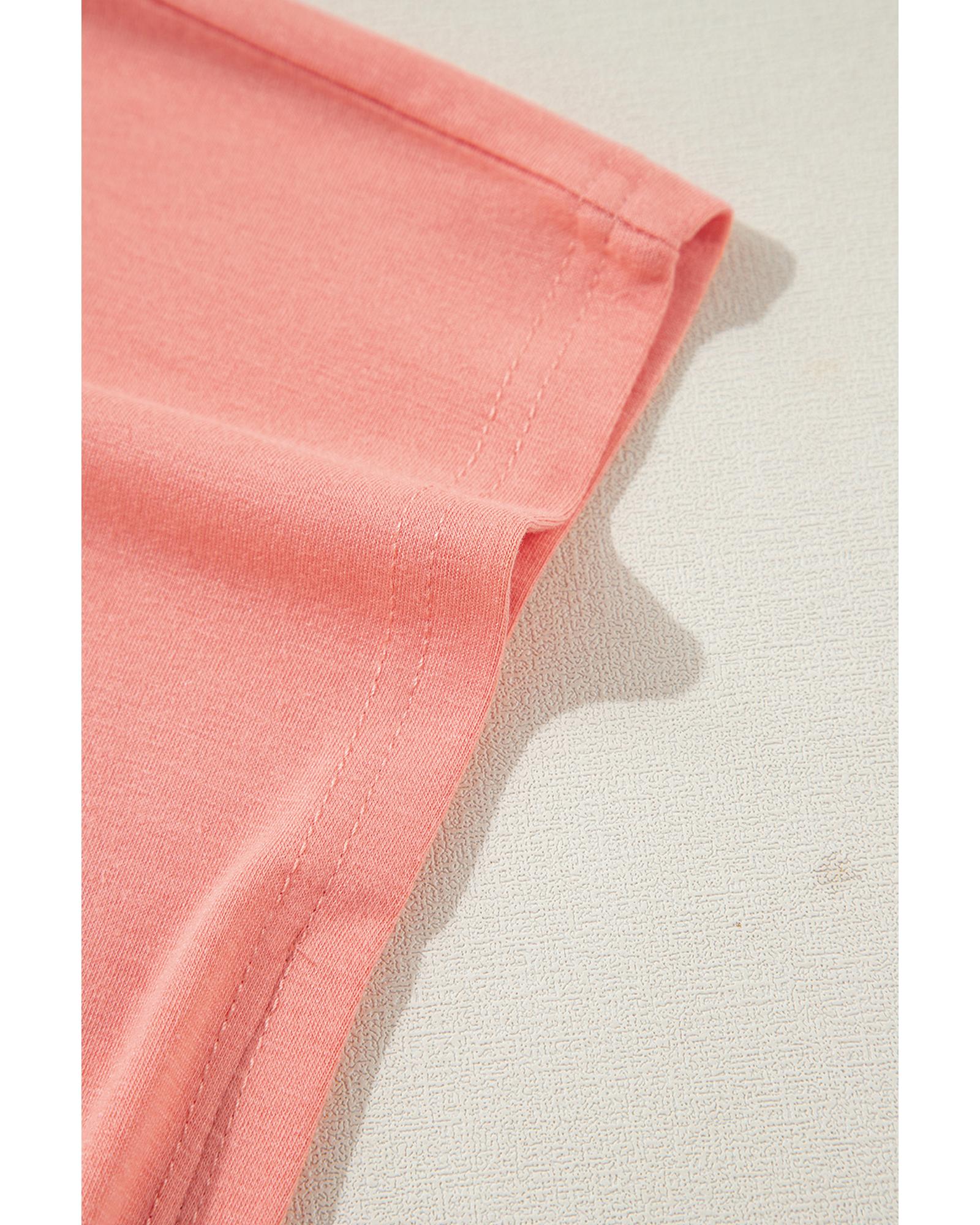 • Grapefruit Orange Contrast Color Patchwork Oversized Side Split Top
