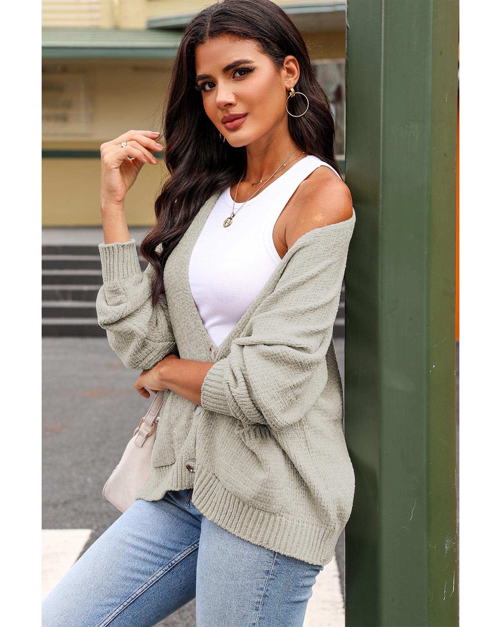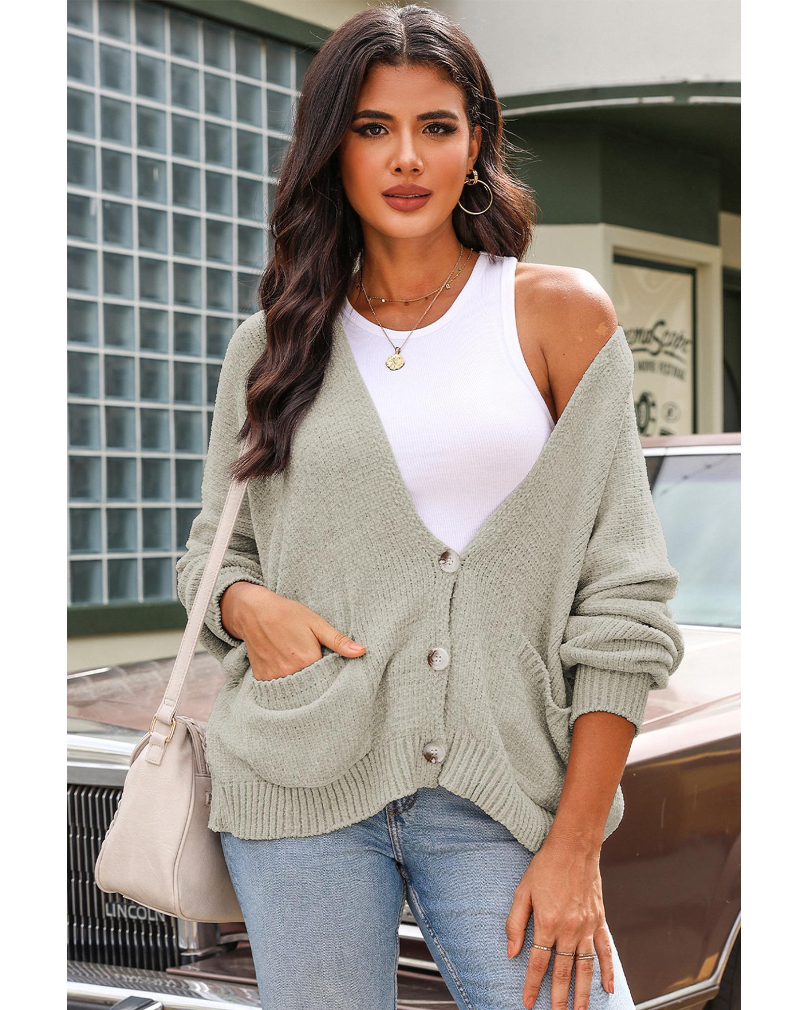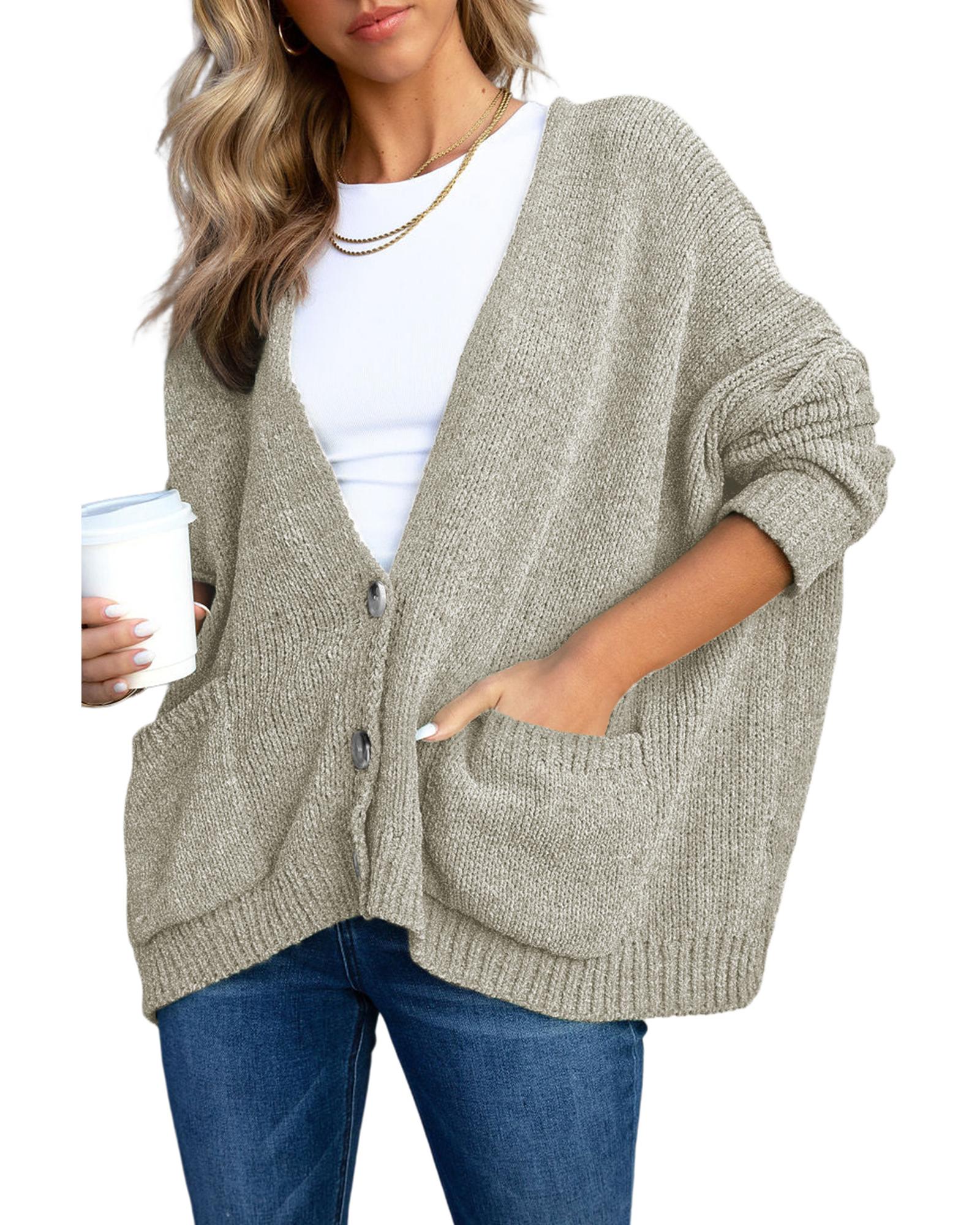 Gray Buttons Front Pocketed Sweater Cardigan – 2XL