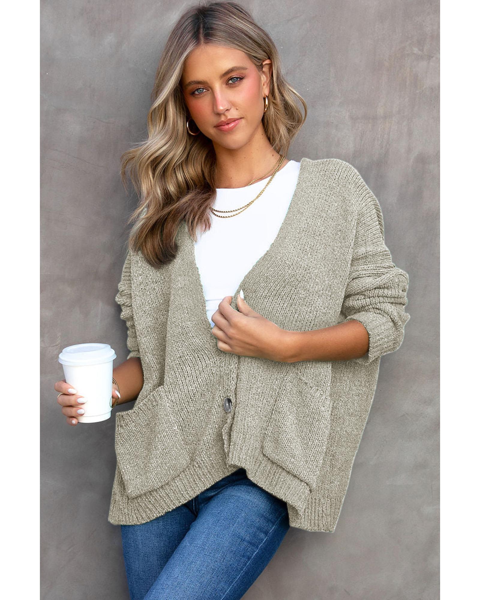Gray Buttons Front Pocketed Sweater Cardigan – L