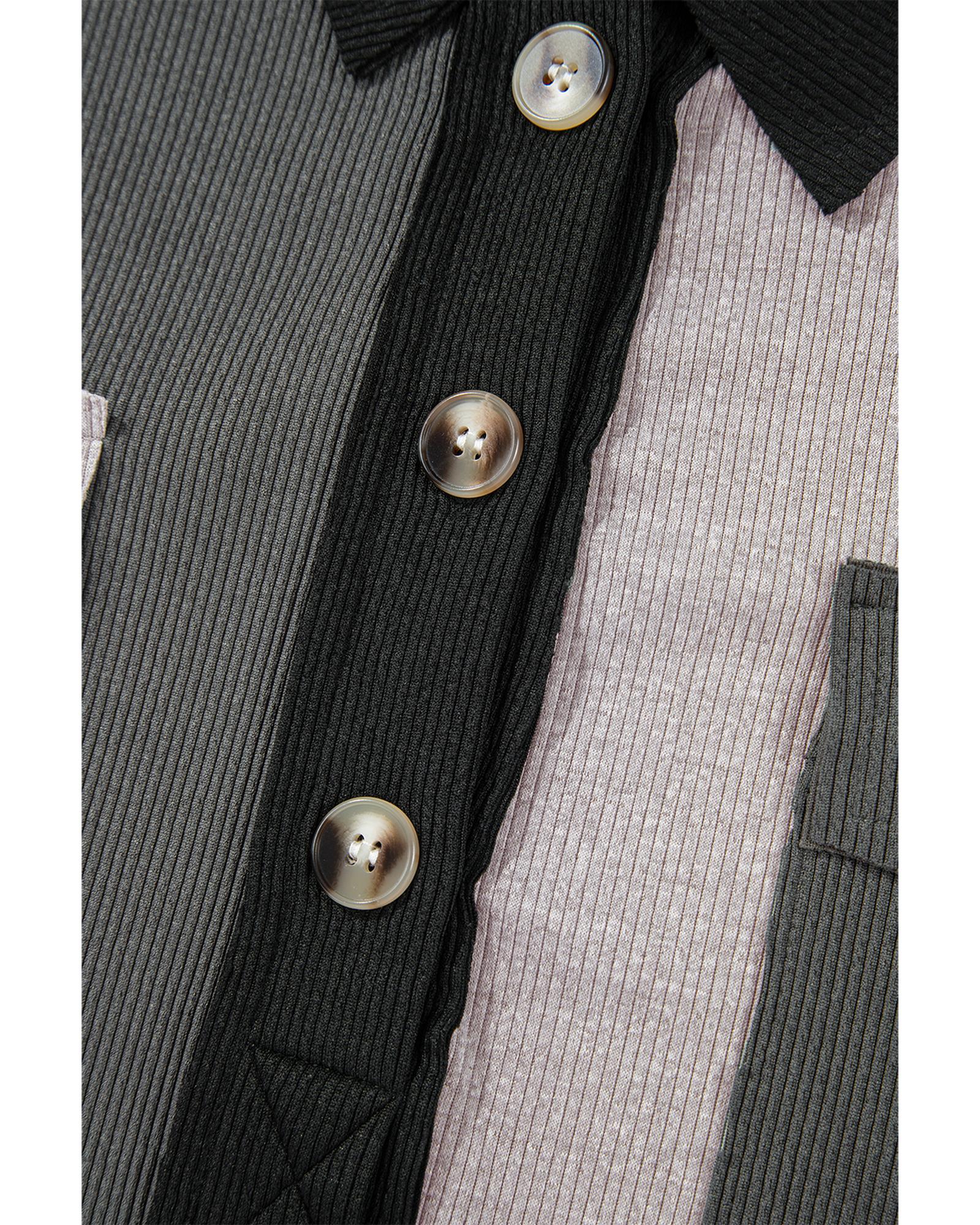 Gray Colorblock Ribbed Collared Oversized Sweatshirt – XL