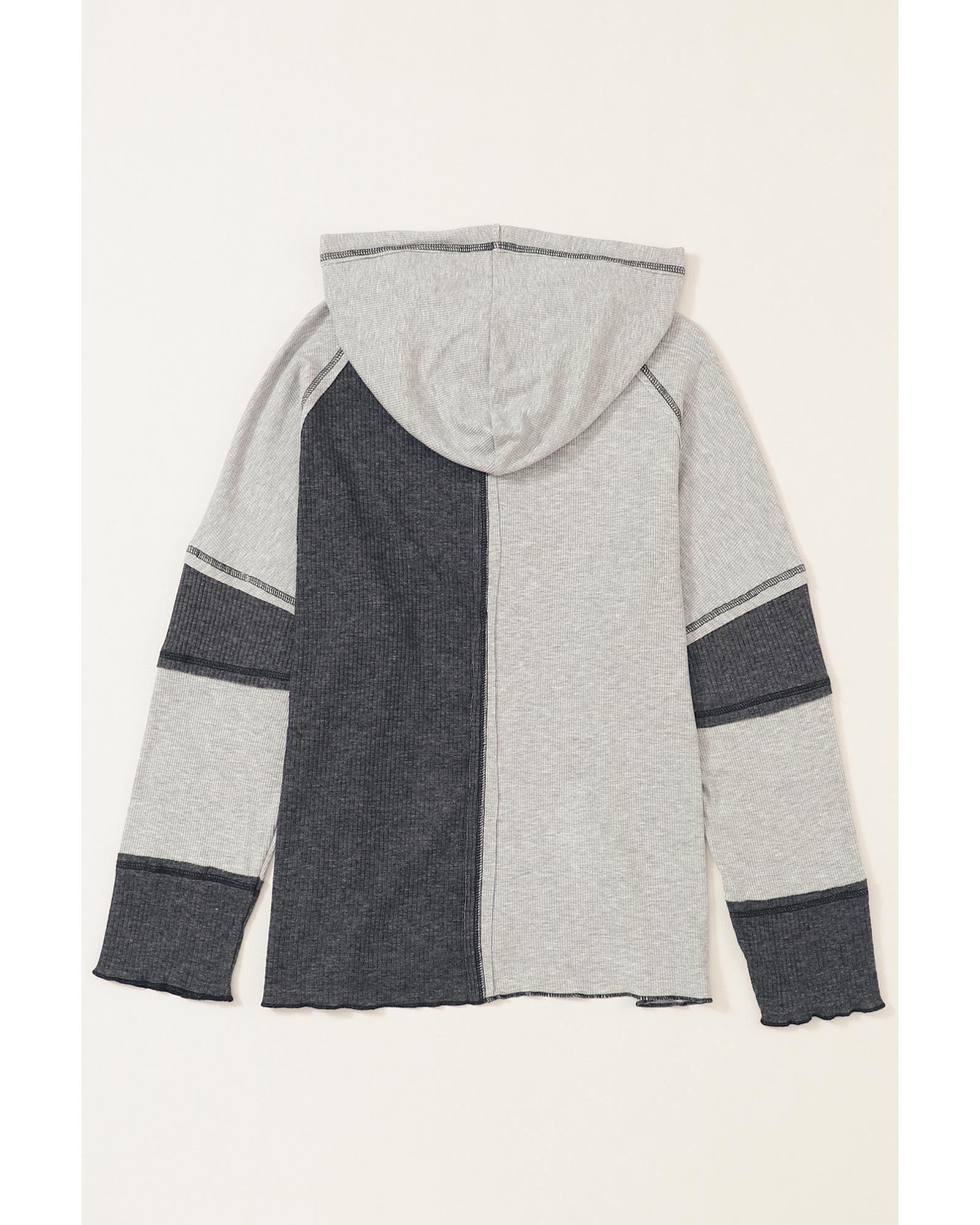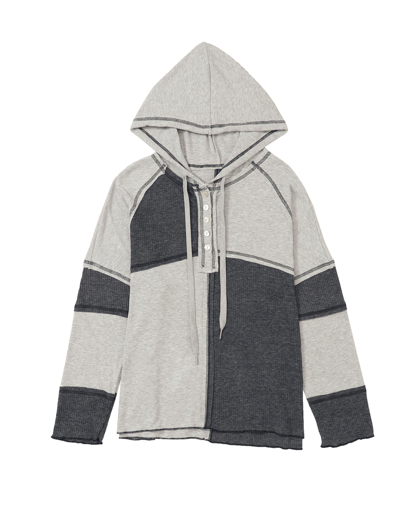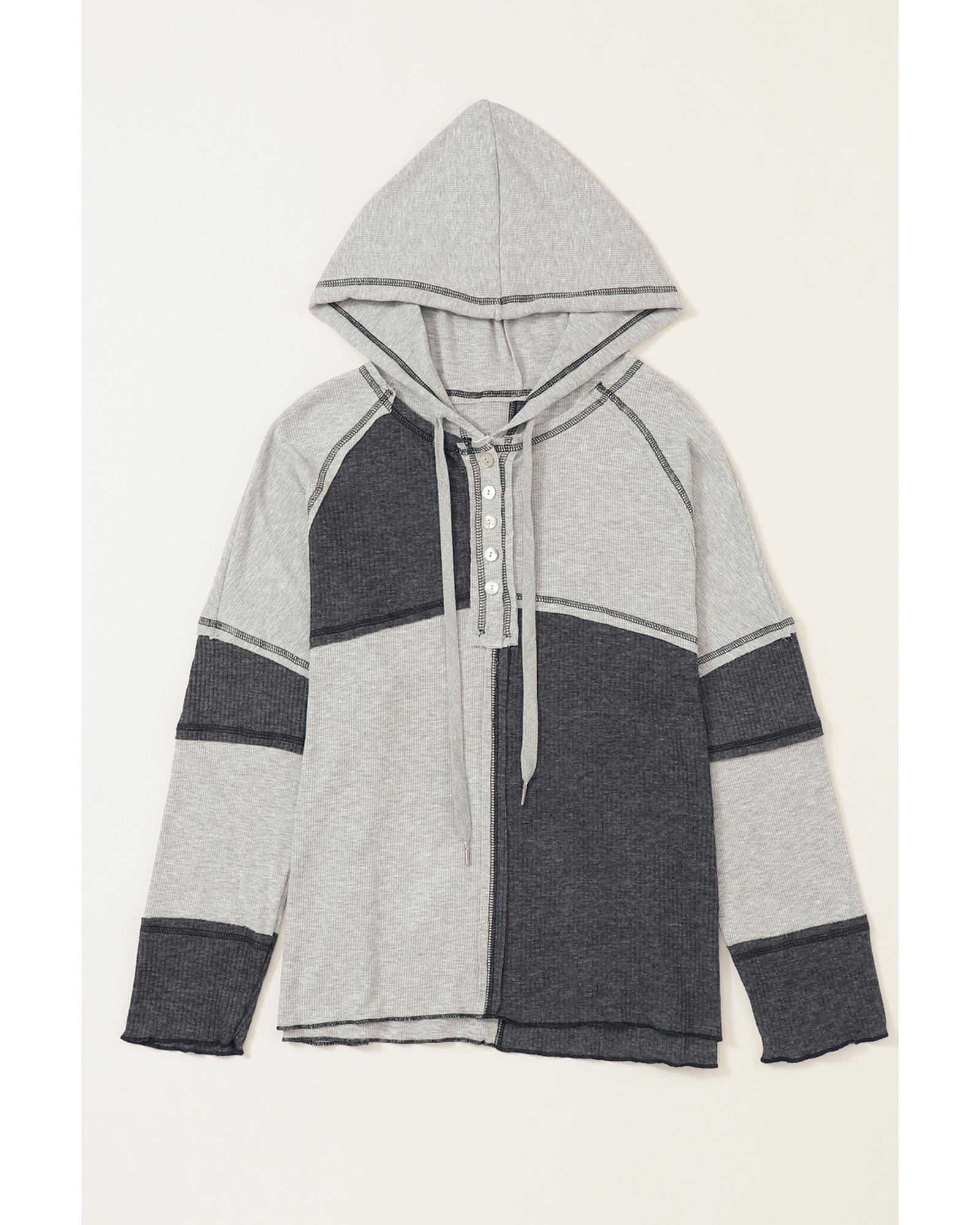 - Gray Colorblock Seamed Ribbed Henley Hoodie