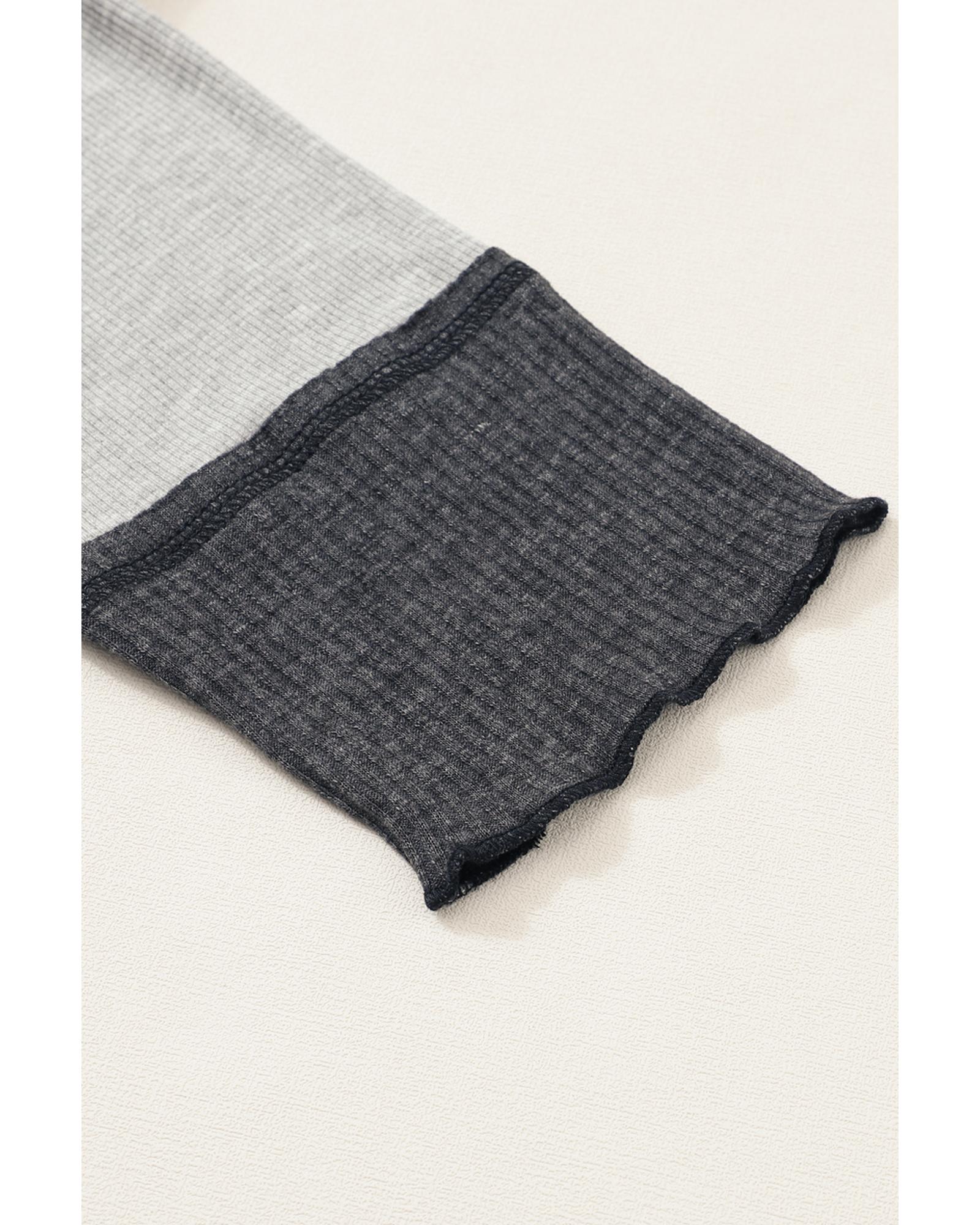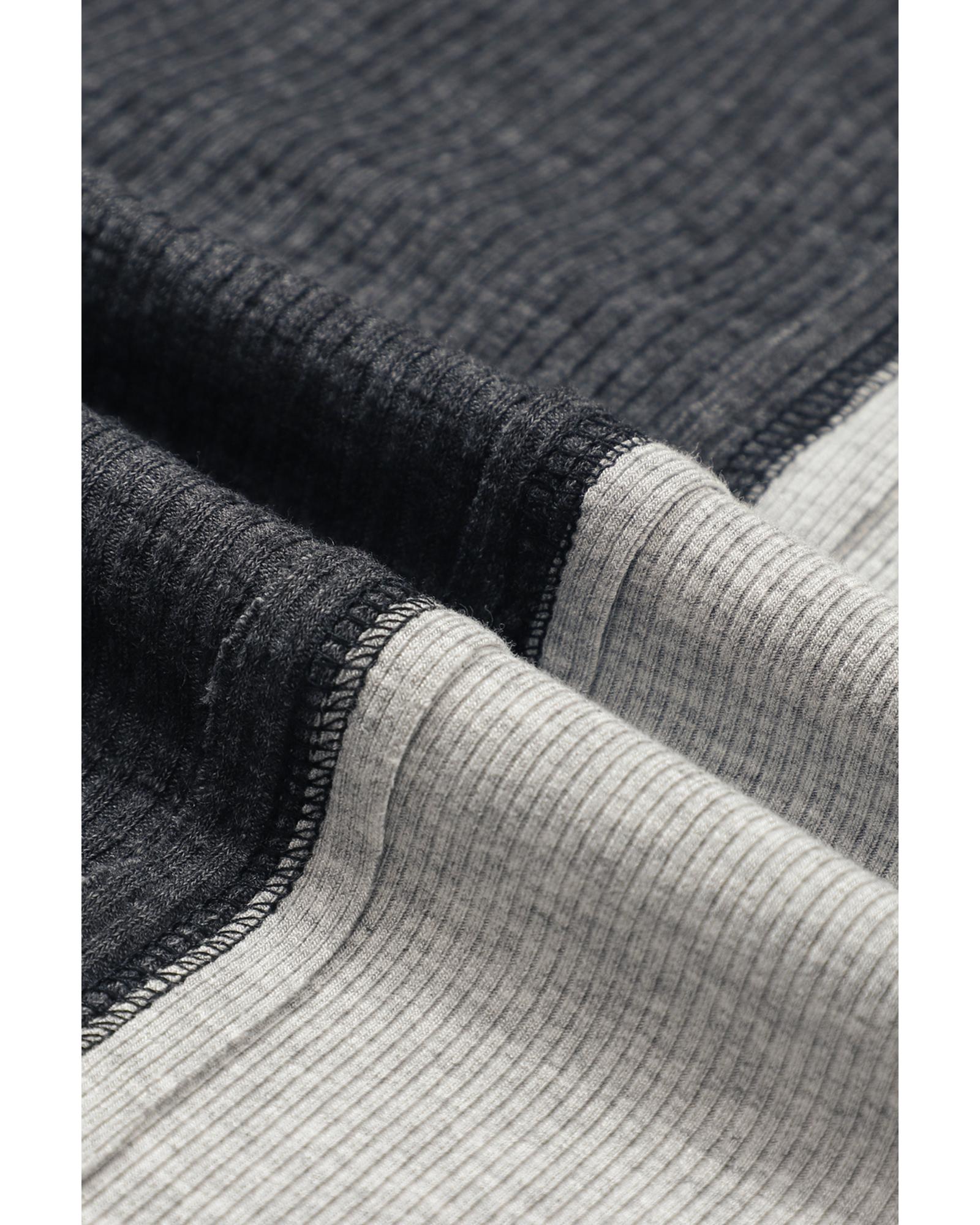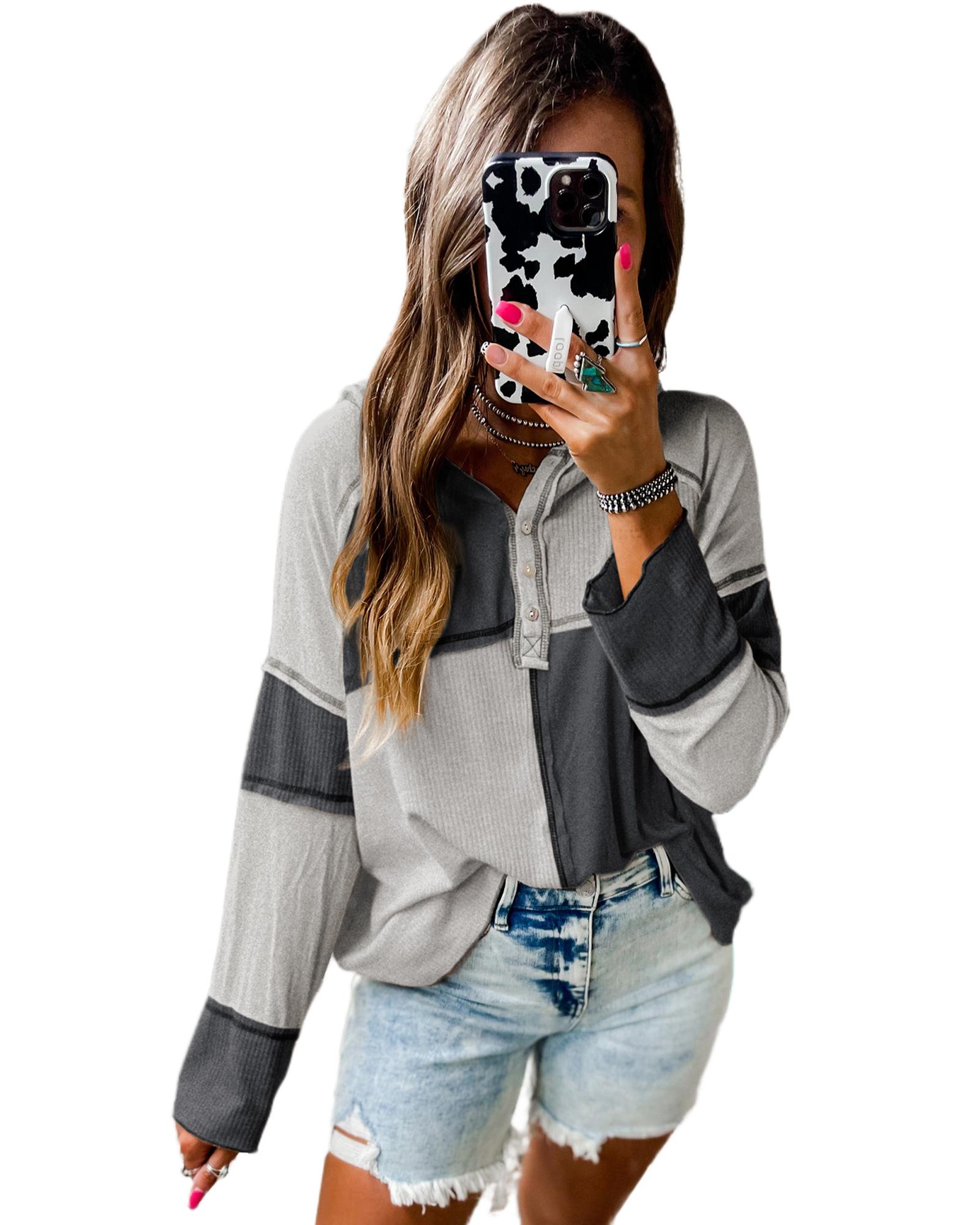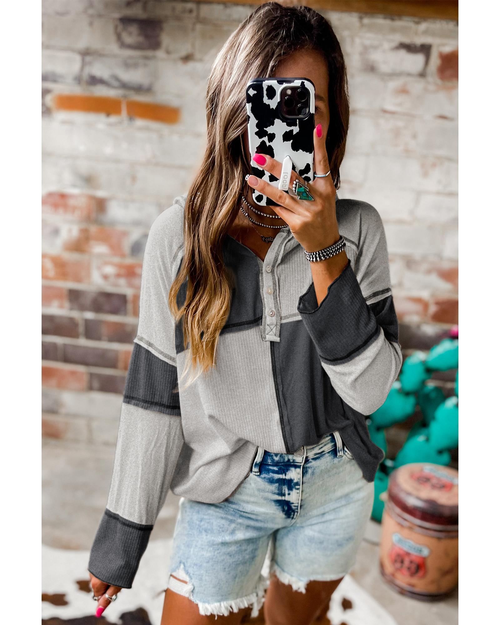 - Gray Colorblock Seamed Ribbed Henley Hoodie