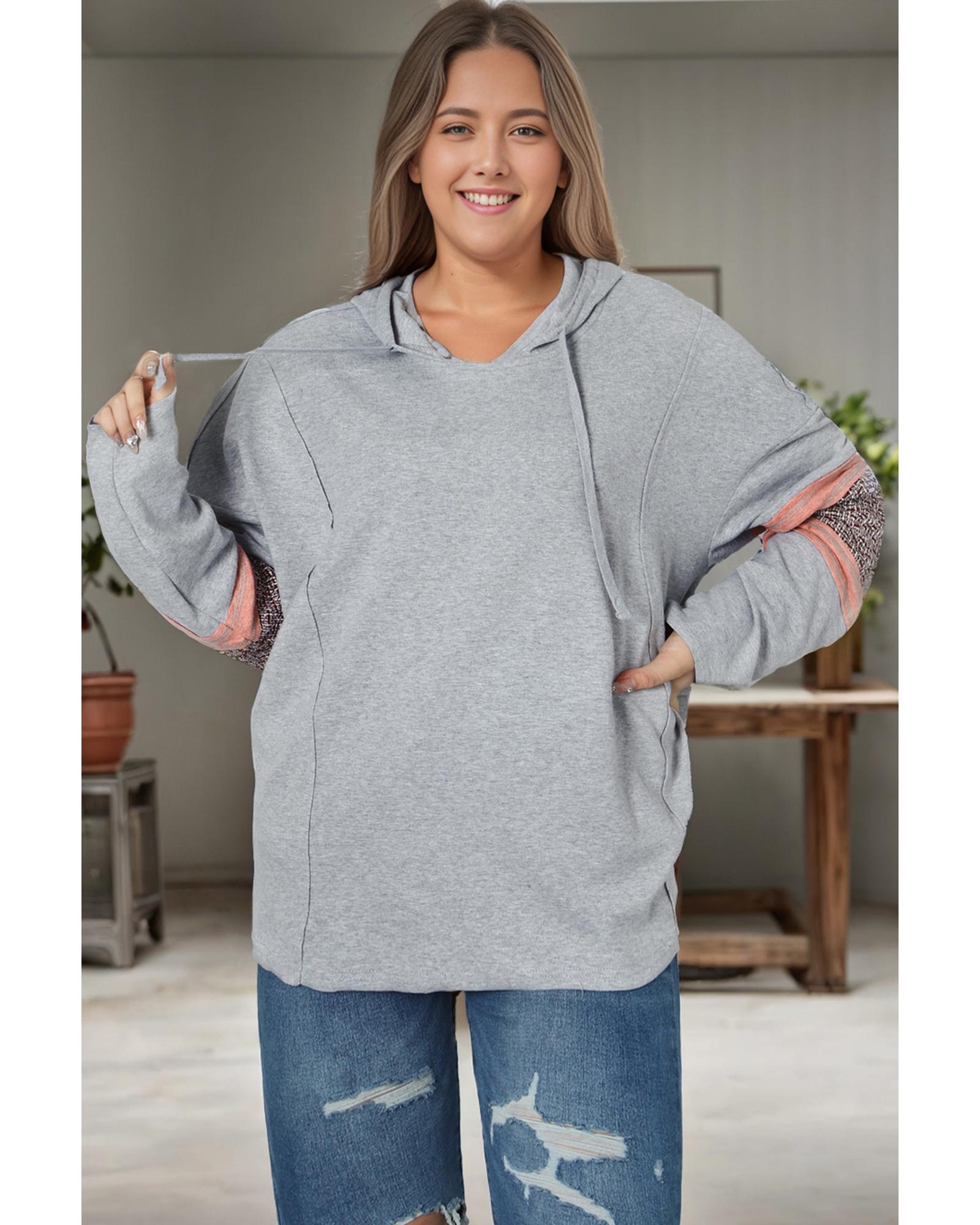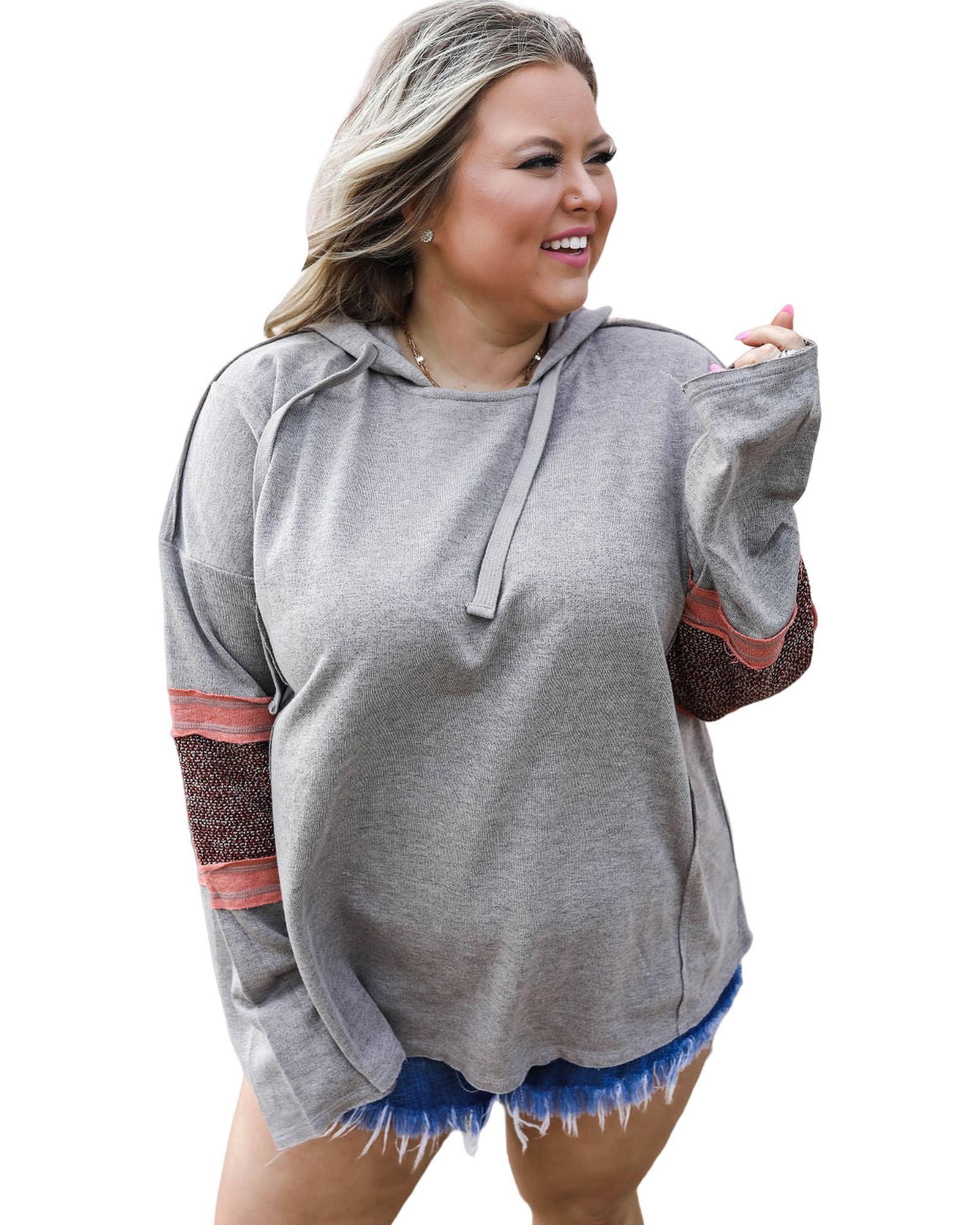 Gray Contrast Patched Sleeve Plus Size Hoodie – 2X