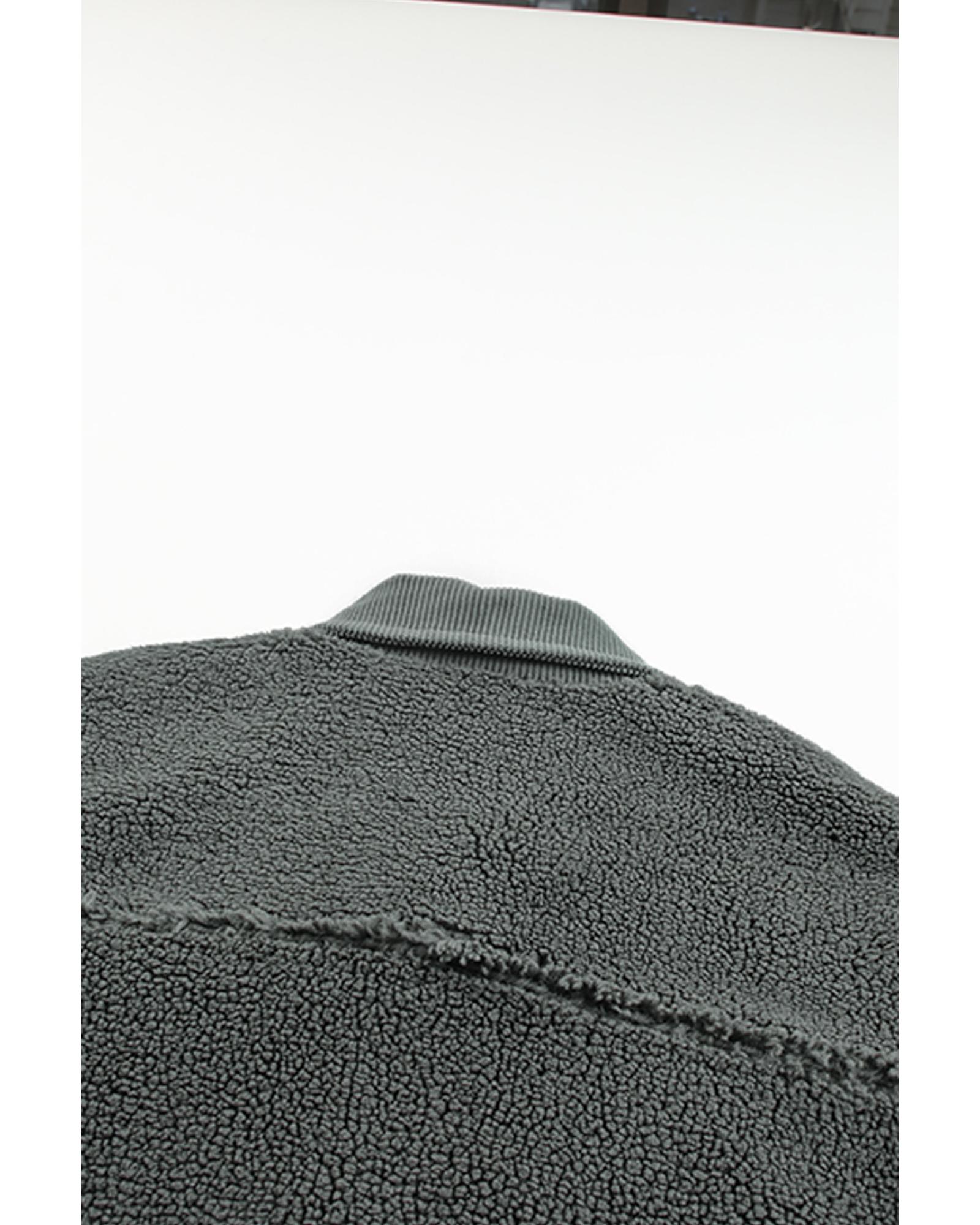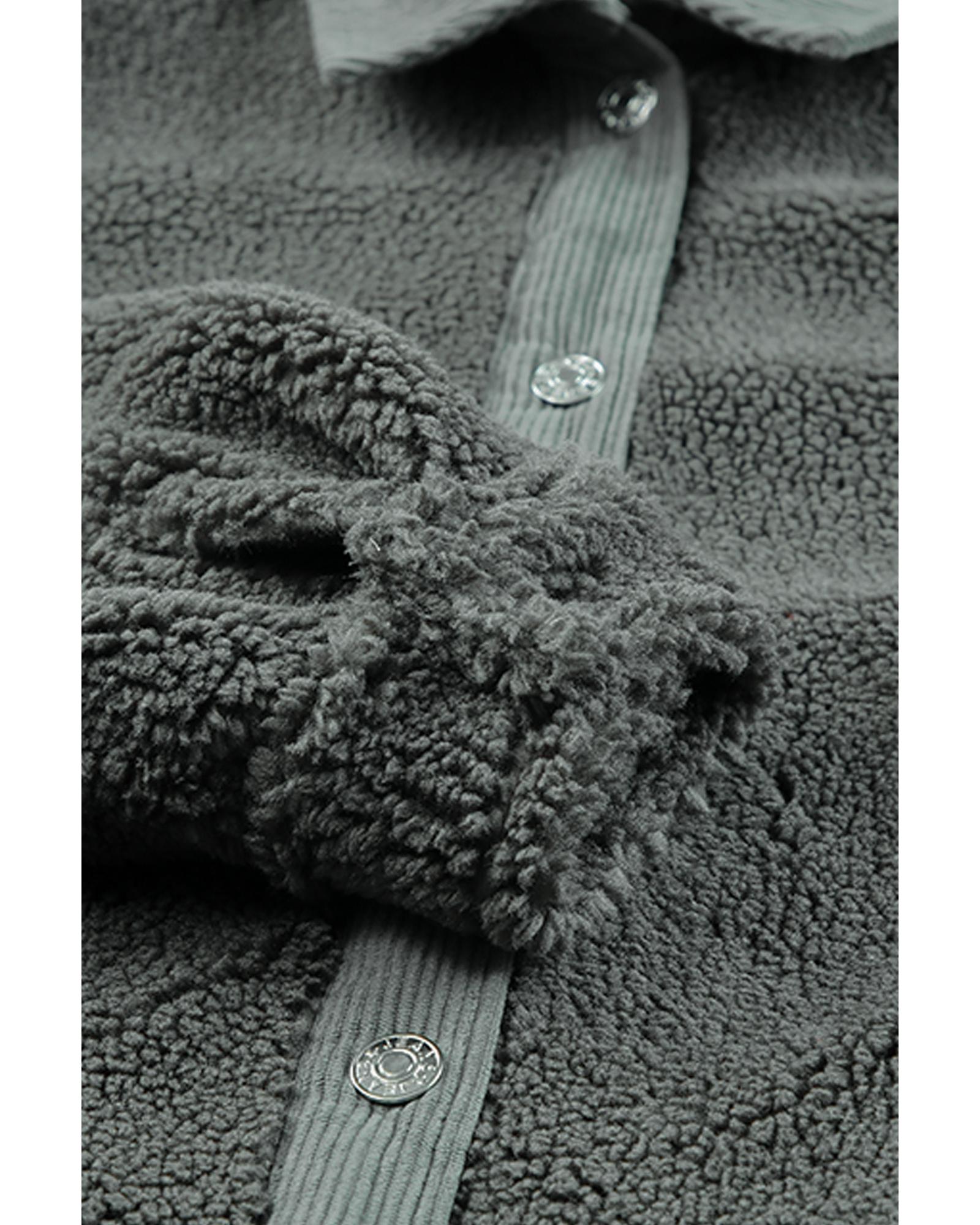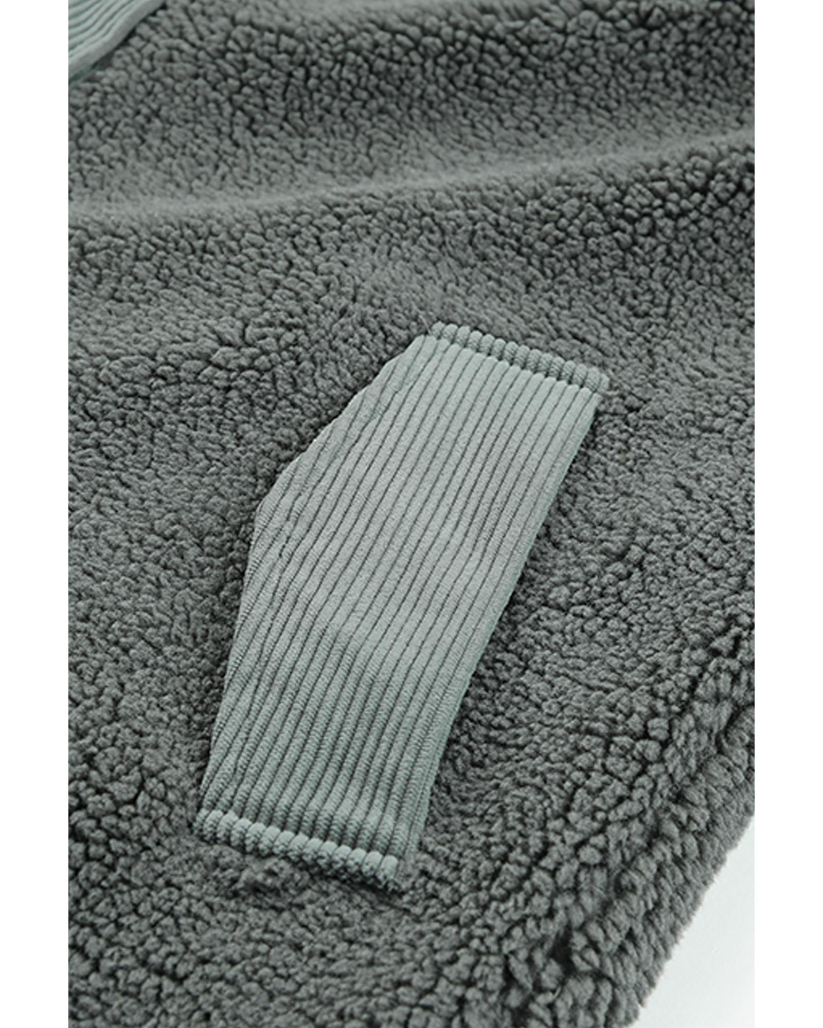 Gray Corduroy Trim Elbow Patch Sherpa Jacket – XL