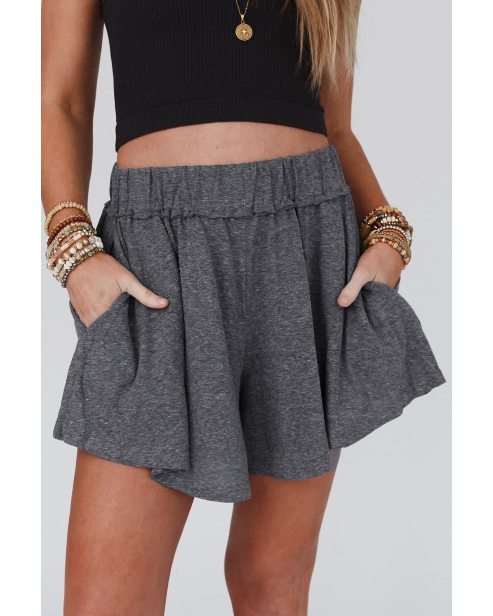 Gray Elastic Waist Culotte Shorts – S