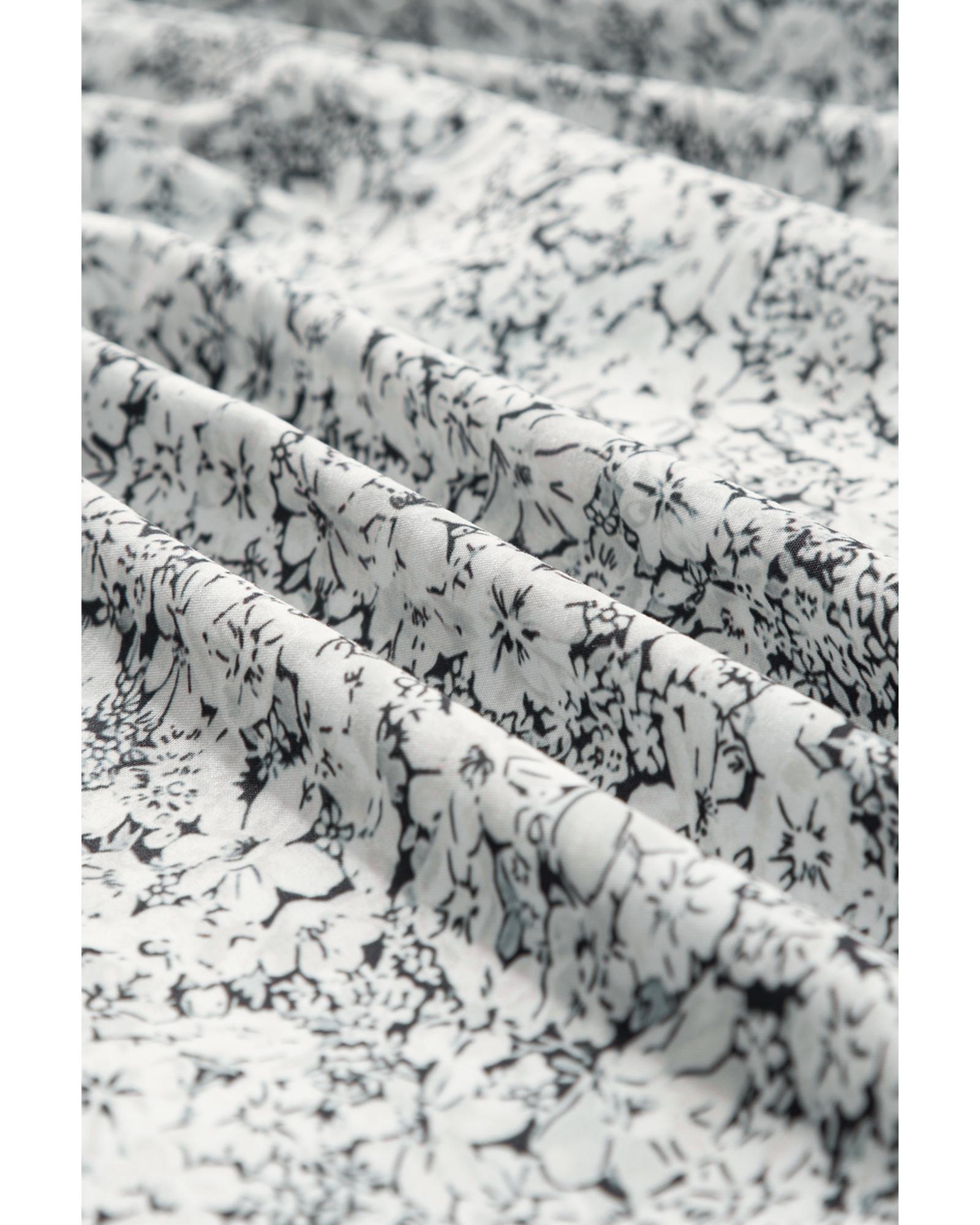Gray Floral Print Open Back Balloon Sleeve Square Neck Mini Dress – S