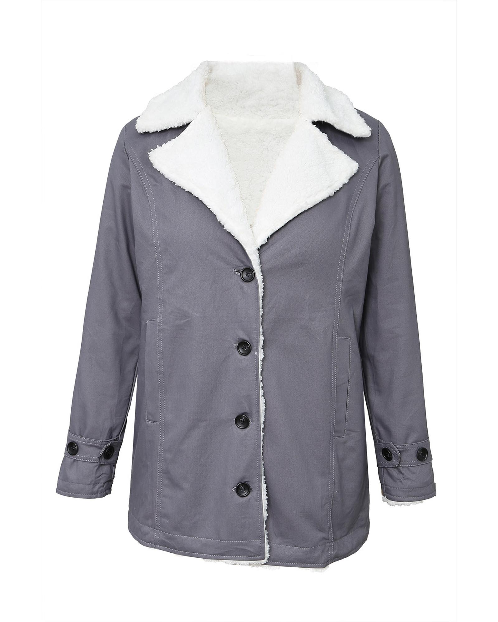 Khaki Western Aztec Print Sherpa Splicing Buttoned Flap Pocket Coat - XL