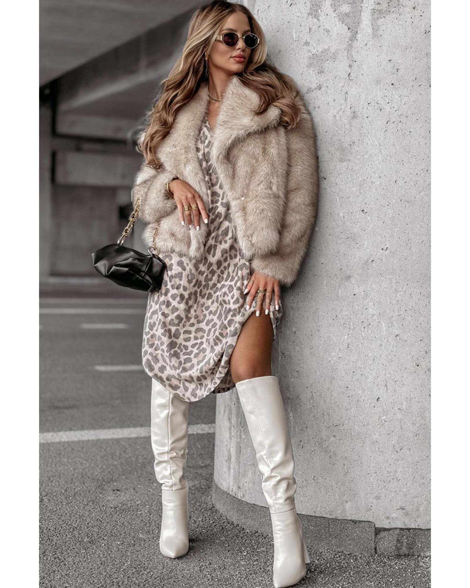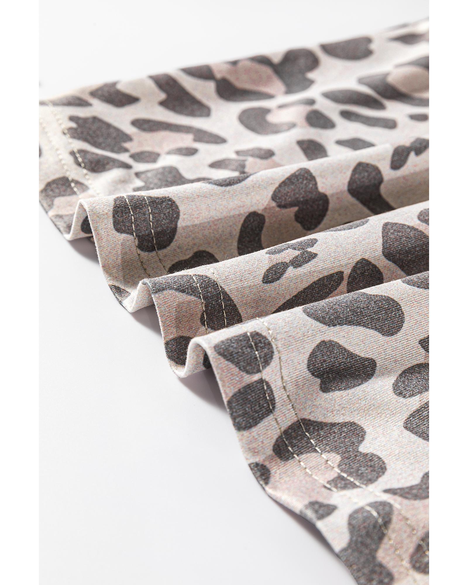 Gray Leopard Print V Neck Loose Fit Mini Dress – L
