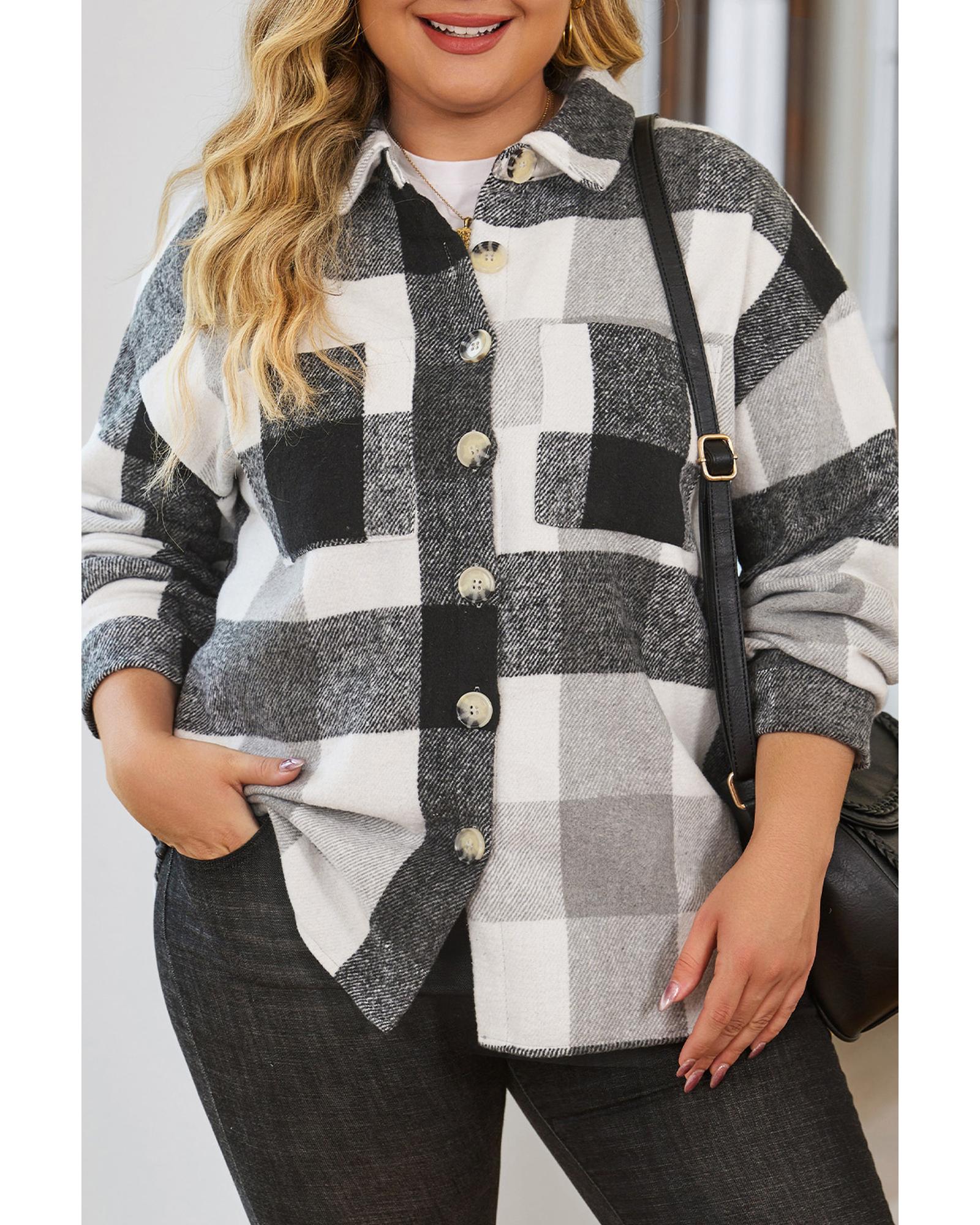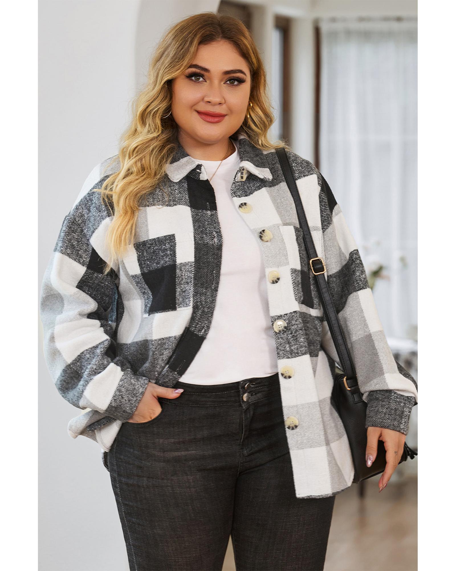 Gray Plus Size Checkered Button-Up Shacket – 2X