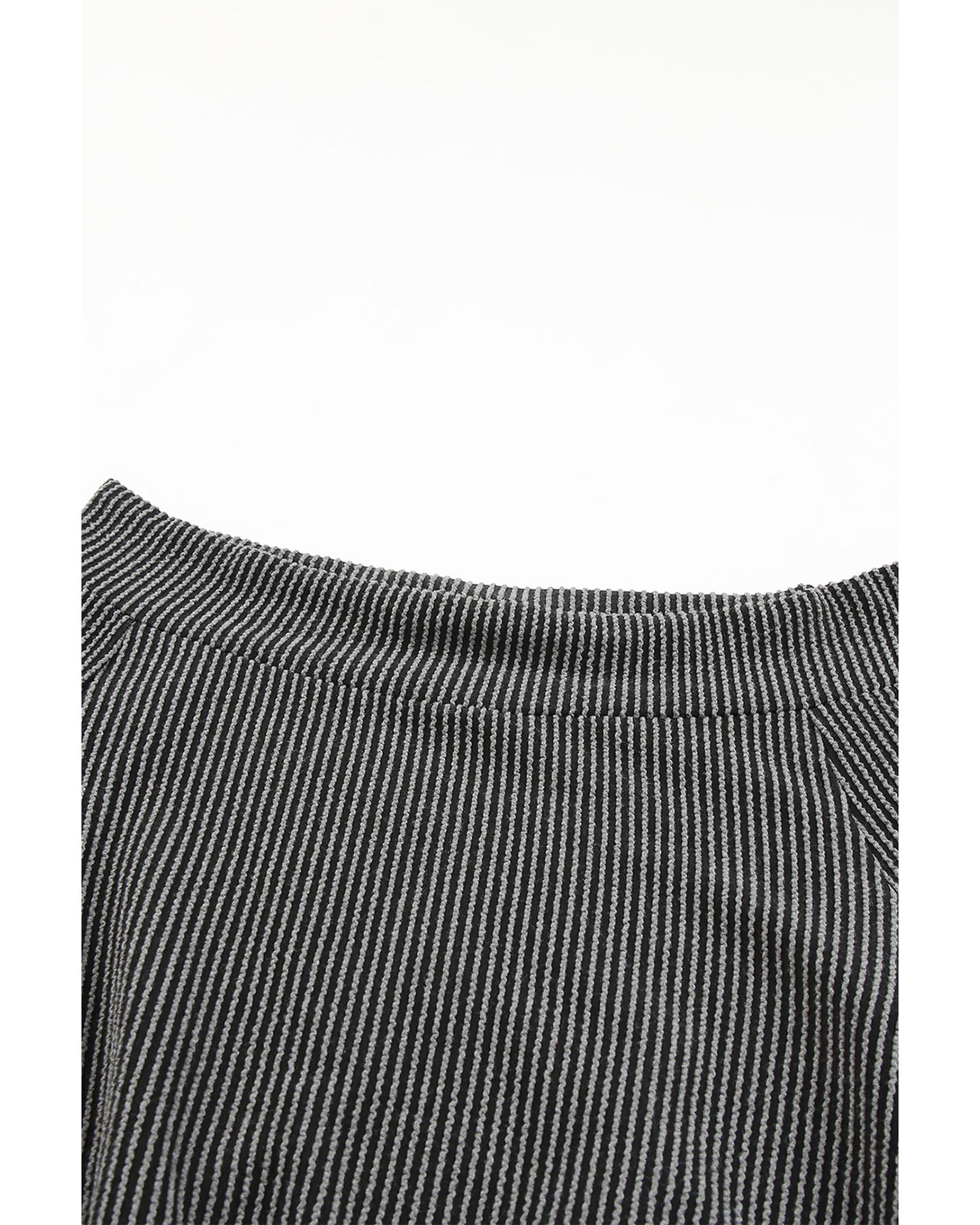 Gray Ribbed Knit Off-Shoulder Balloon Sleeve Top – L