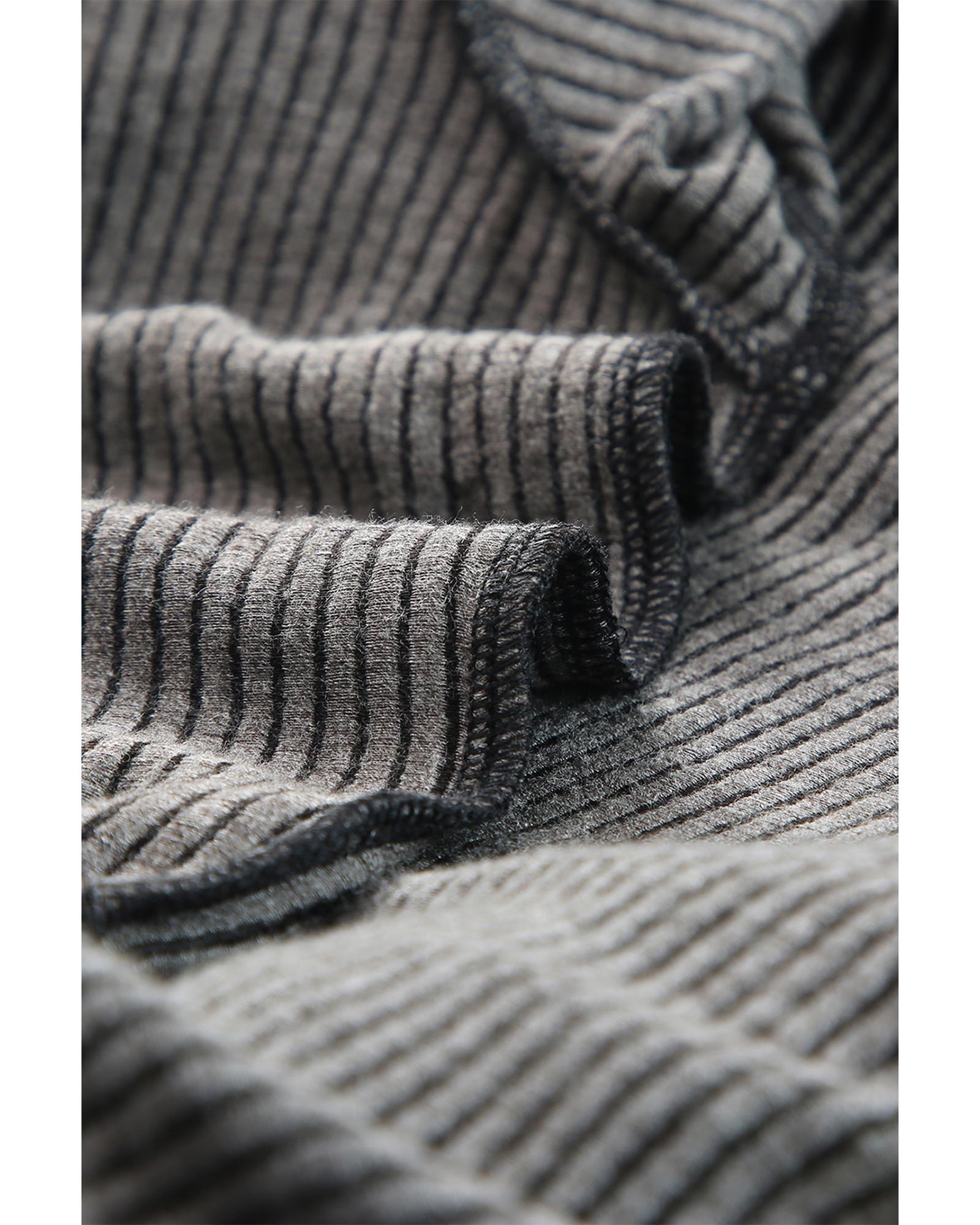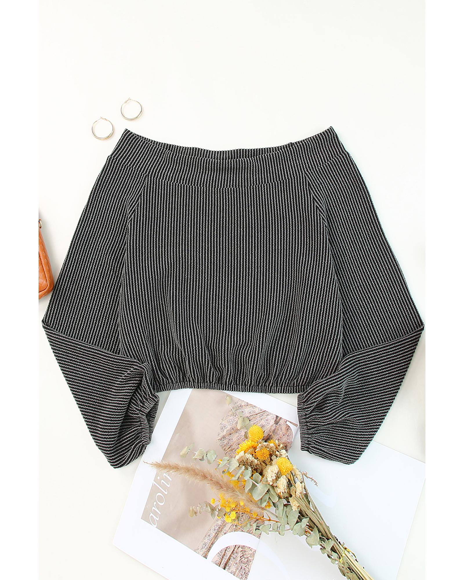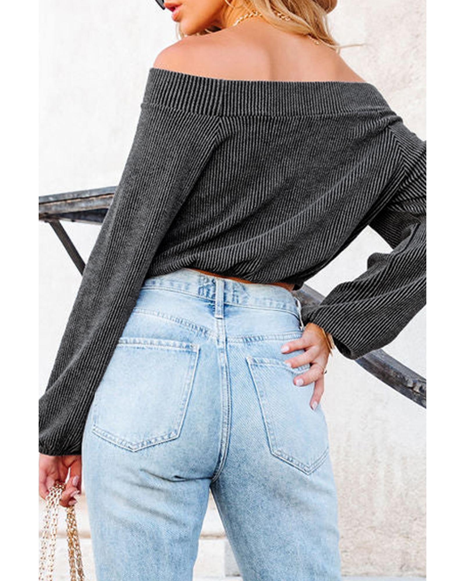 Gray Ribbed Knit Off-Shoulder Balloon Sleeve Top – M