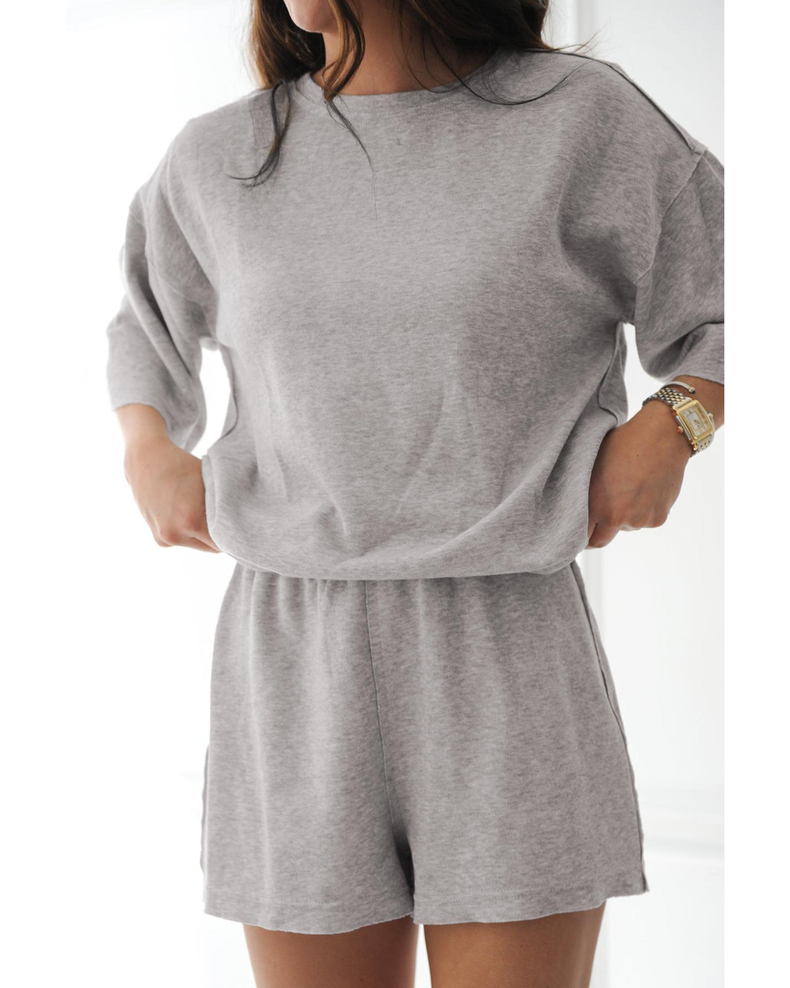 Gray Solid Color Loose Tee 2 Piece Shorts Set – L