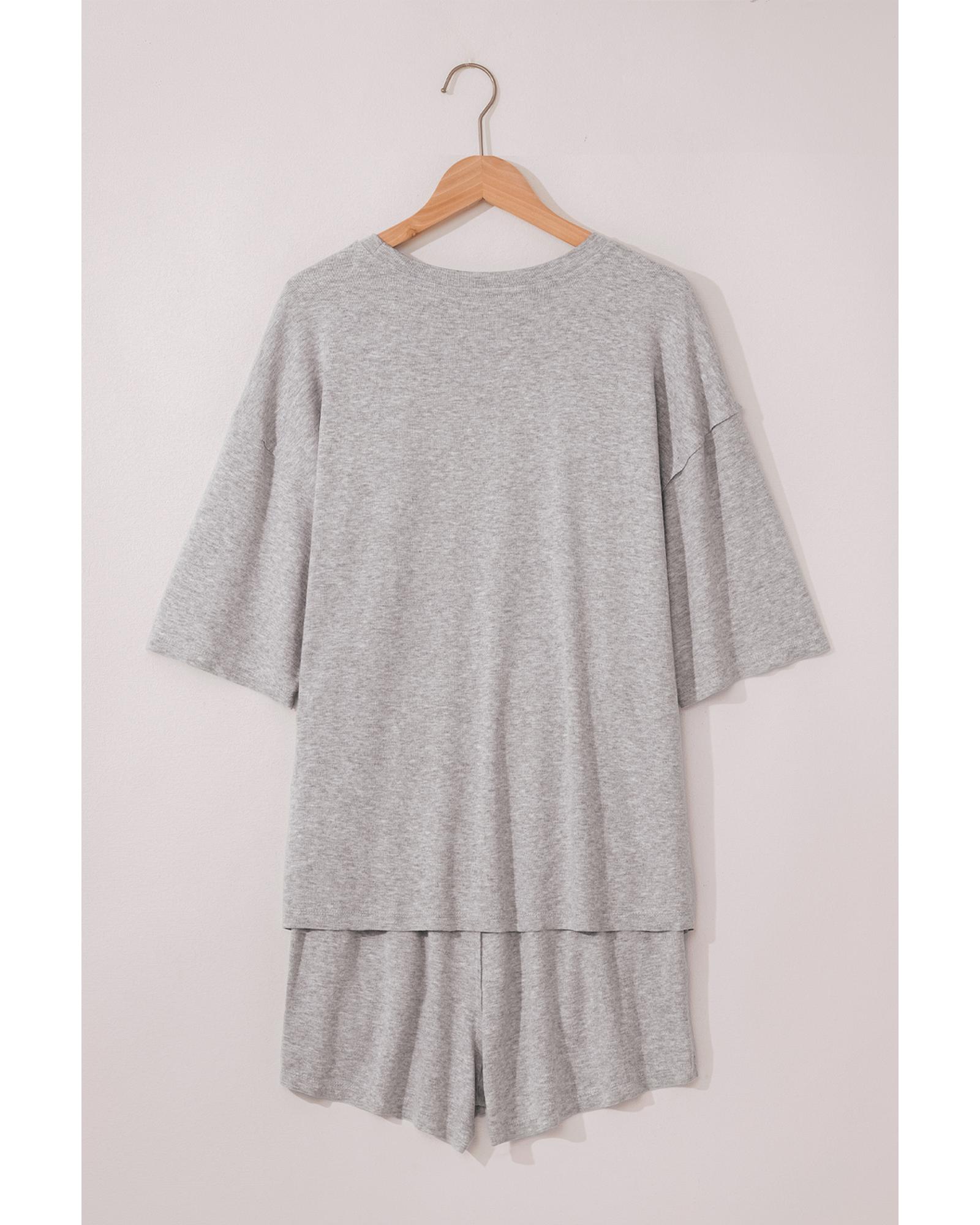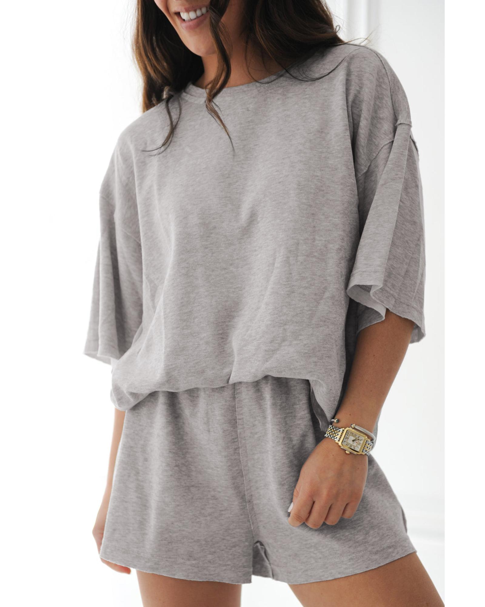 Gray Solid Color Loose Tee 2 Piece Shorts Set – M