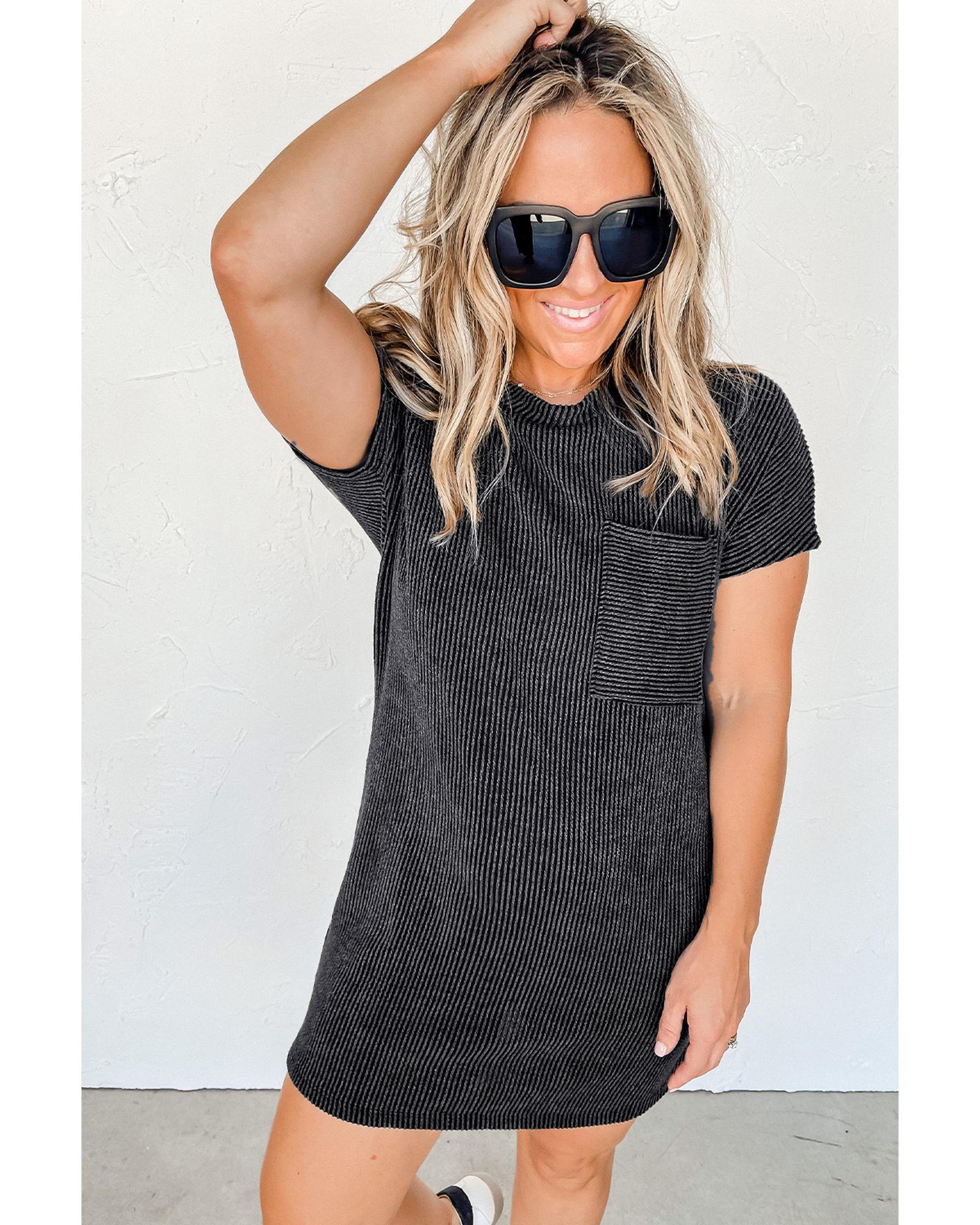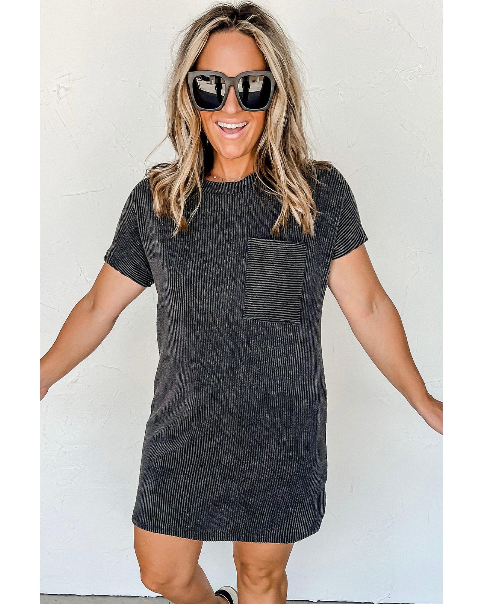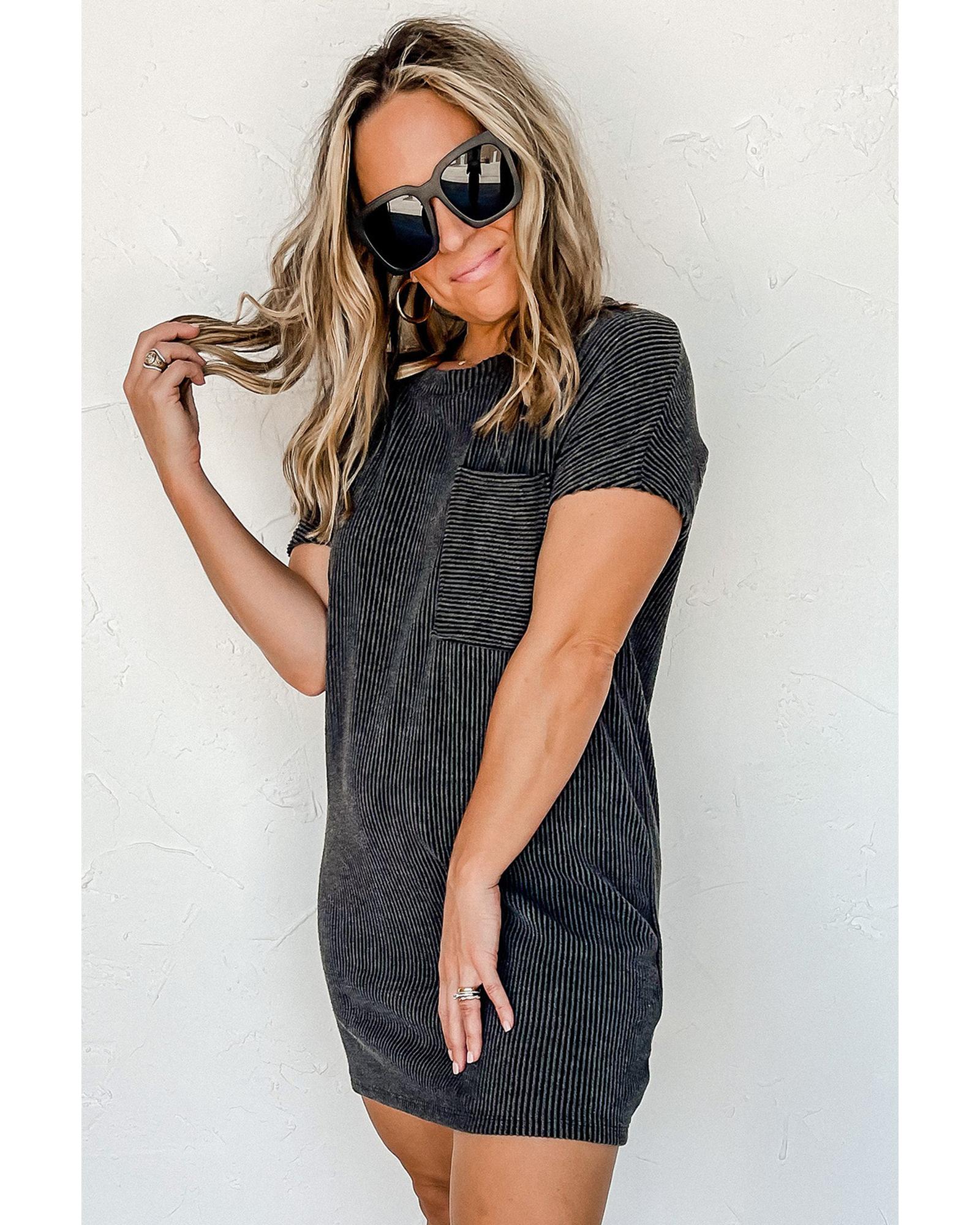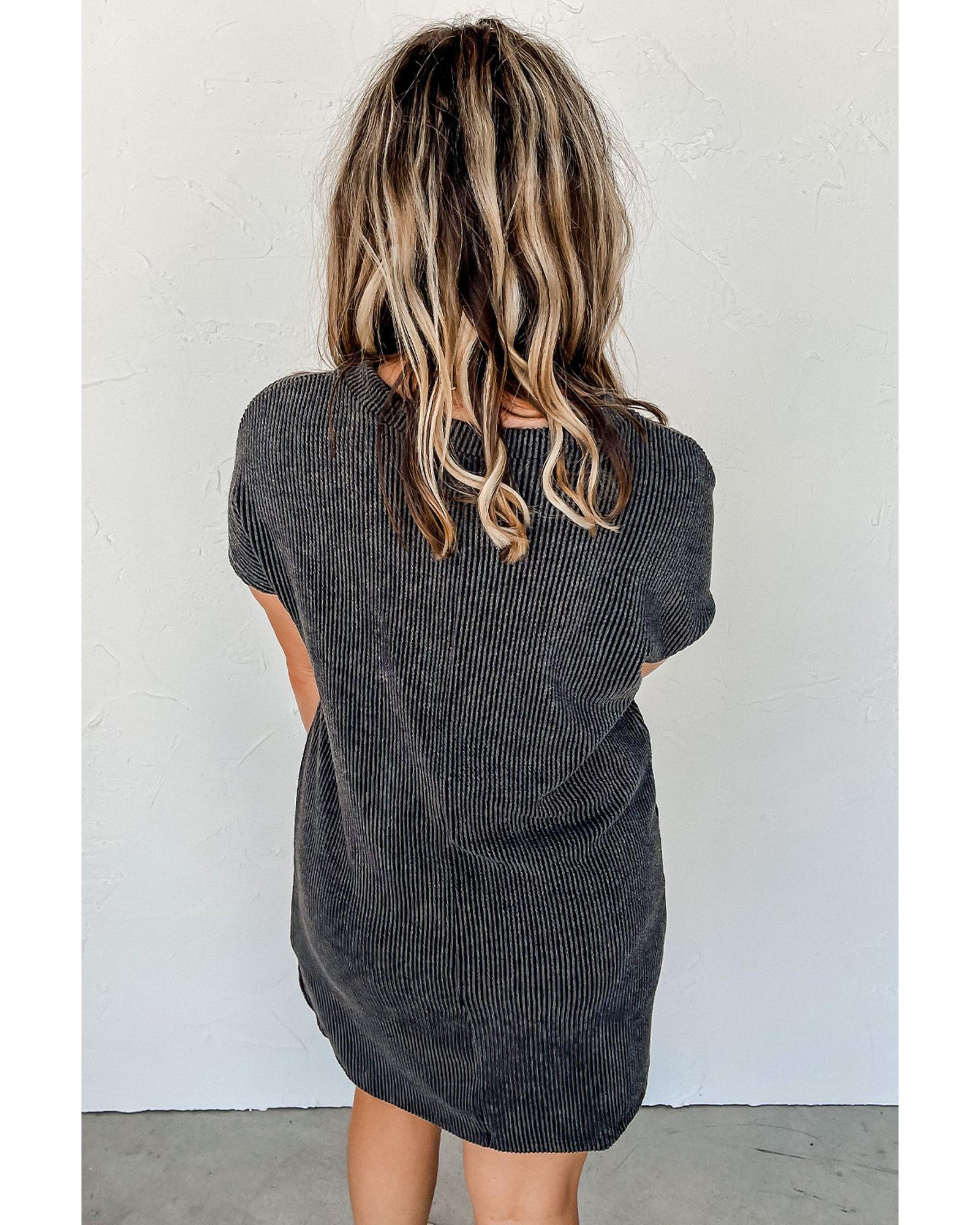 Gray Striped Ribbed Knit T-shirt Shift Dress – XL