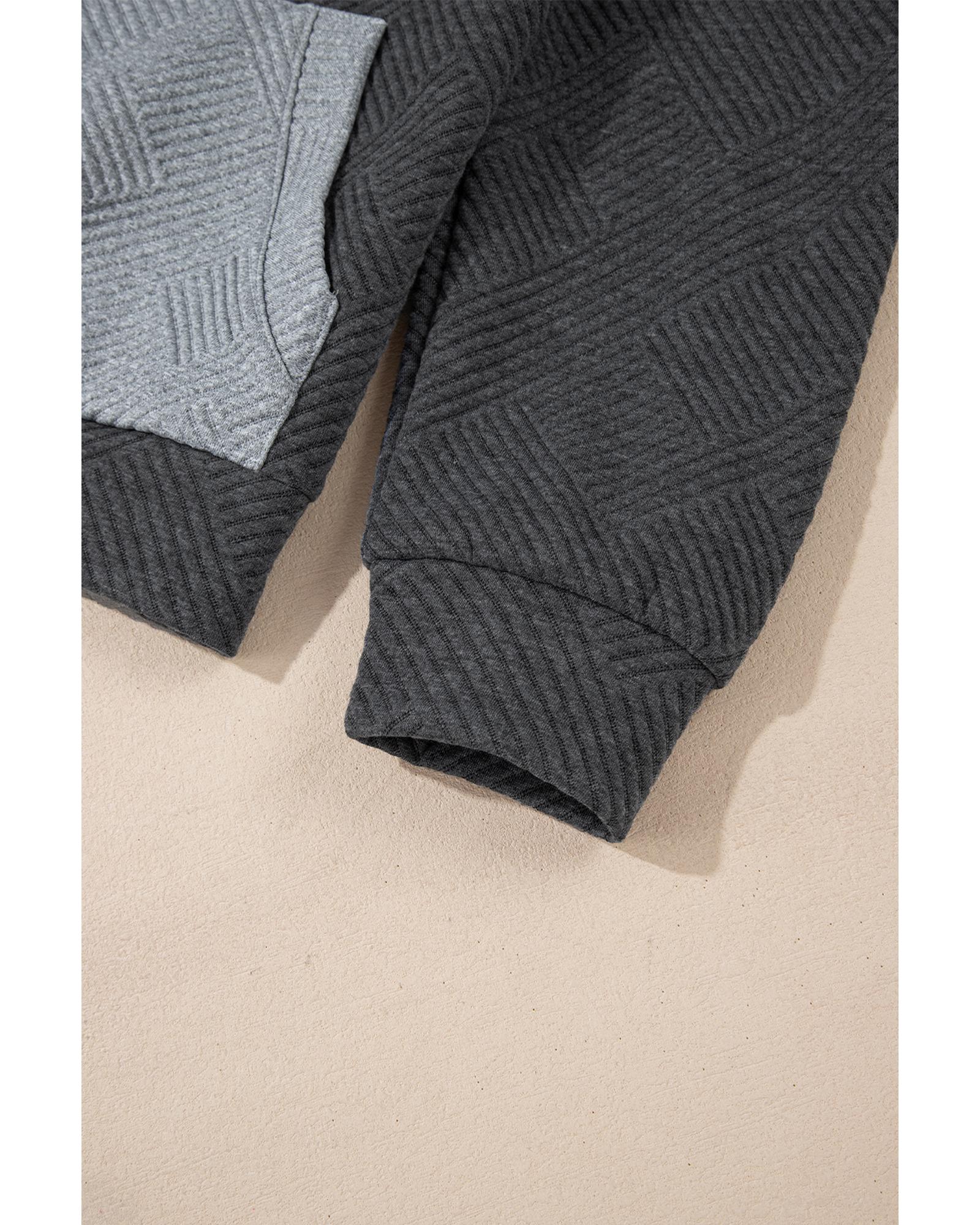 Gray Textured Color Block Kangaroo Pocket Drop Shoulder Hoodie – S