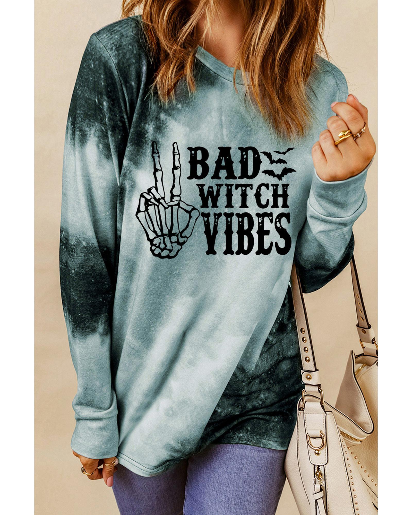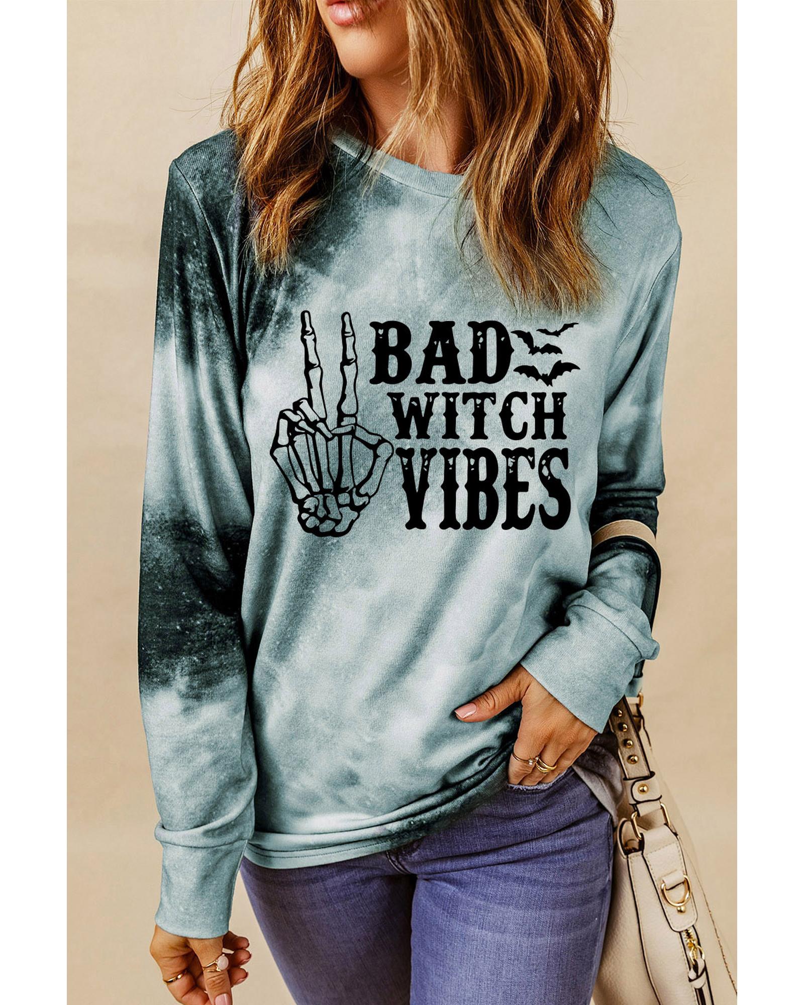 Gray Tie Dye BAD WITCH VIBES Graphic Long Sleeve Top – XL