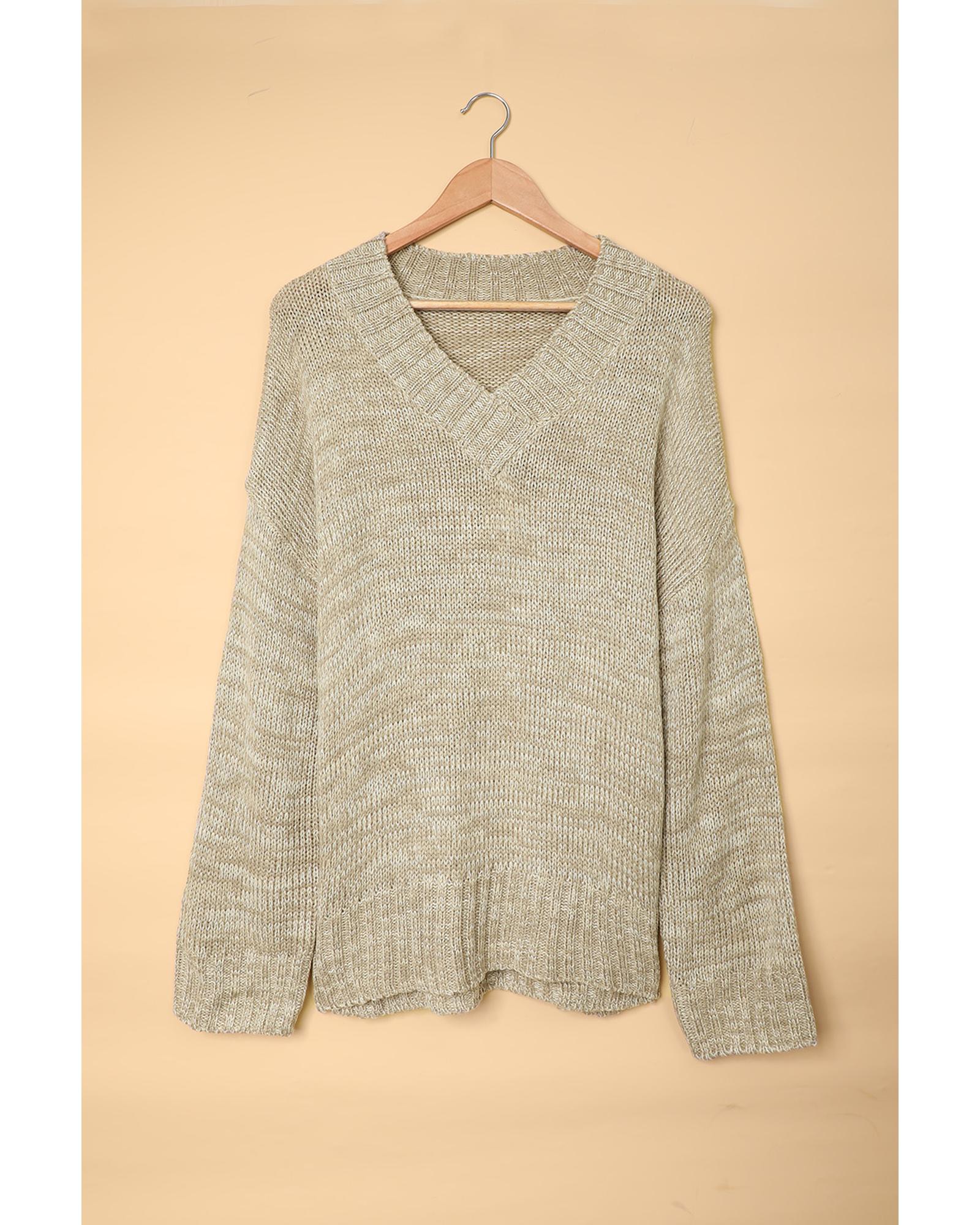 Gray V neck Drop Shoulder Knitted Sweater – XL