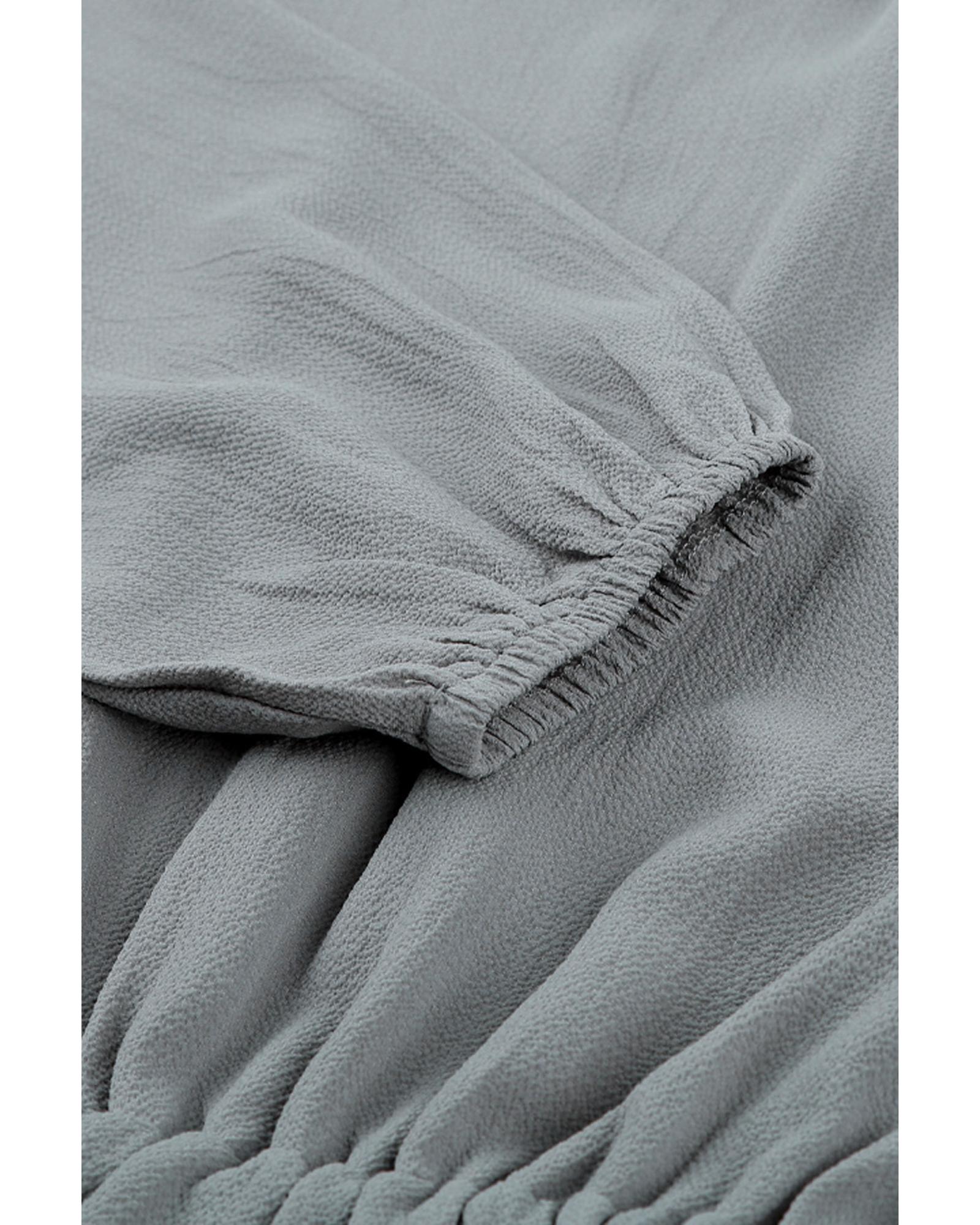 Gray V Neck Long Sleeve Ruffle Tiered Mini Dress – L
