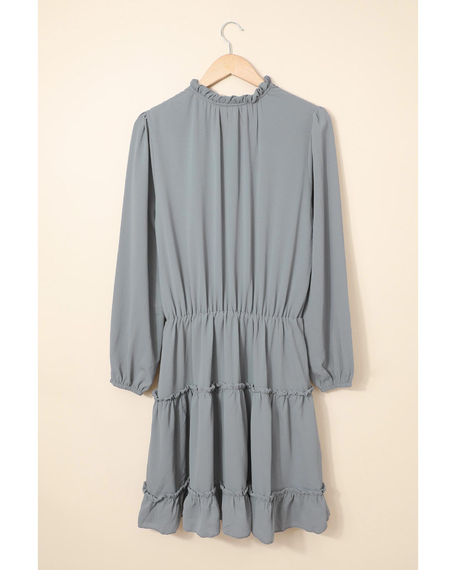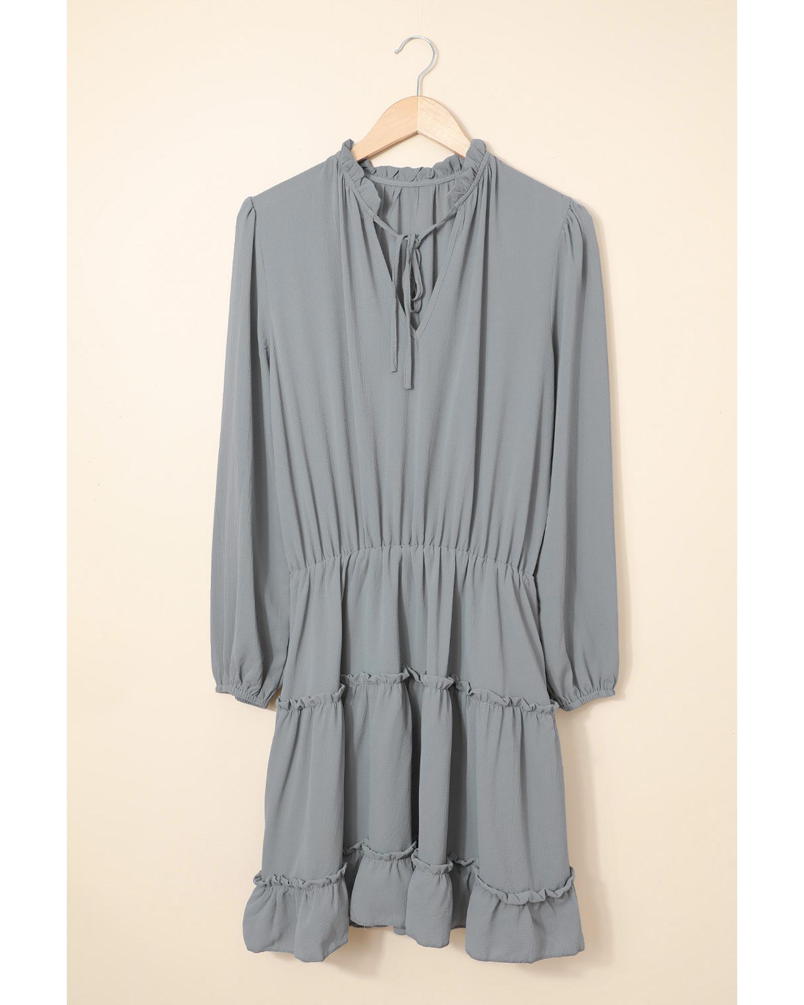 Gray V Neck Long Sleeve Ruffle Tiered Mini Dress – XL