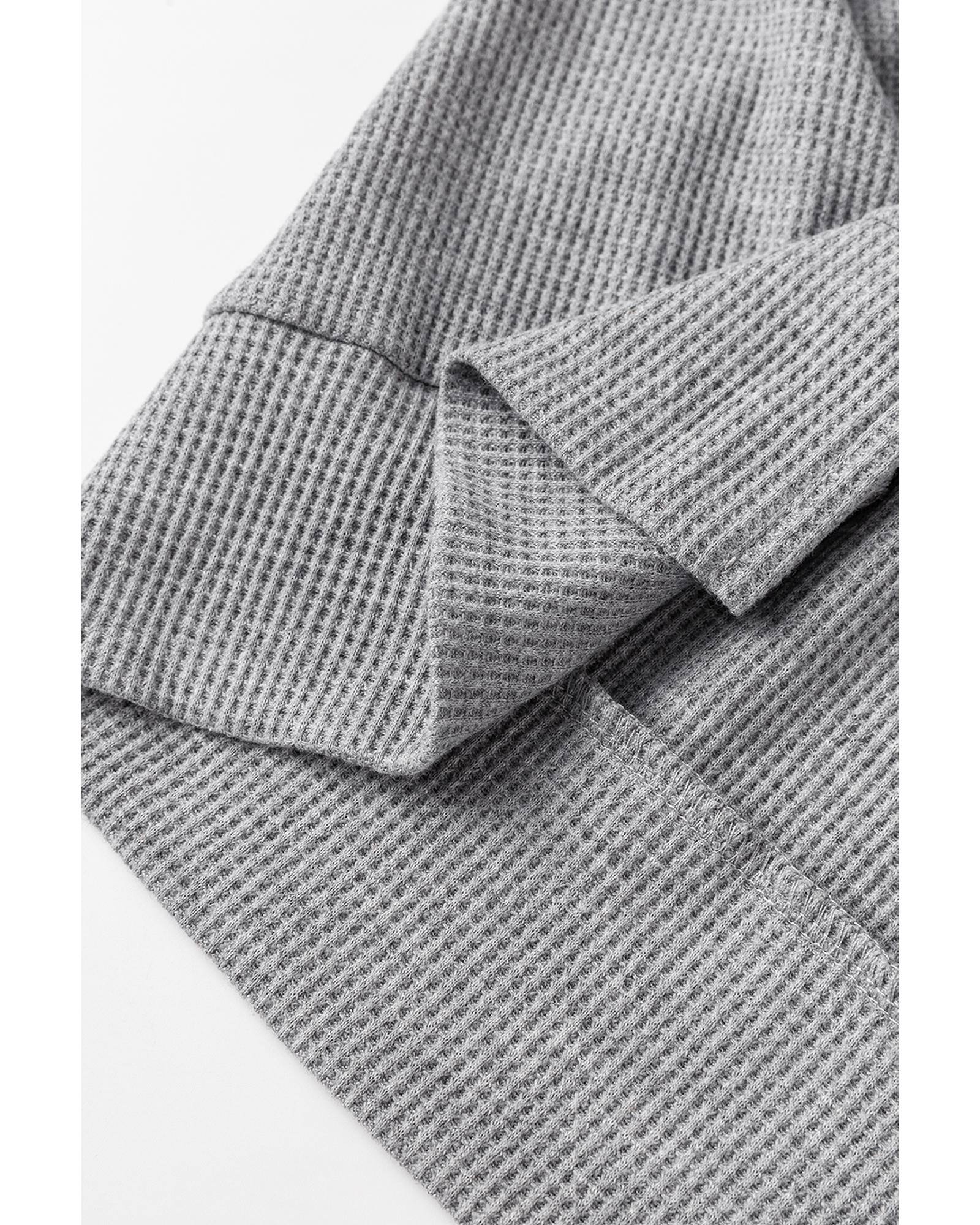 Gray Waffle Knit Fleece Lined High Low Oversized Hoodie – S