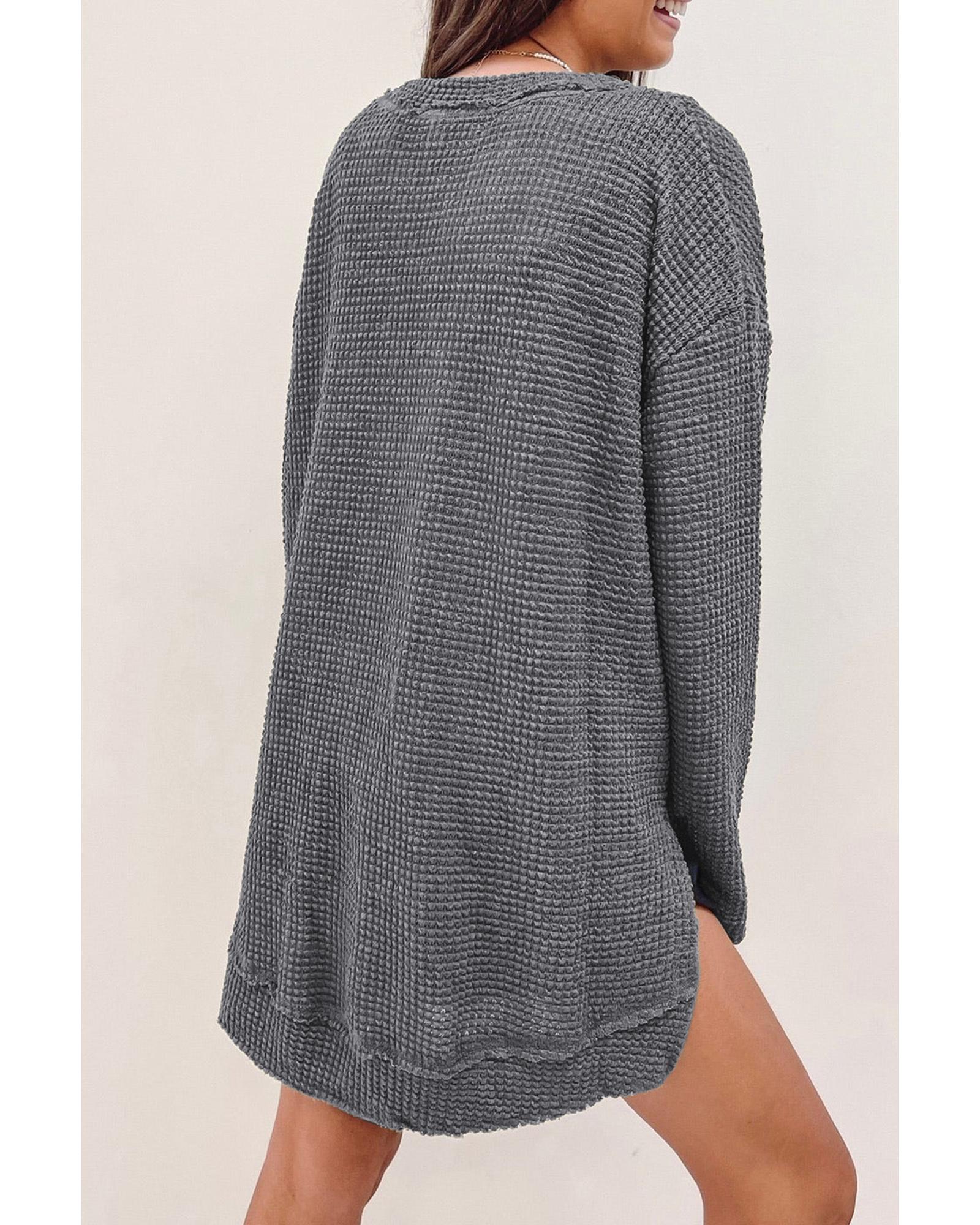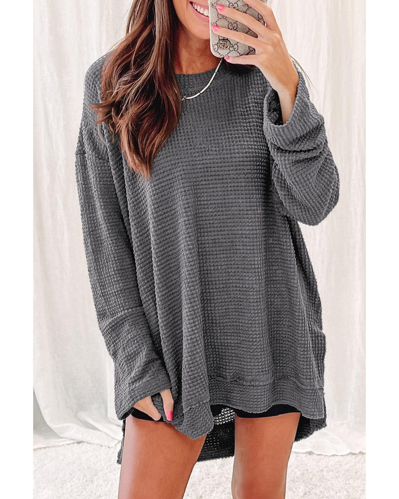 Gray Waffle Knit High Slits Oversized Top – S