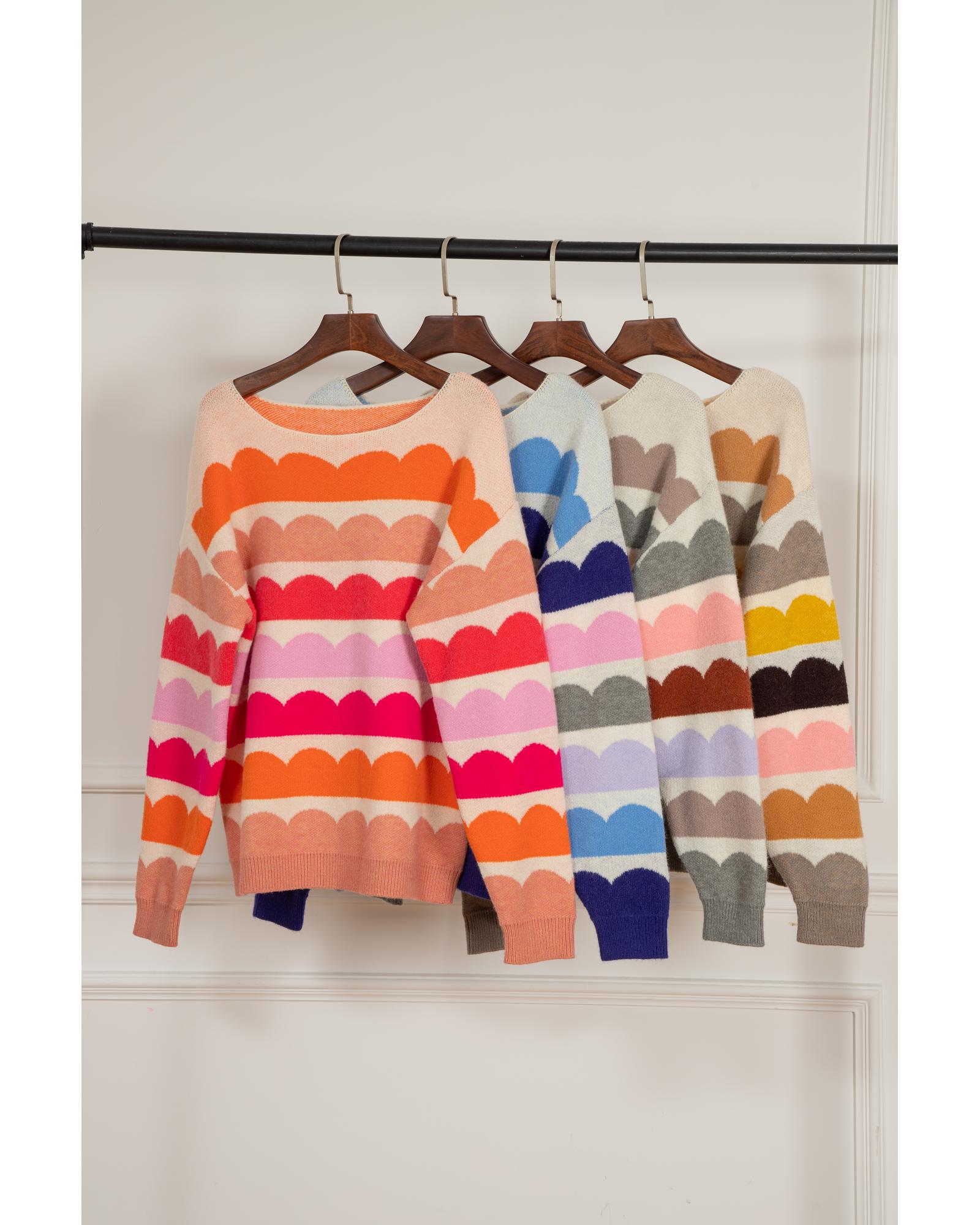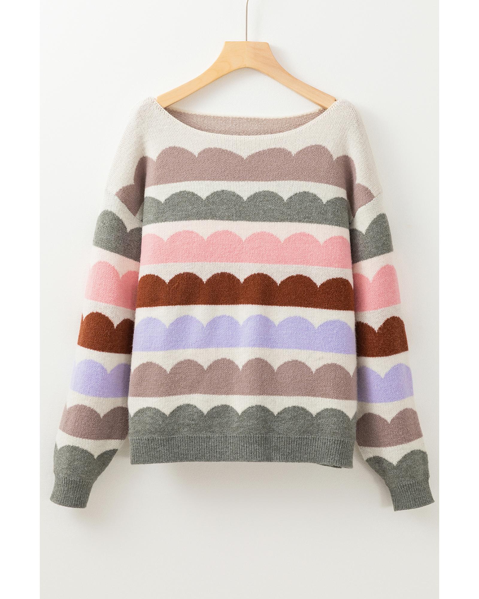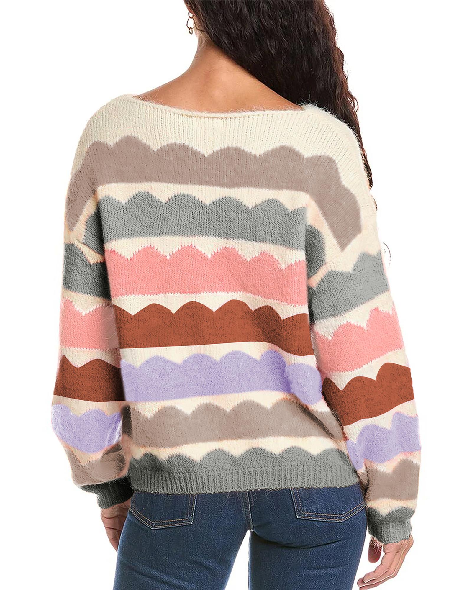 Gray Wave Striped Balloon Sleeve Drop Shoulder Sweater – XL