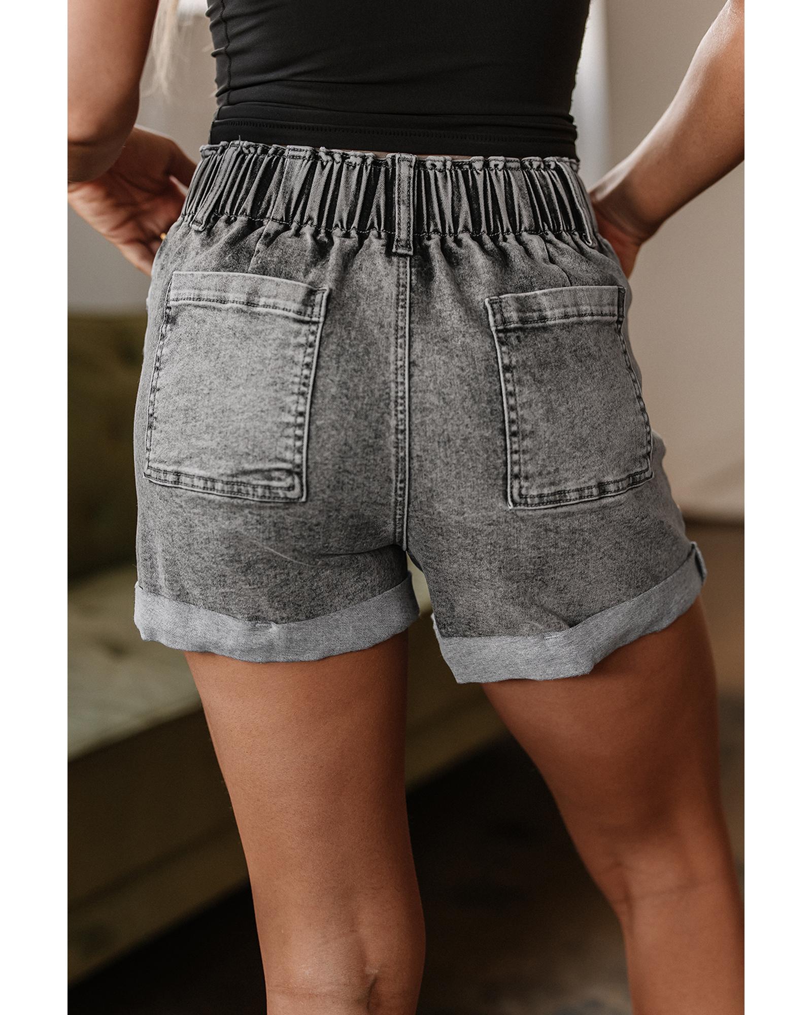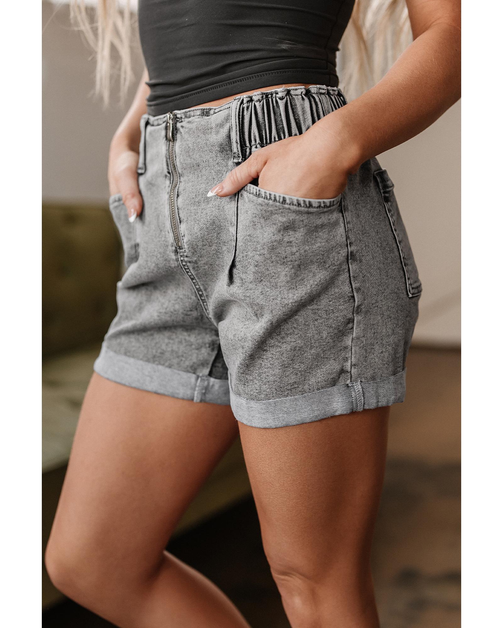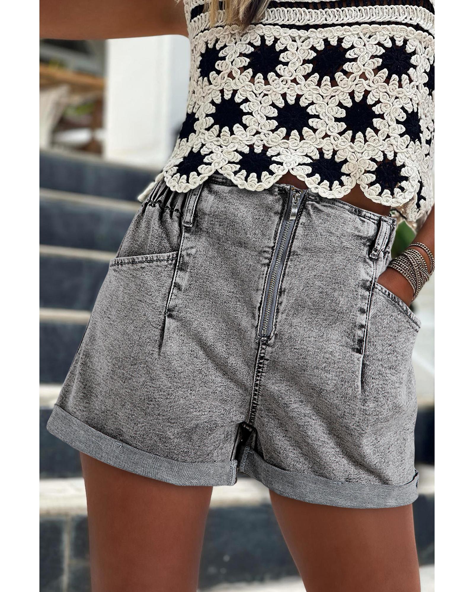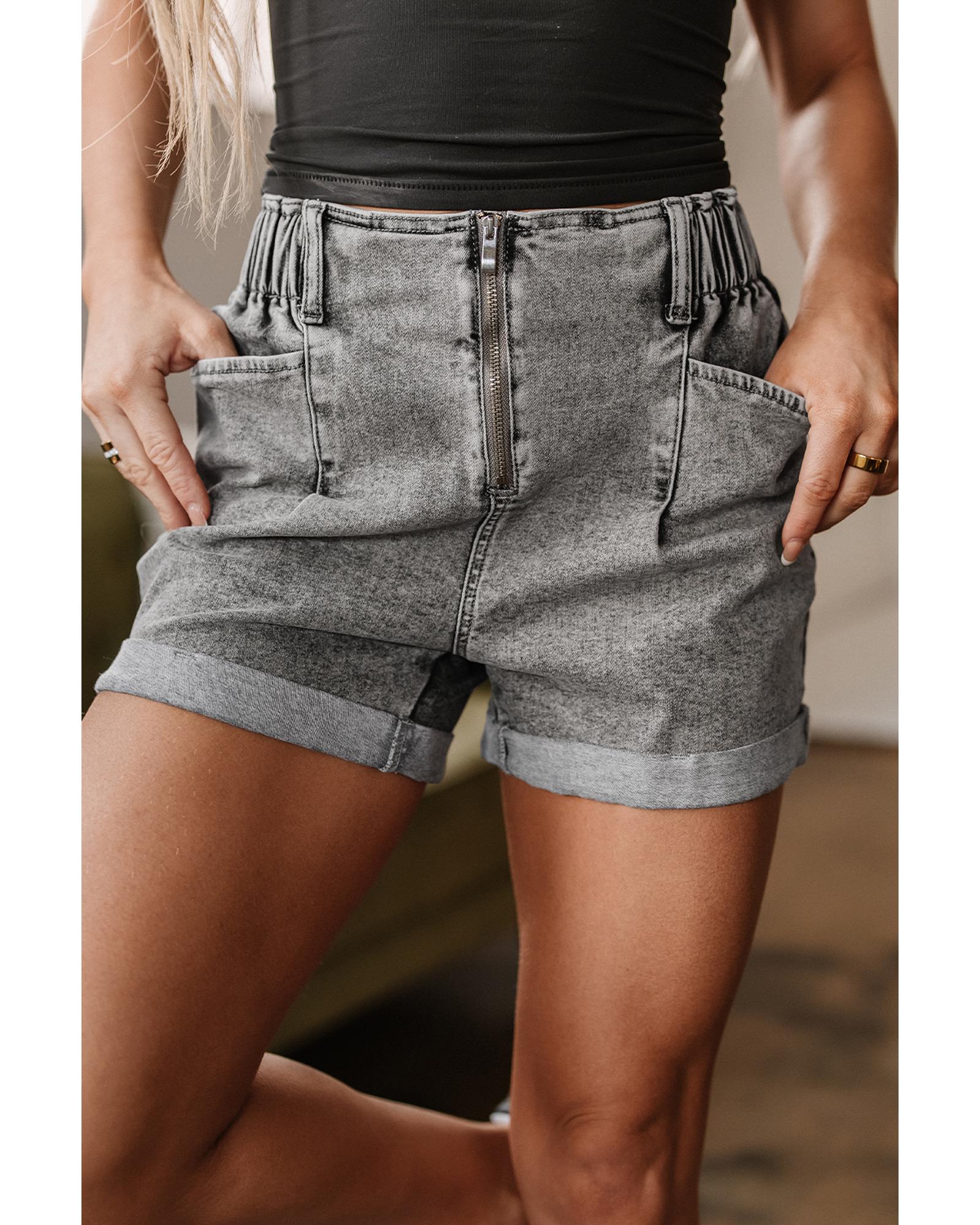 - Gray Zipped Light Wash Cuffed Edge Denim Shorts