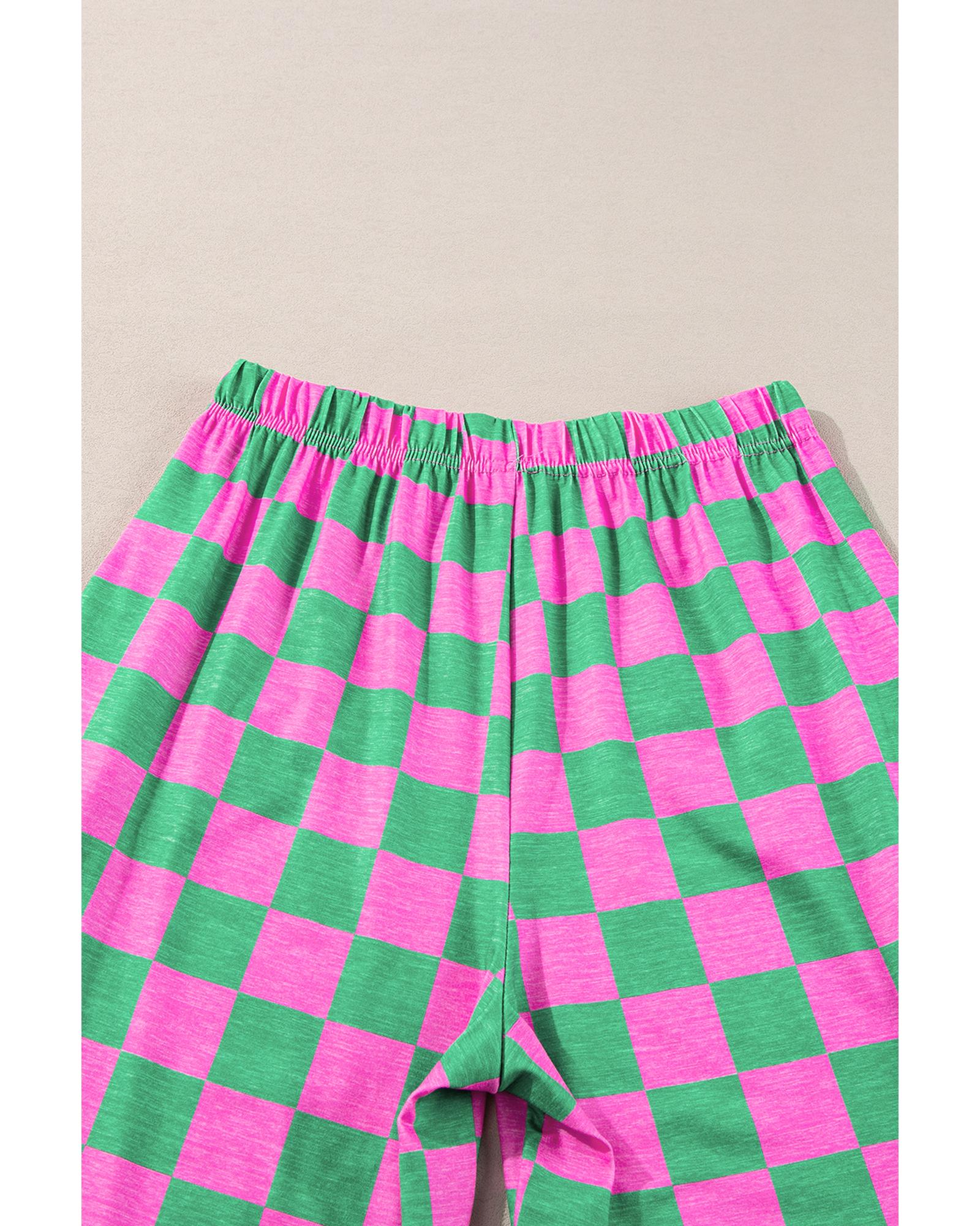 Green 2-Tone Checked Print High Waist Wide Leg Pants – L