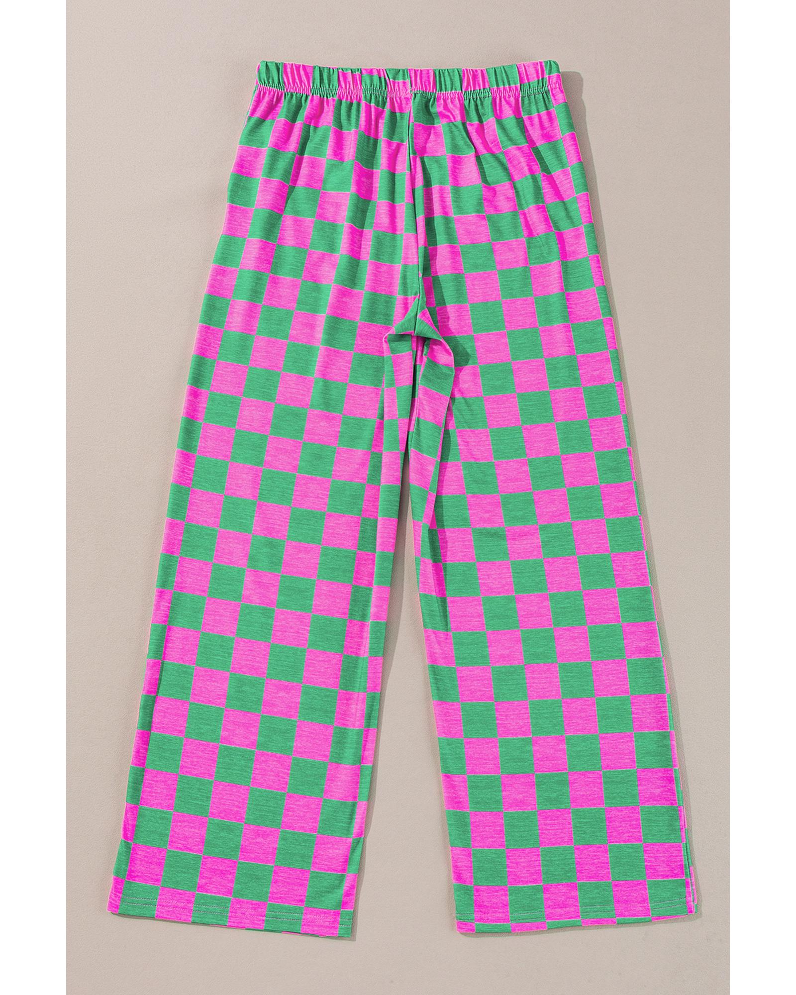 Green 2-Tone Checked Print High Waist Wide Leg Pants – XL