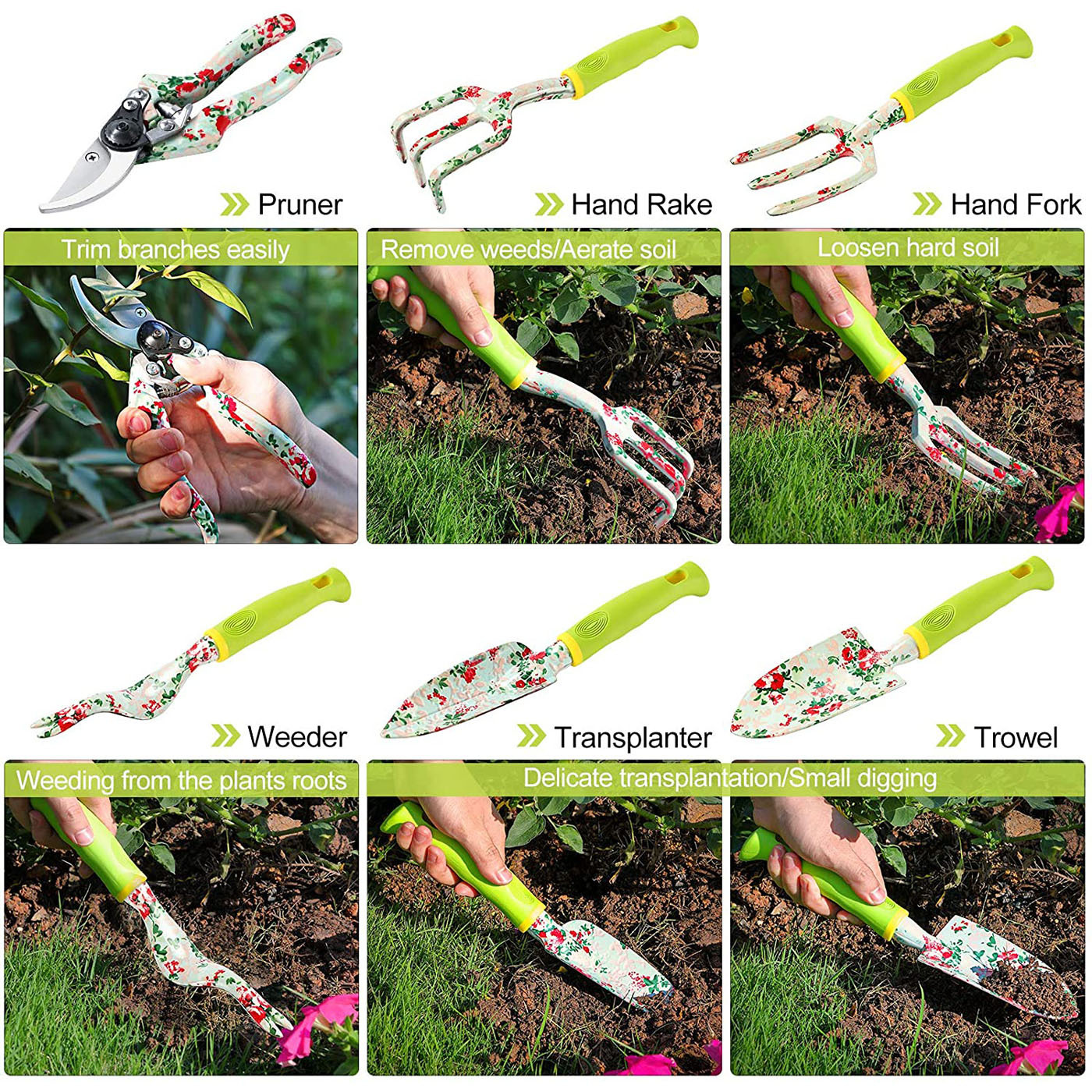 - Includes 9 essential tools for various gardening tasks: pruning, digging, weeding, and more.