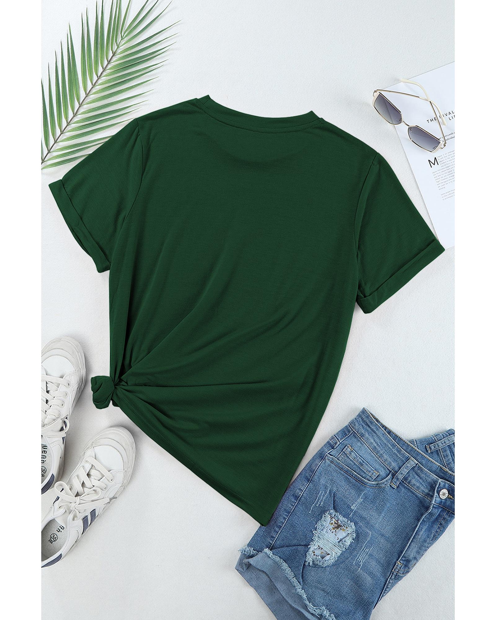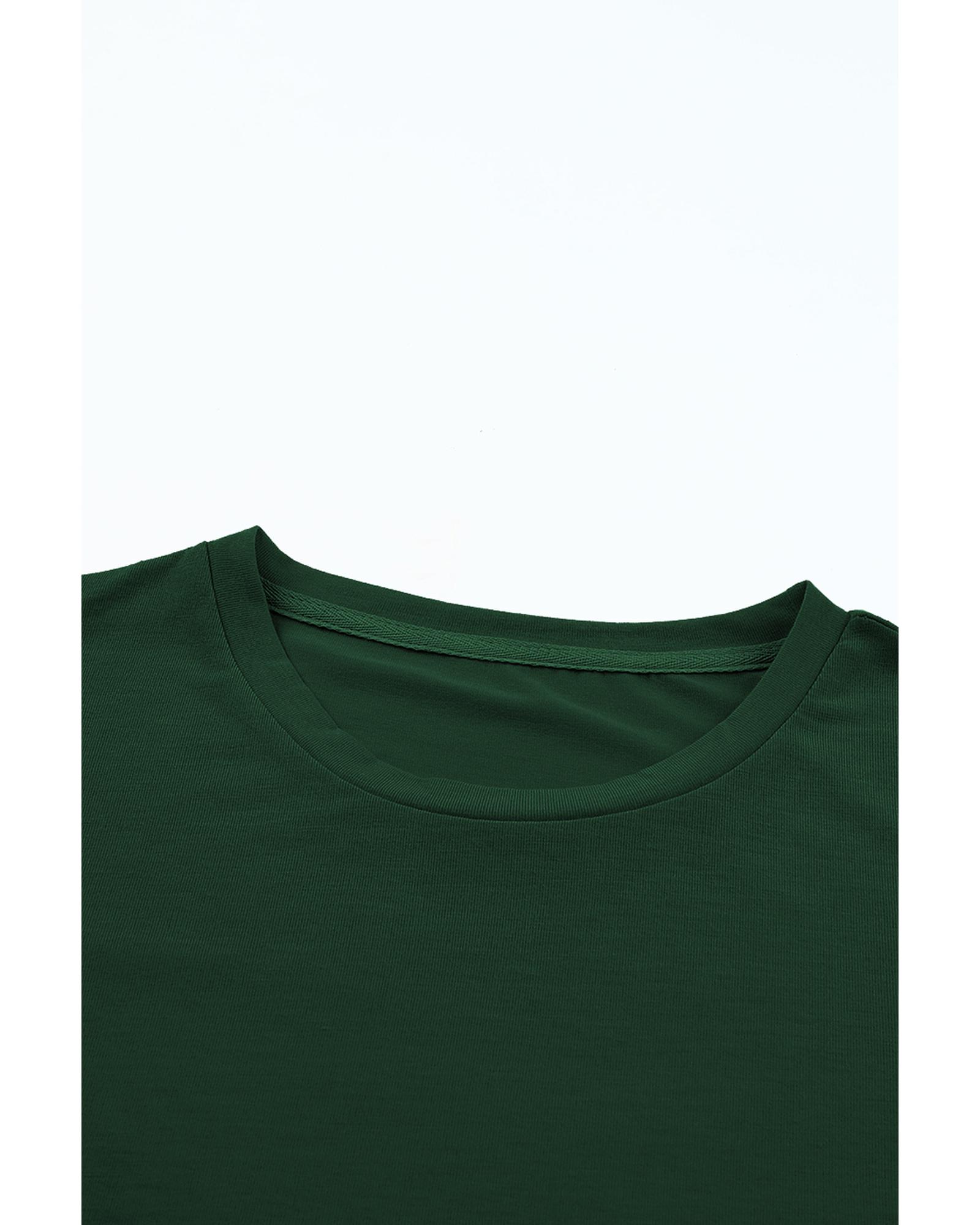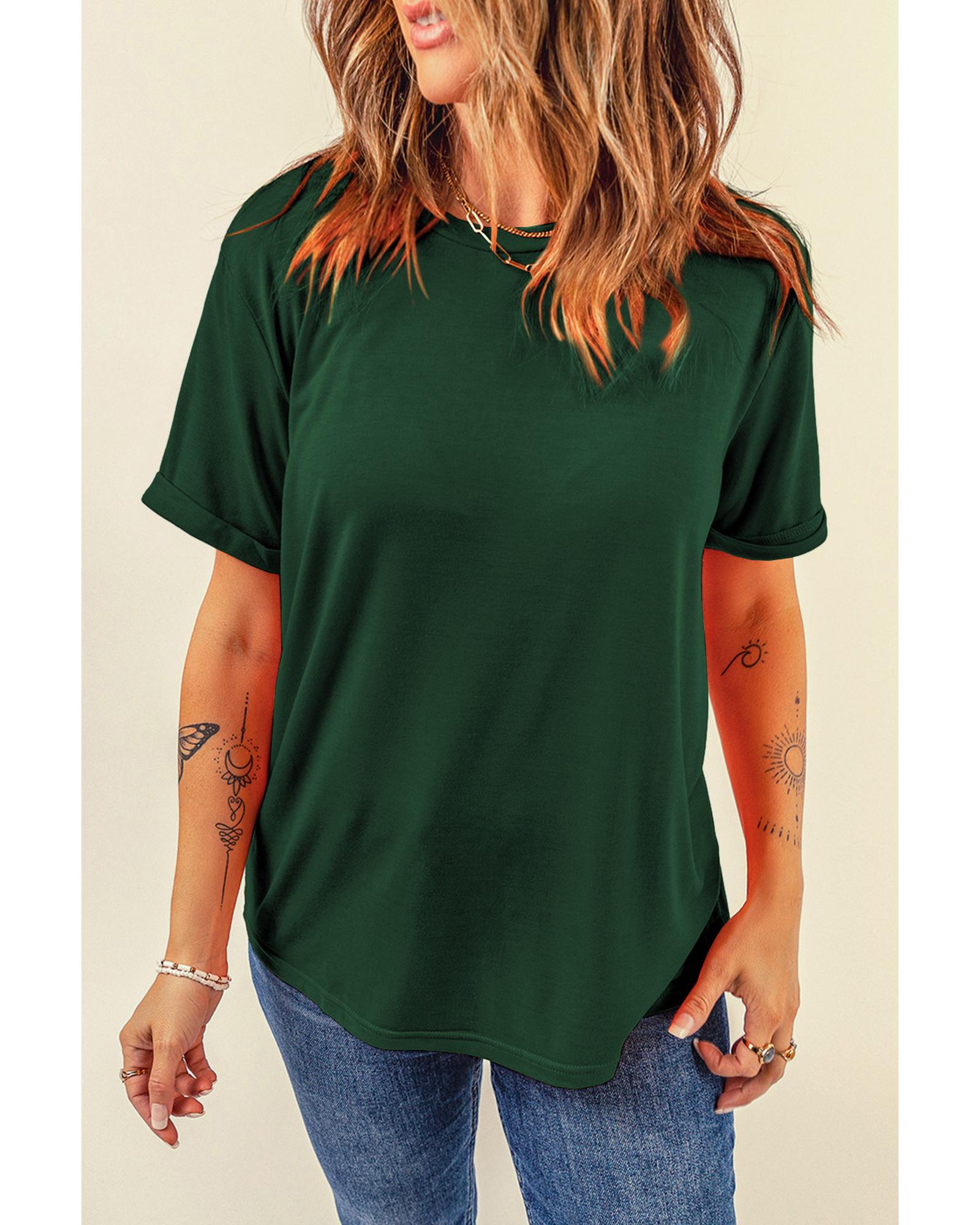 Green Casual Plain Crew Neck Tee – S