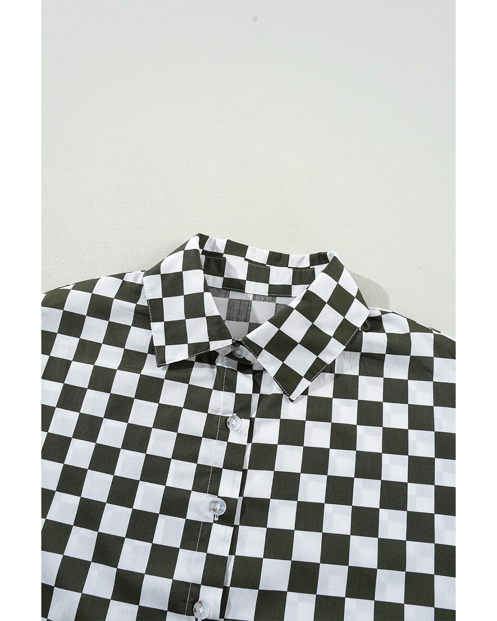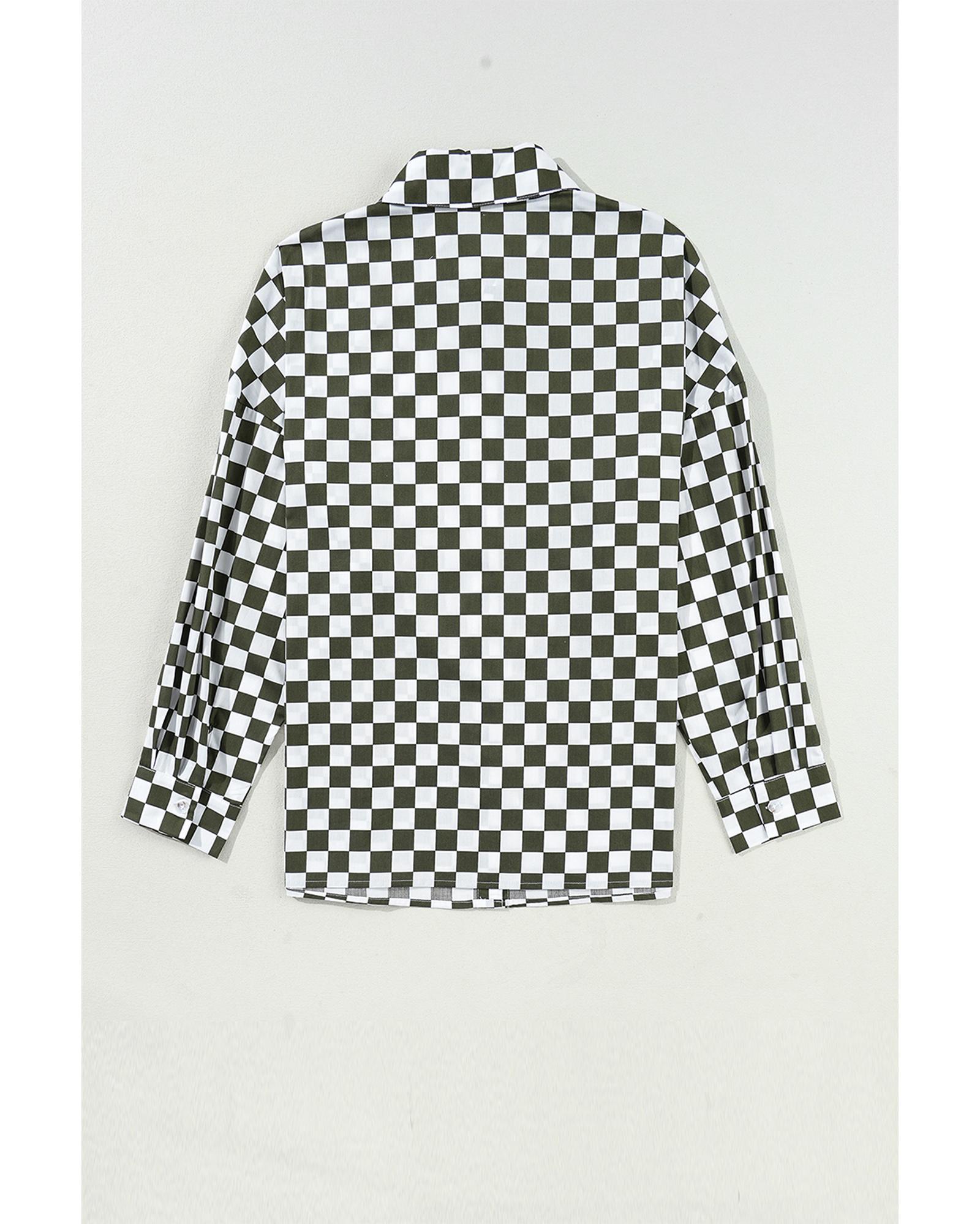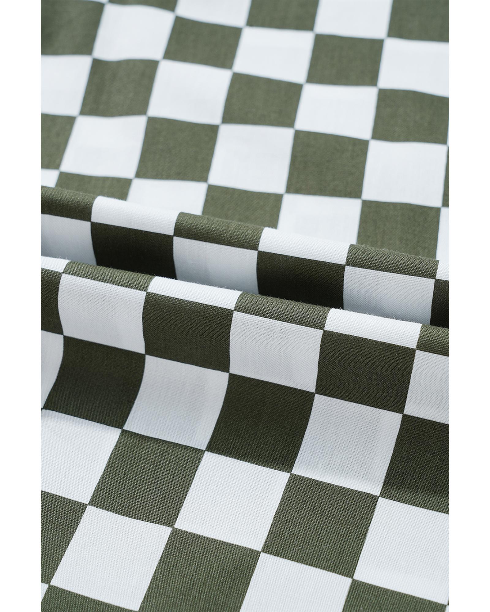 Green Checkerboard Printed Drop Shoulder Loose Casual Shirt – L