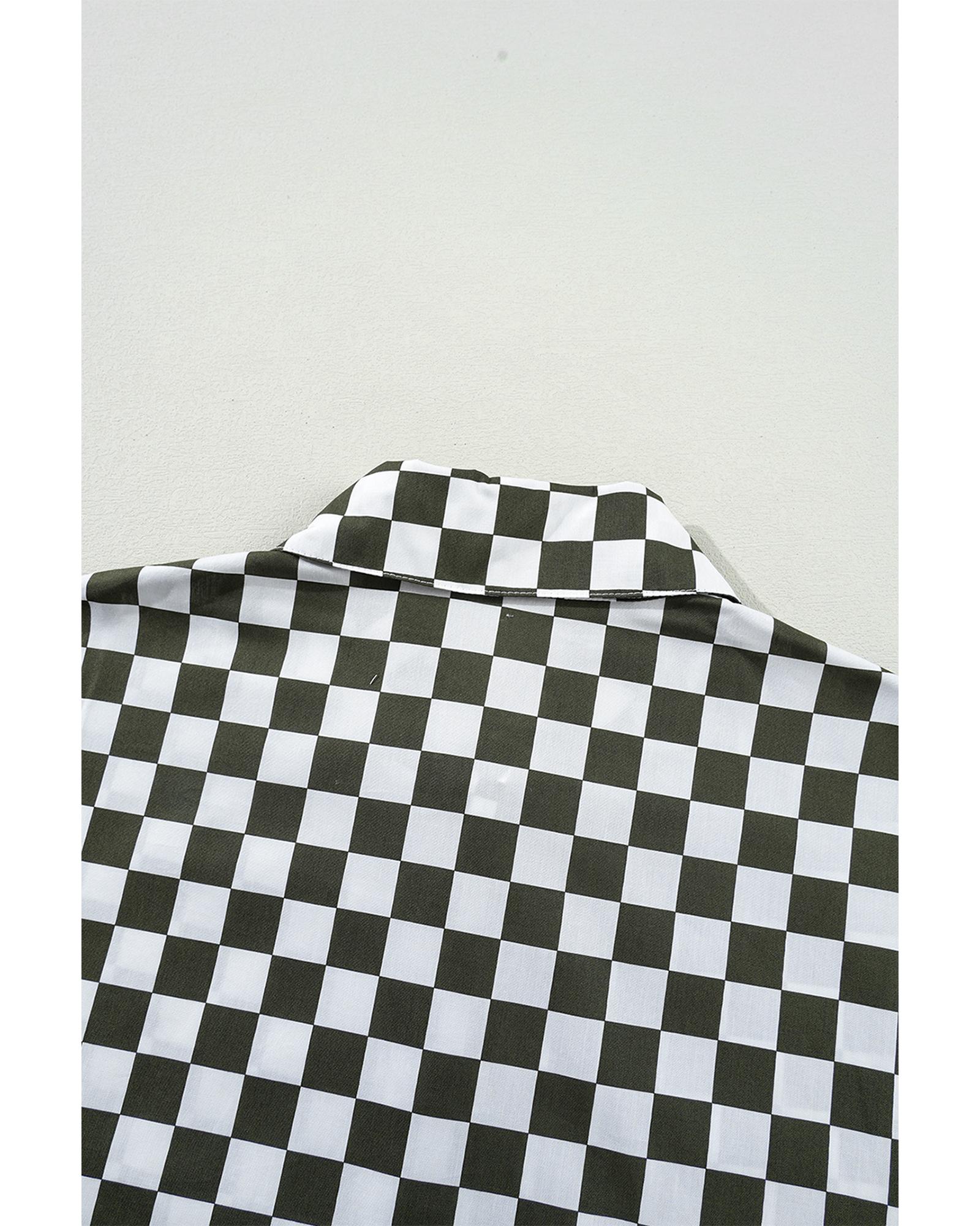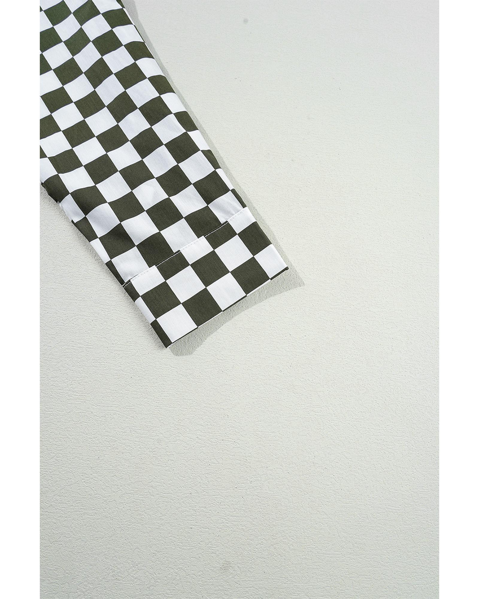 Green Checkerboard Printed Drop Shoulder Loose Casual Shirt – M
