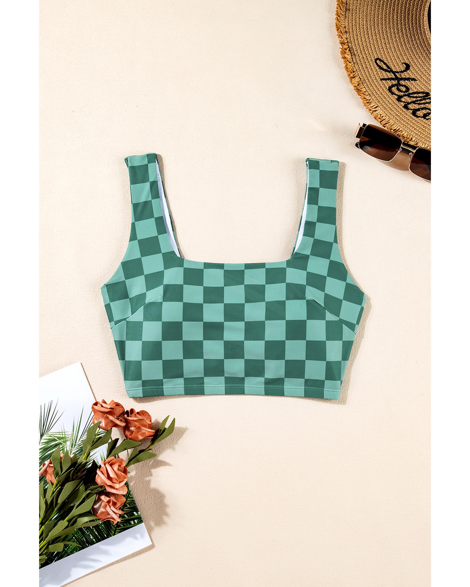 Green Checkered Print Square Neck Cropped Swim Top – 2XL