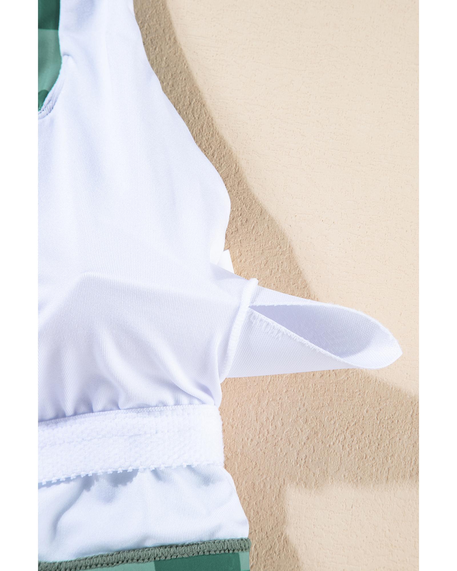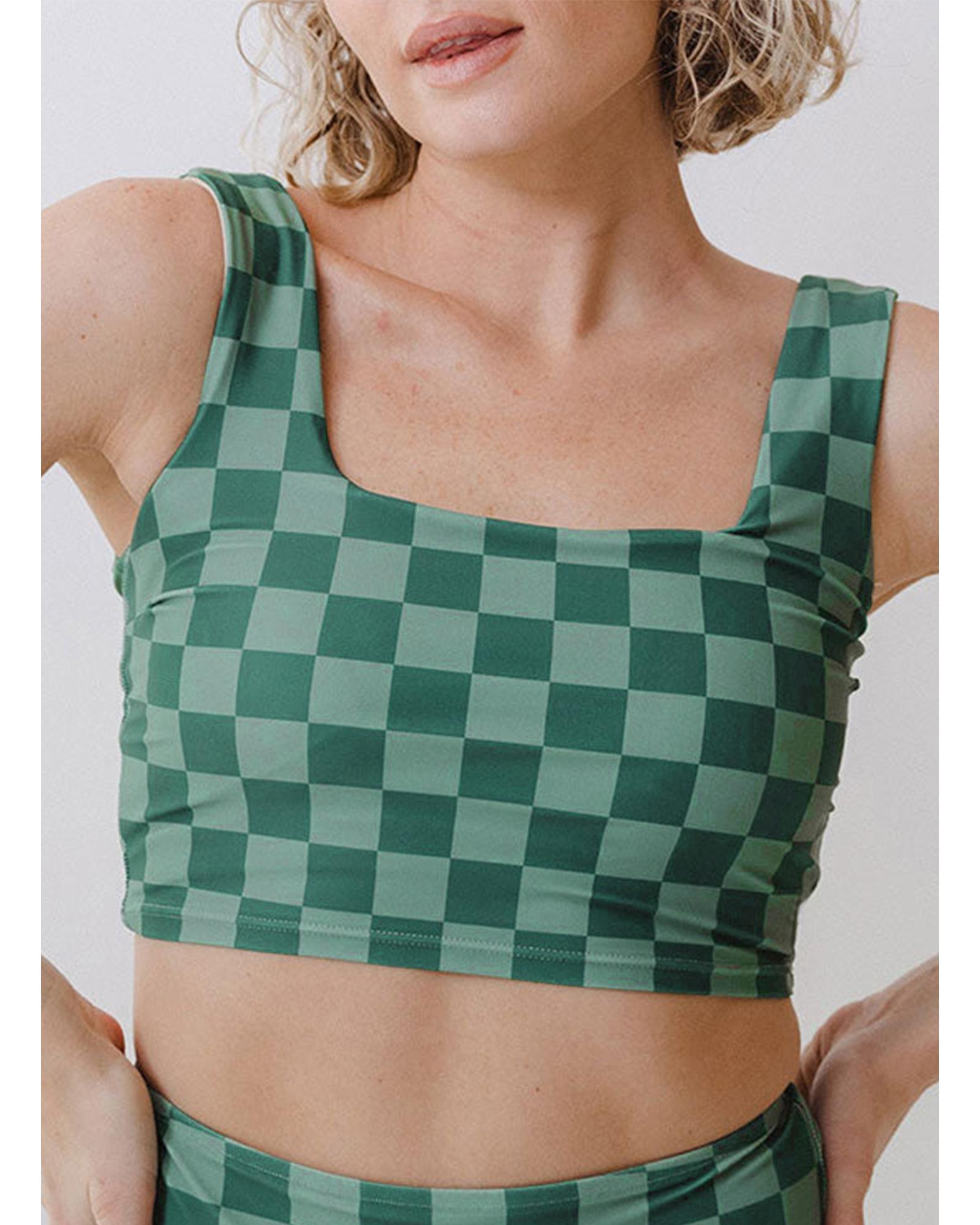 Green Checkered Print Square Neck Cropped Swim Top – 3XL