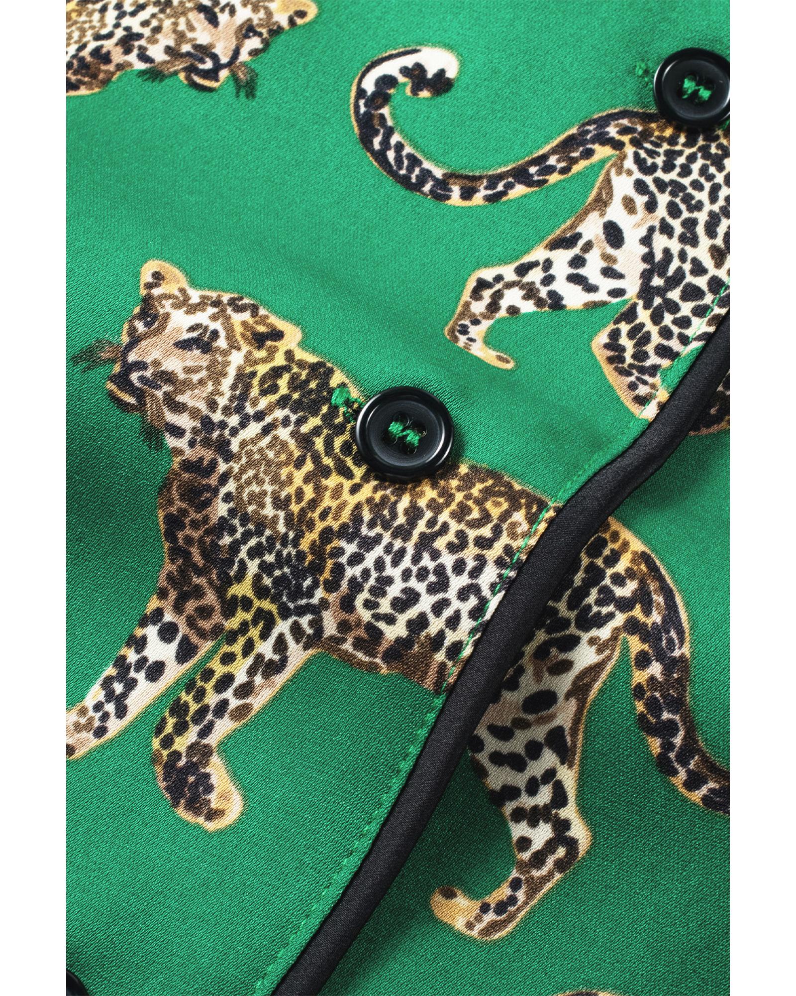 Green Cheetah Print Short Sleeve Shirt and Pants Pajama Set – S