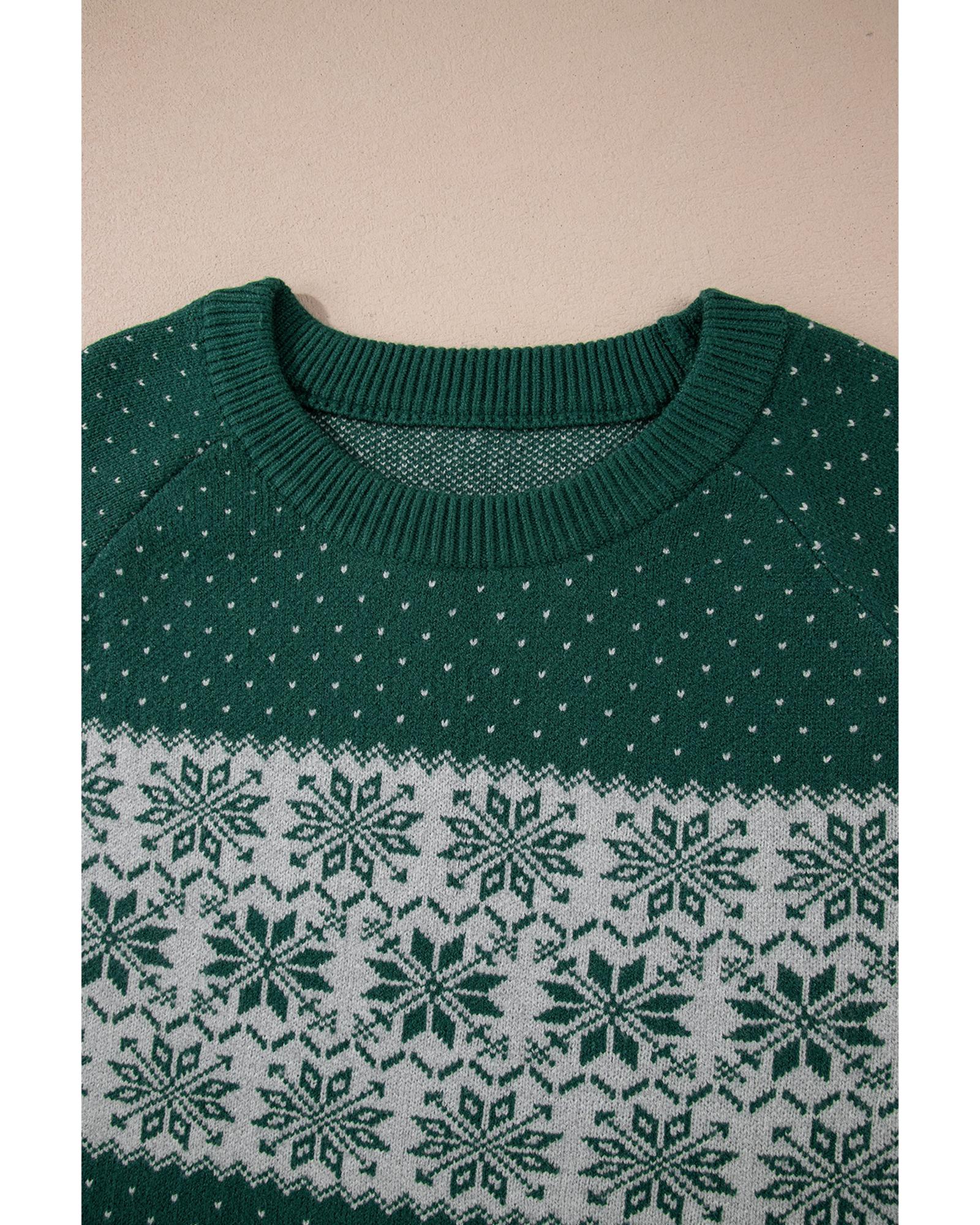 Green Christmas Snowflake Pattern Drop Shoulder Plus Size Sweater – 4X