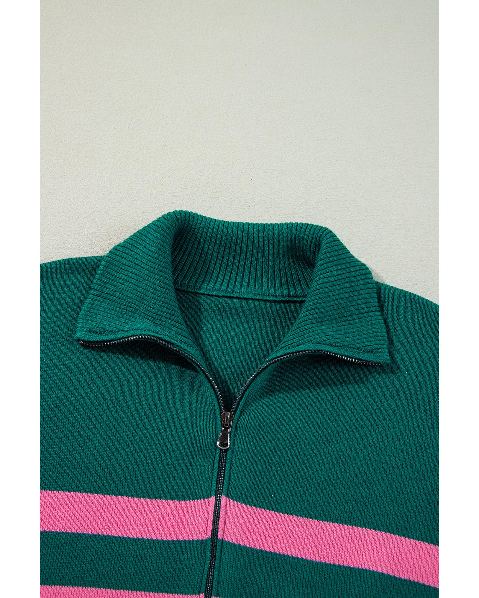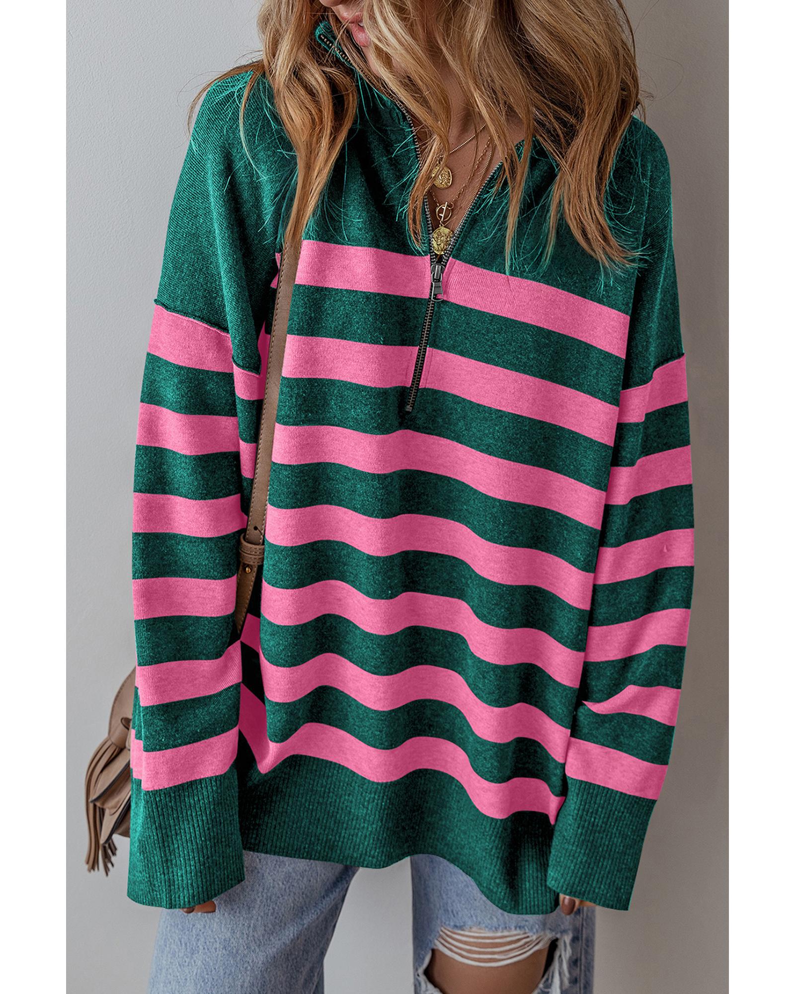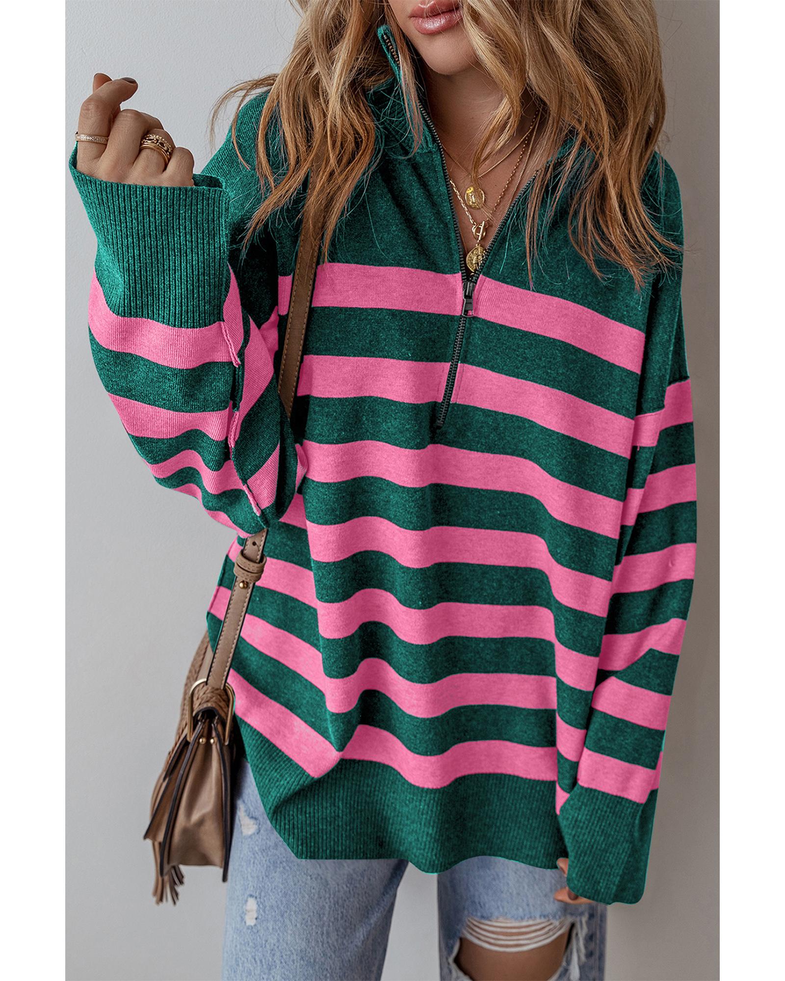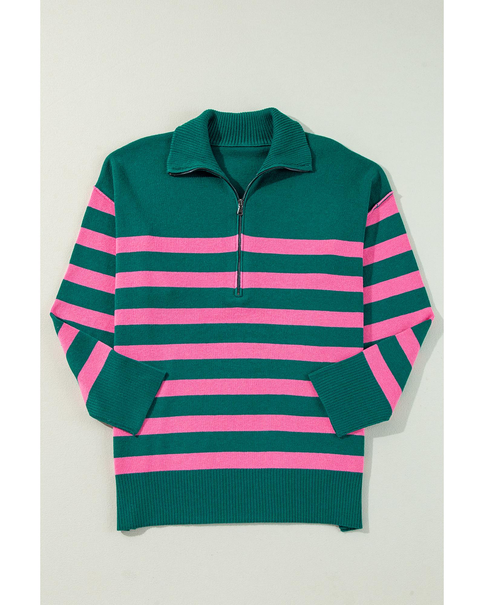 Green Collared Quarter Zipper Oversized Sweater – 3XL