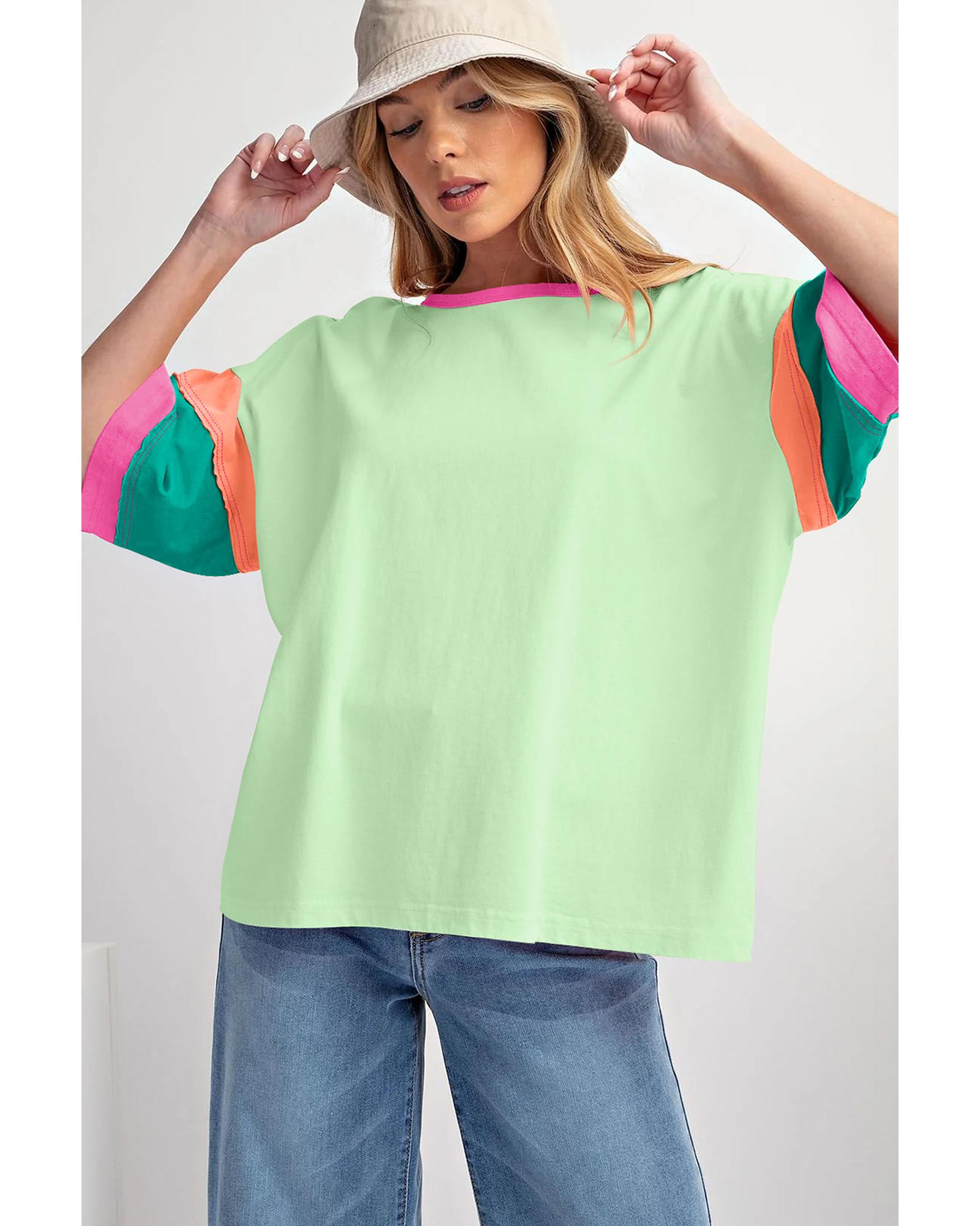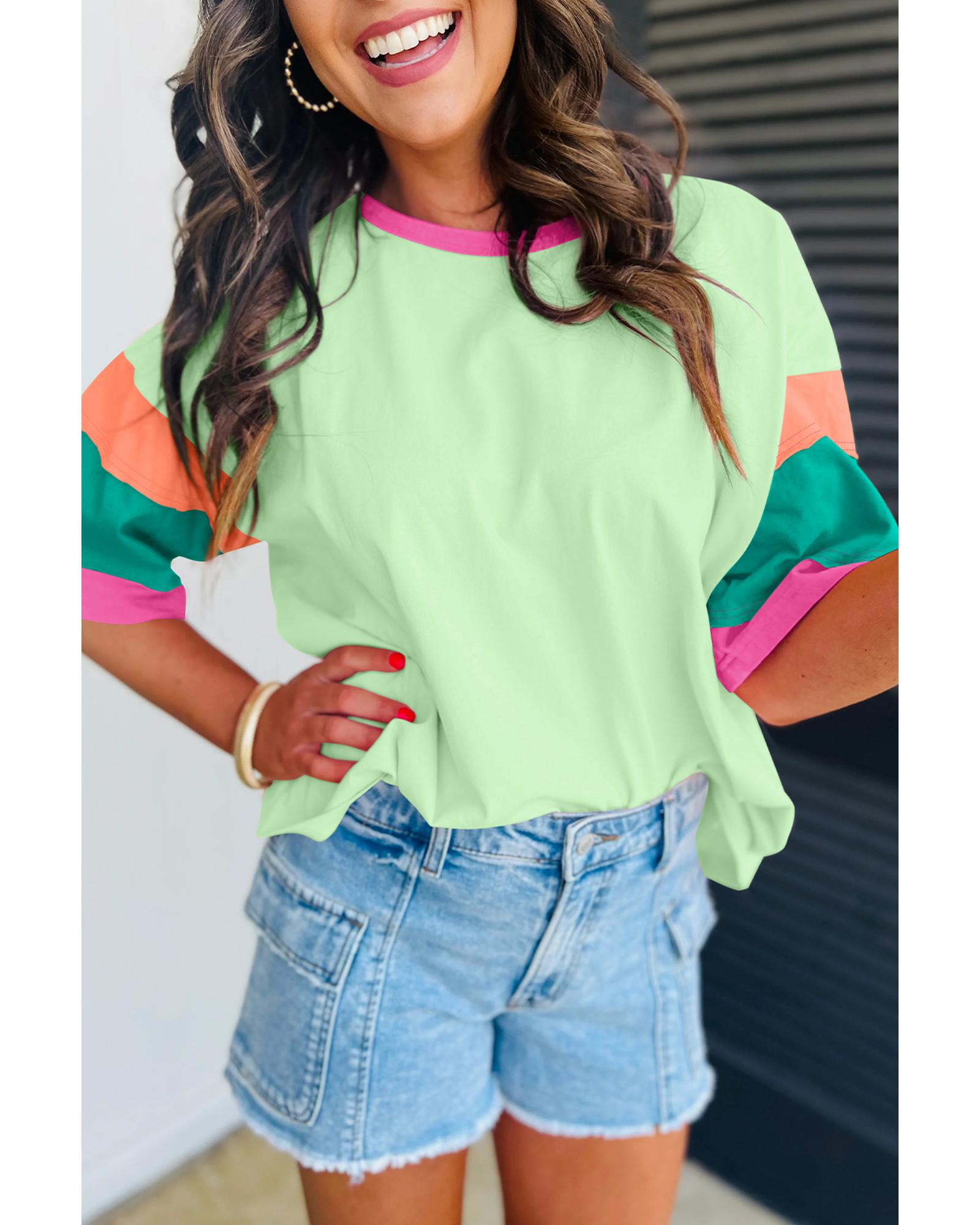 Green Color Block Stitching Sleeve Round Neck Oversize Top – XL