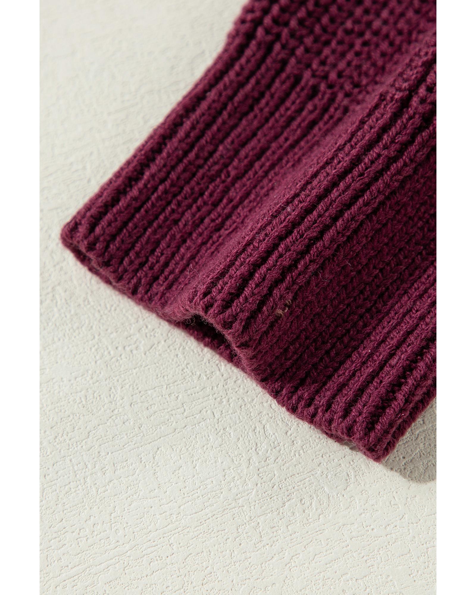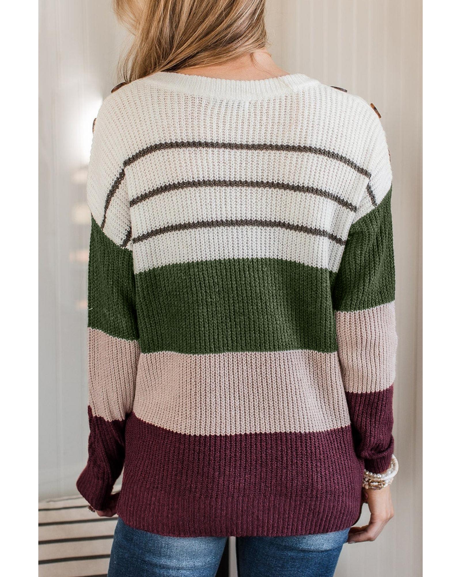Green Color Block Striped Buttoned Shoulder Split Sweater – M