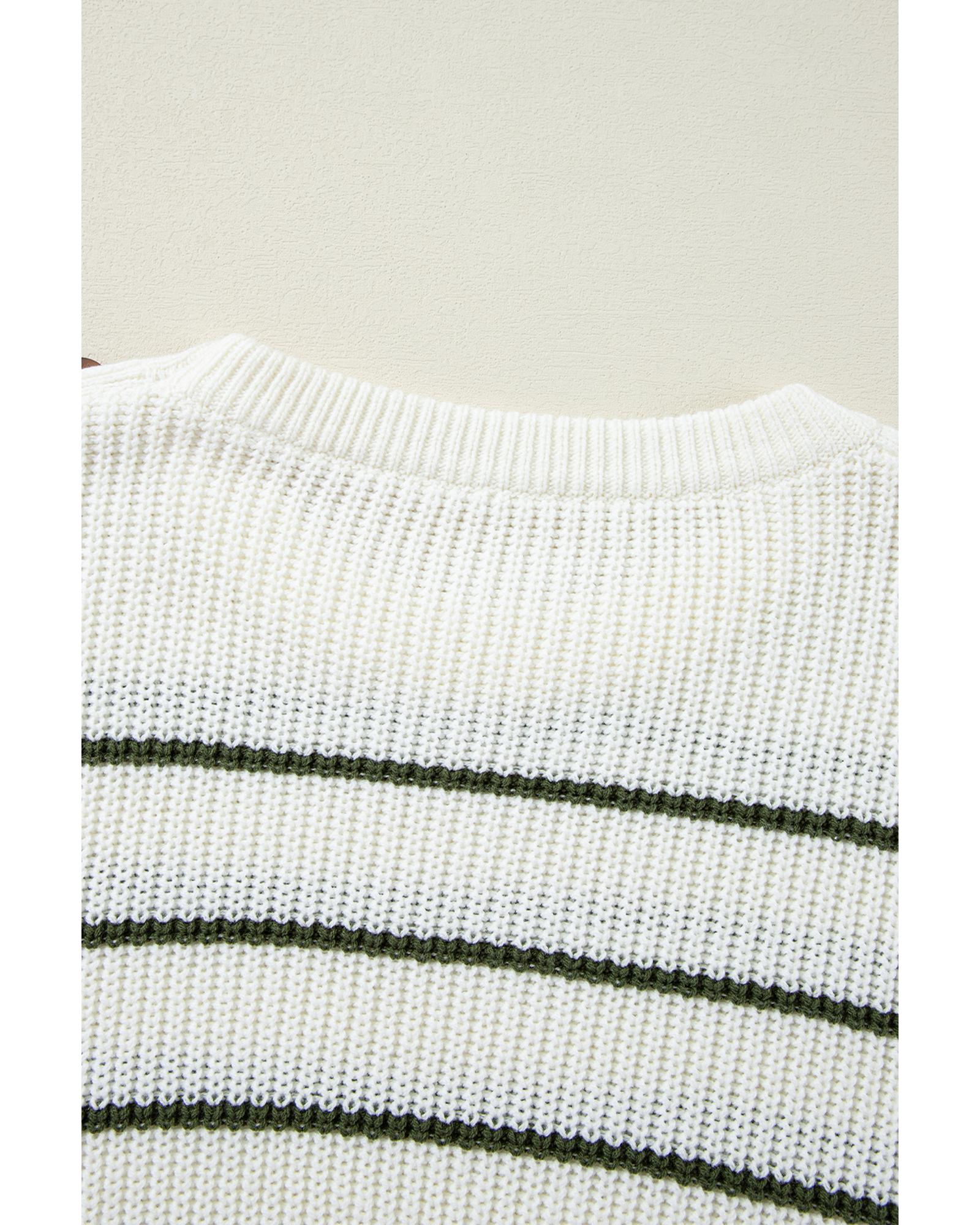 Green Color Block Striped Buttoned Shoulder Split Sweater – XL