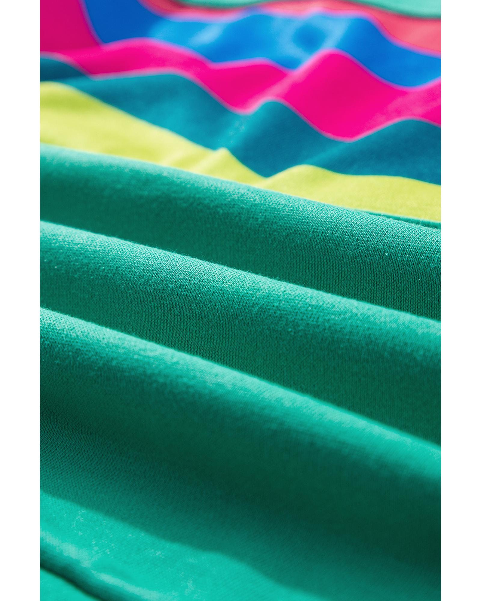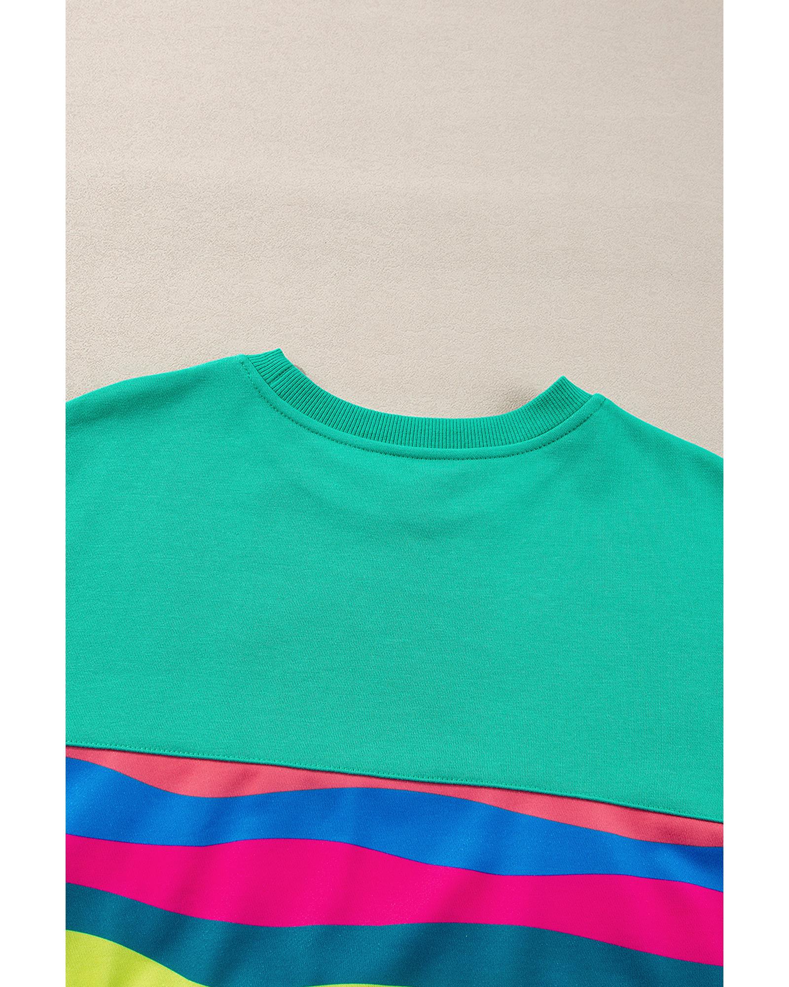 Green Colorful Striped Accent Long Sleeve T Shirt – L