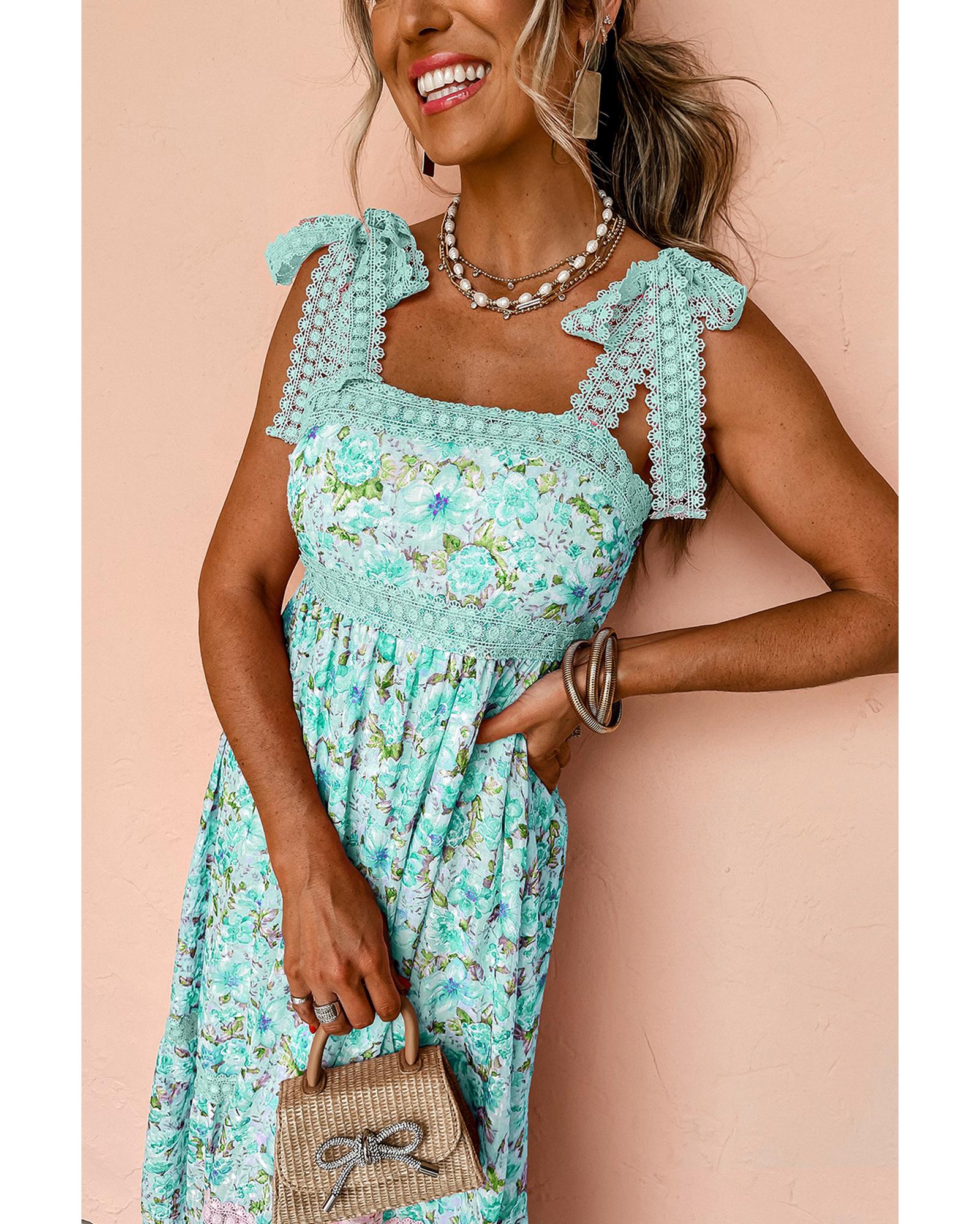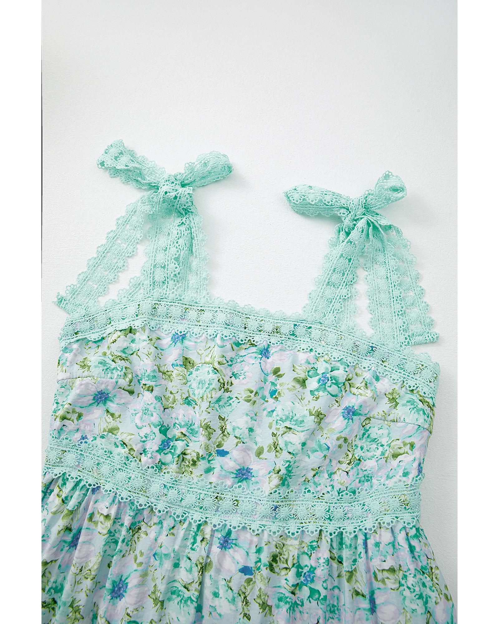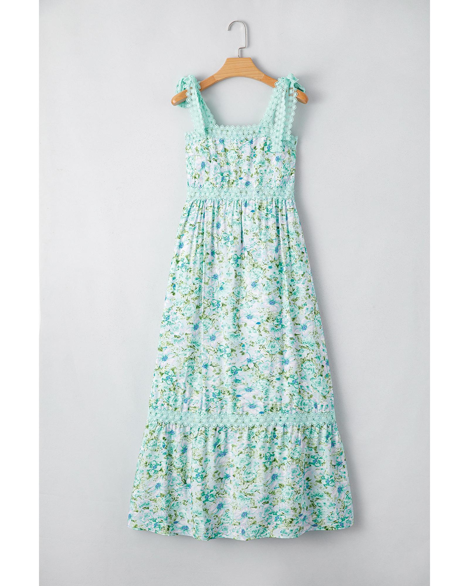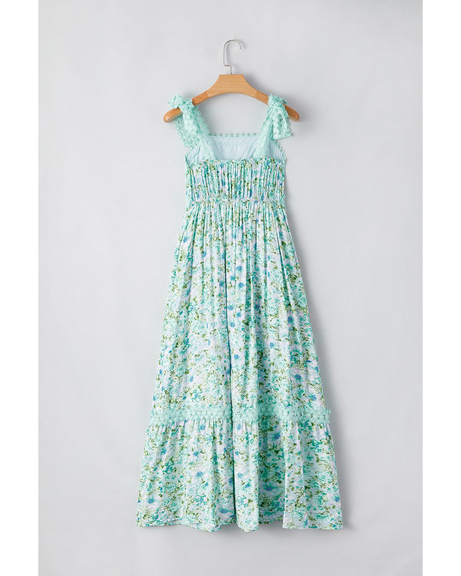 Green Floral Lace Tied Strap Empire Waist Maxi Dress – M