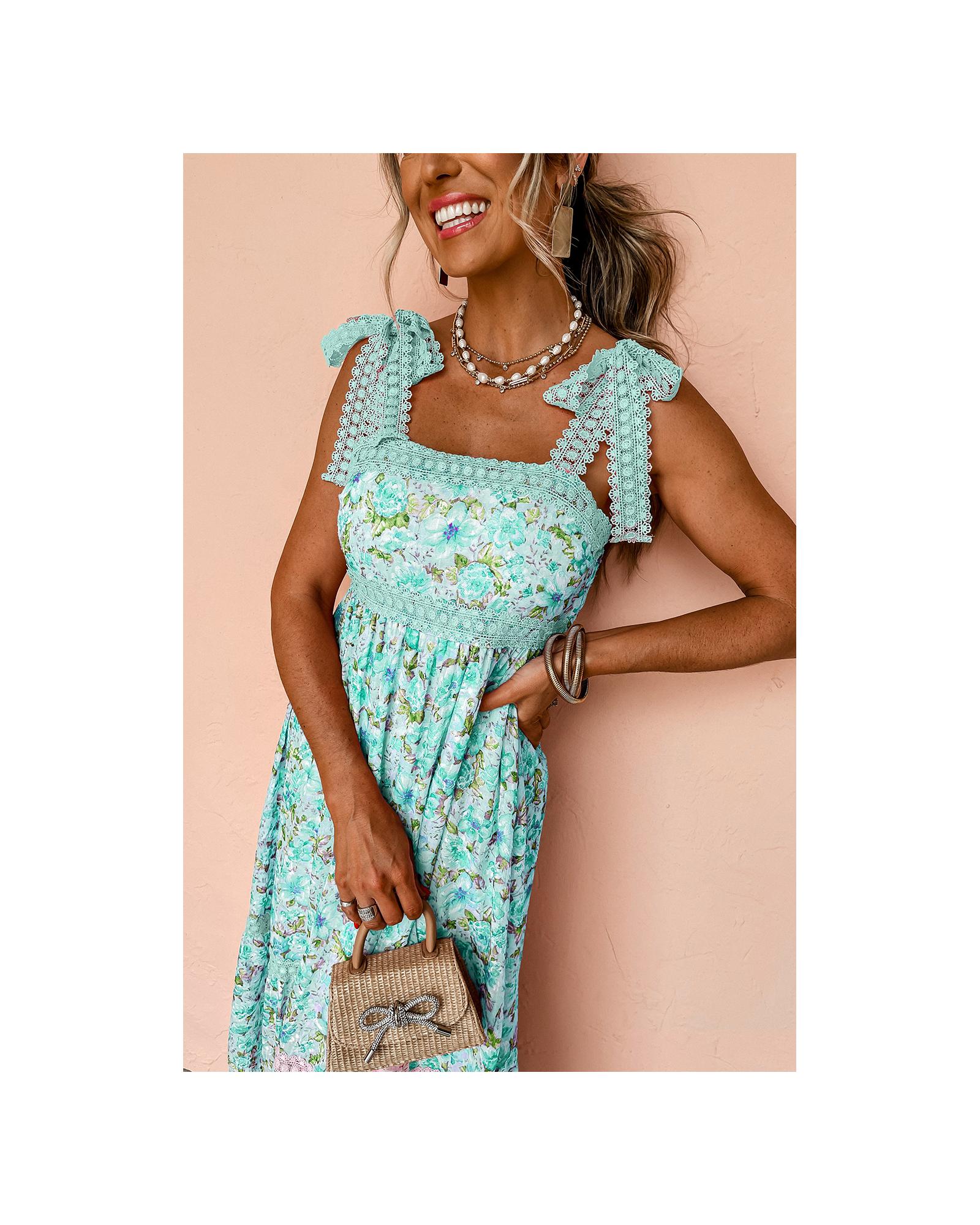 Green Floral Lace Tied Strap Empire Waist Maxi Dress – XL