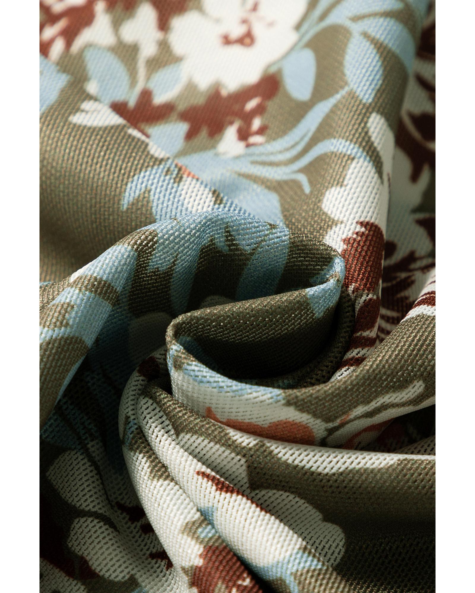 Green Floral Print Mesh Fitted Long Sleeve Top – M