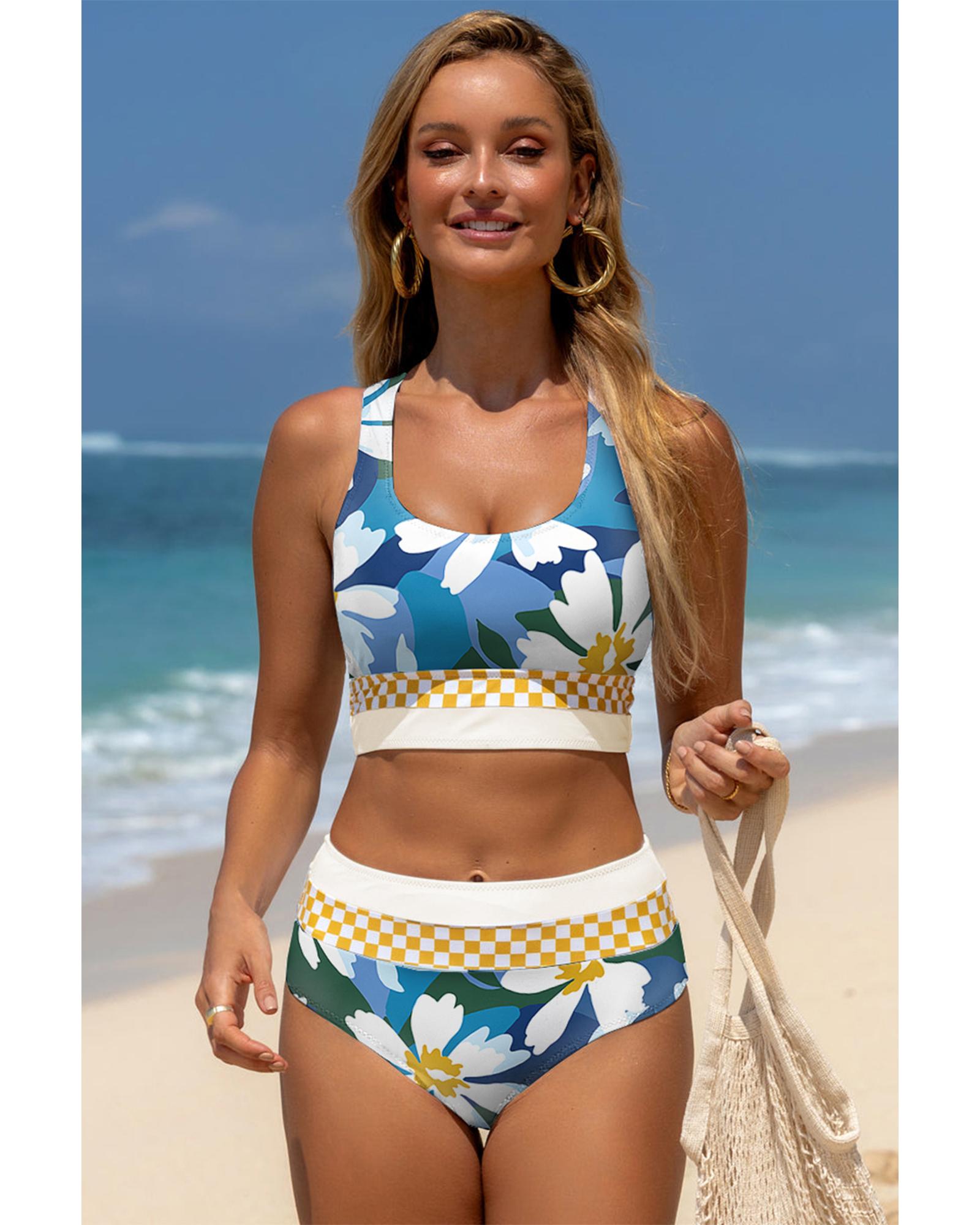 Green Floral Print Racerback Cutout High Waist 2pcs Bikini – M