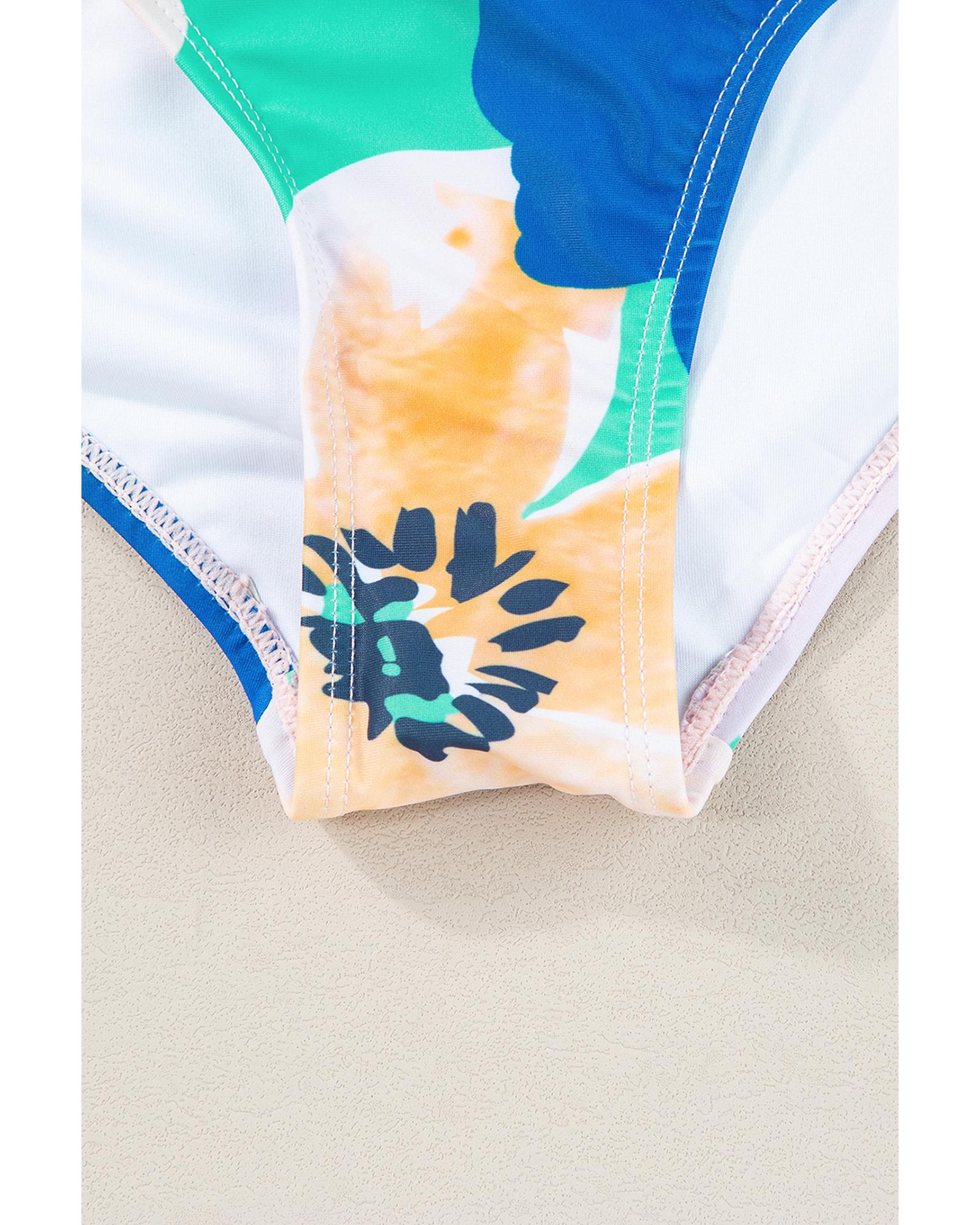 Green Floral Print Ruched Cut Out One Shoulder Monokini – M